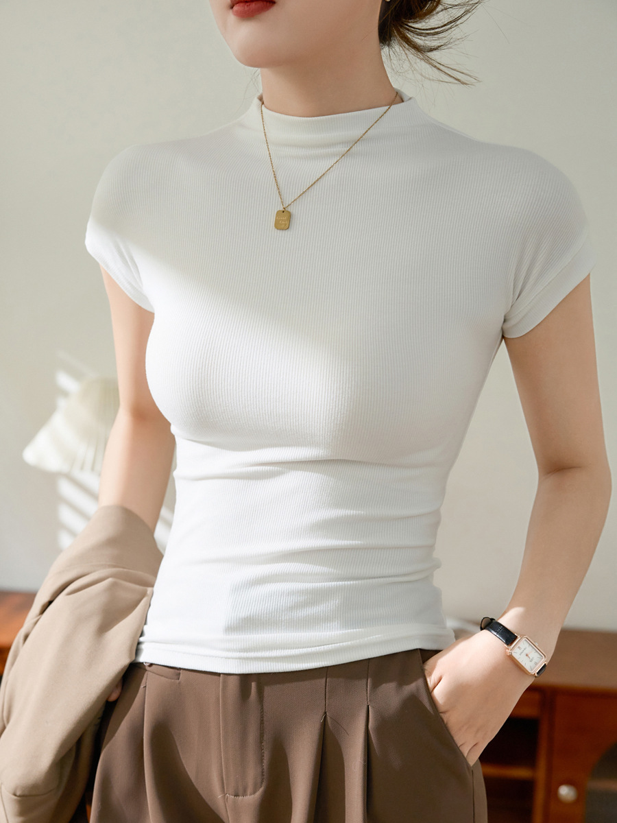 【质做高品】半高领紧身T恤女夏插肩短袖新款显瘦立领打底衫