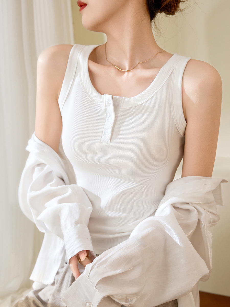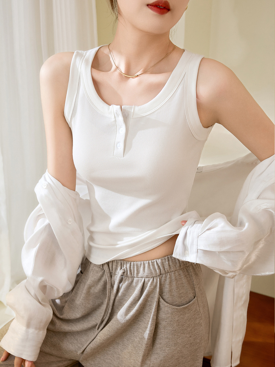 【质做高品&无惧货比】纯棉背心女内搭纽扣吊带遮副乳防走光外穿