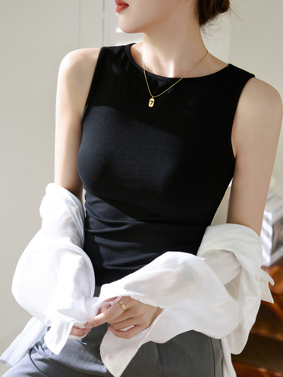 &用好料&高弹螺纹棉宽肩带无袖背心女夏外穿新款吊带紧身内搭