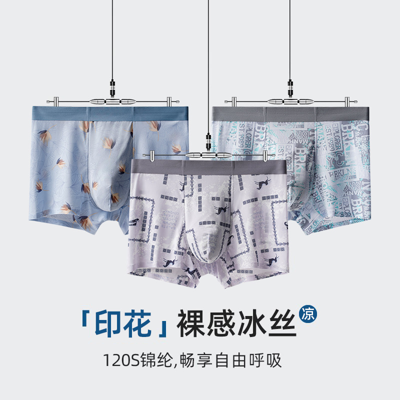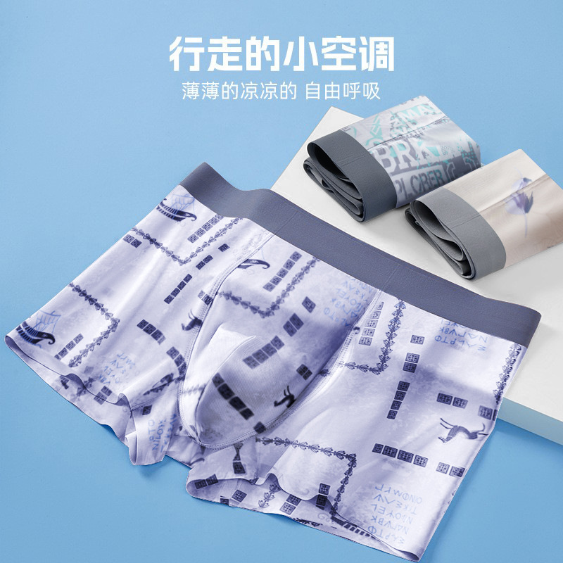 花色冰丝男士内裤无痕透气7A抑菌内裤男生夏季凉爽锦纶平角裤