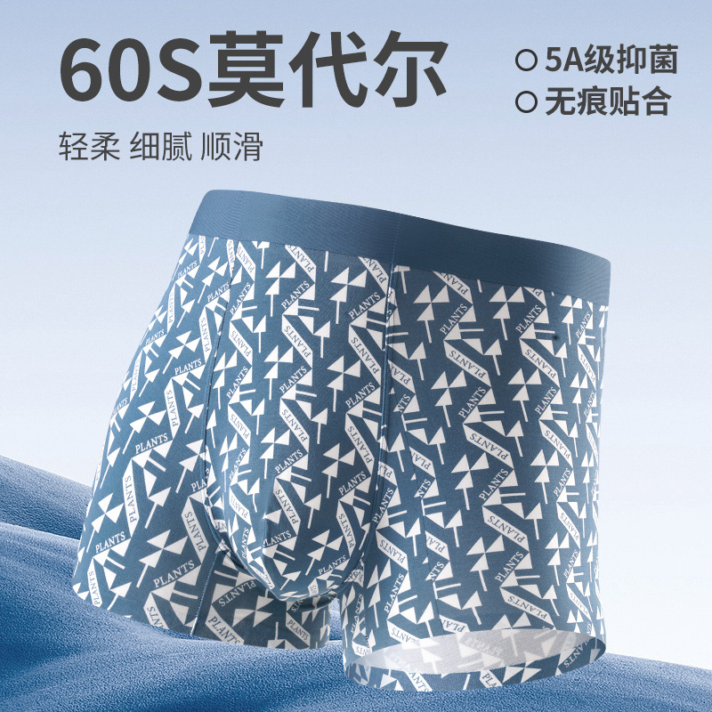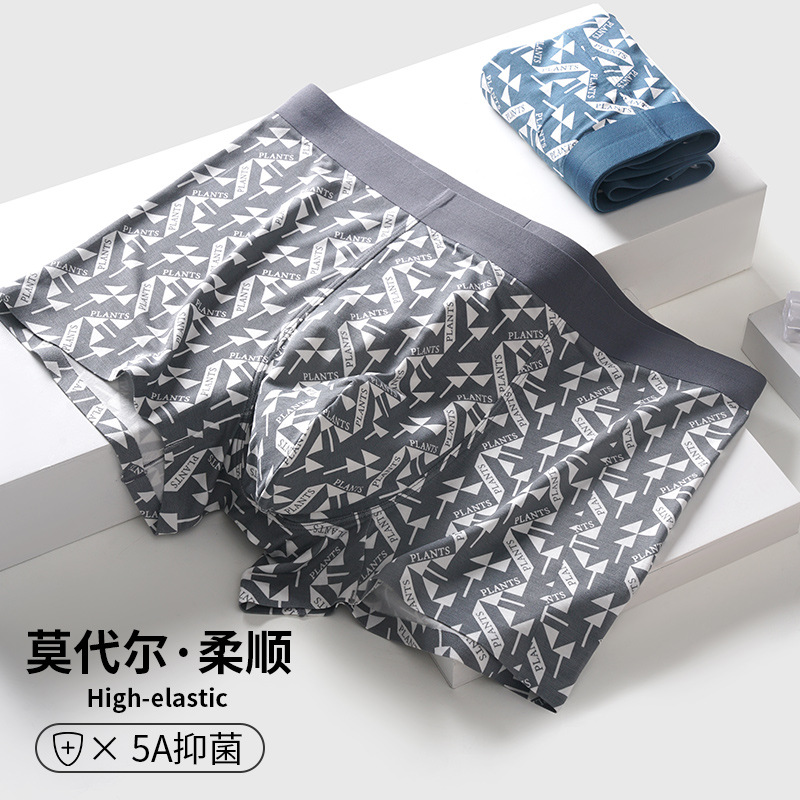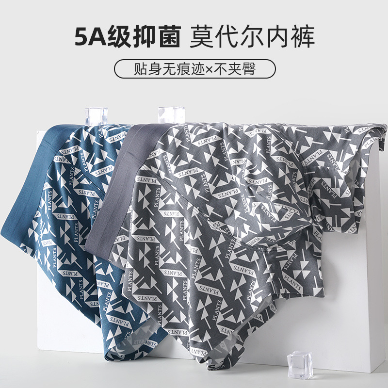 内裤男士莫代尔无痕平角裤印花大码中腰男生四角内裤透气裤衩