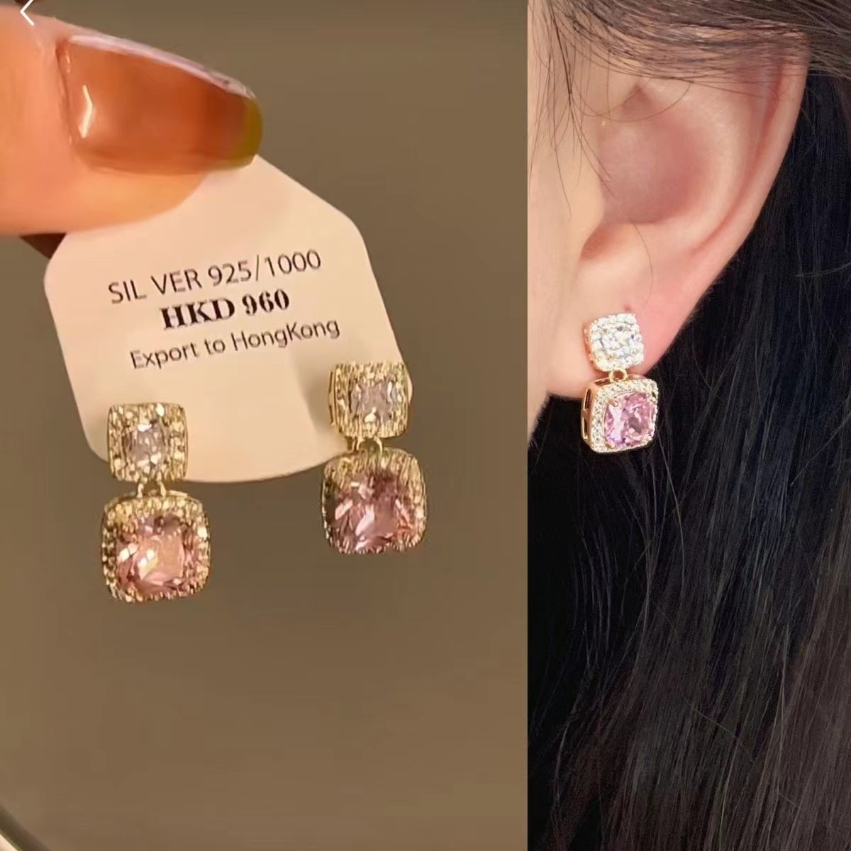 粉色际遇」精致小众耳钉女法式浪漫耳环锆石闪钻蚊香盘耳夹无耳洞