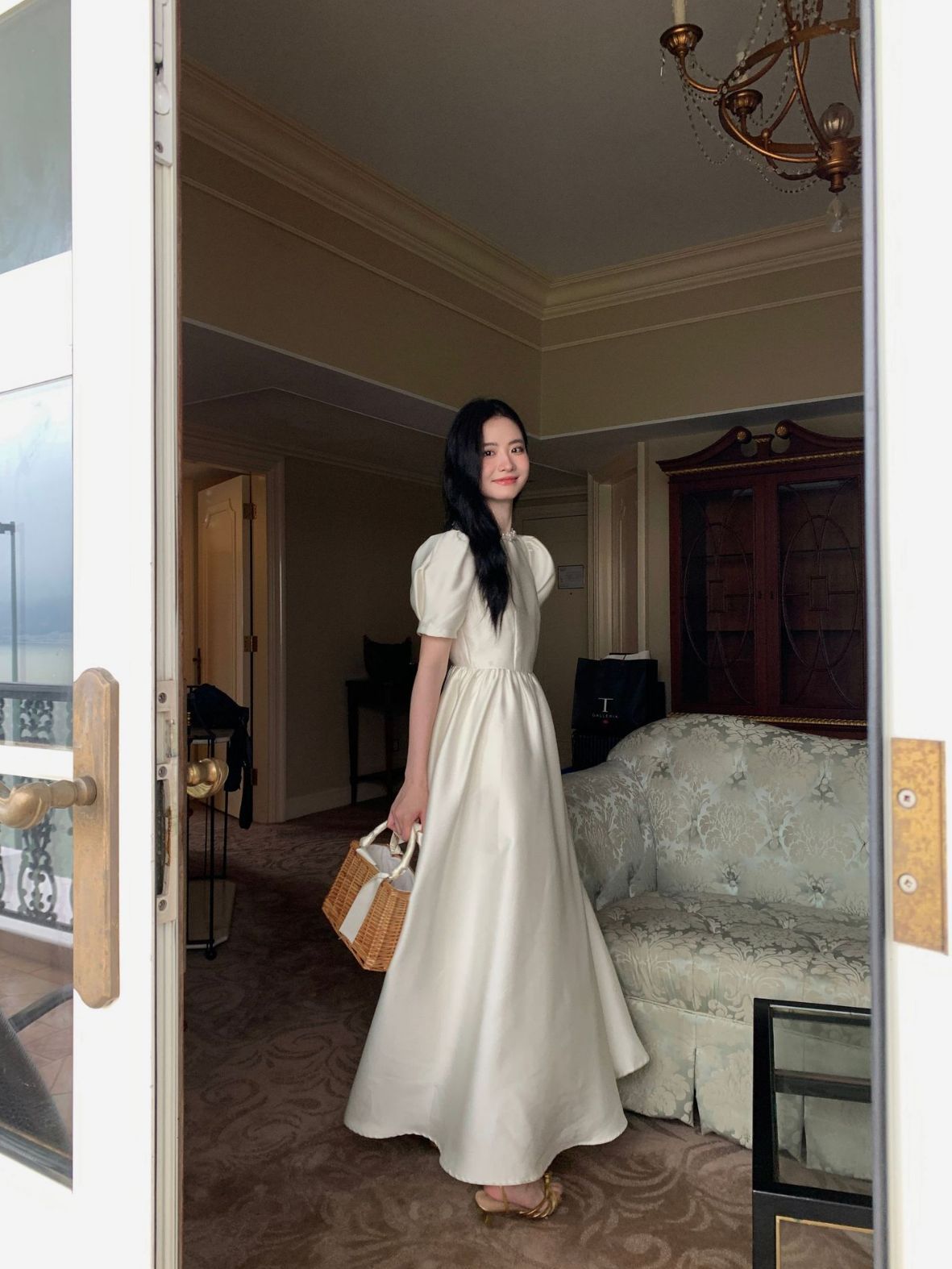 诠释美NEW OPEN网红爆款法式名媛缎面连衣裙女收腰气质长裙82105