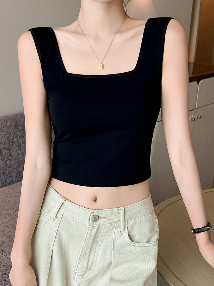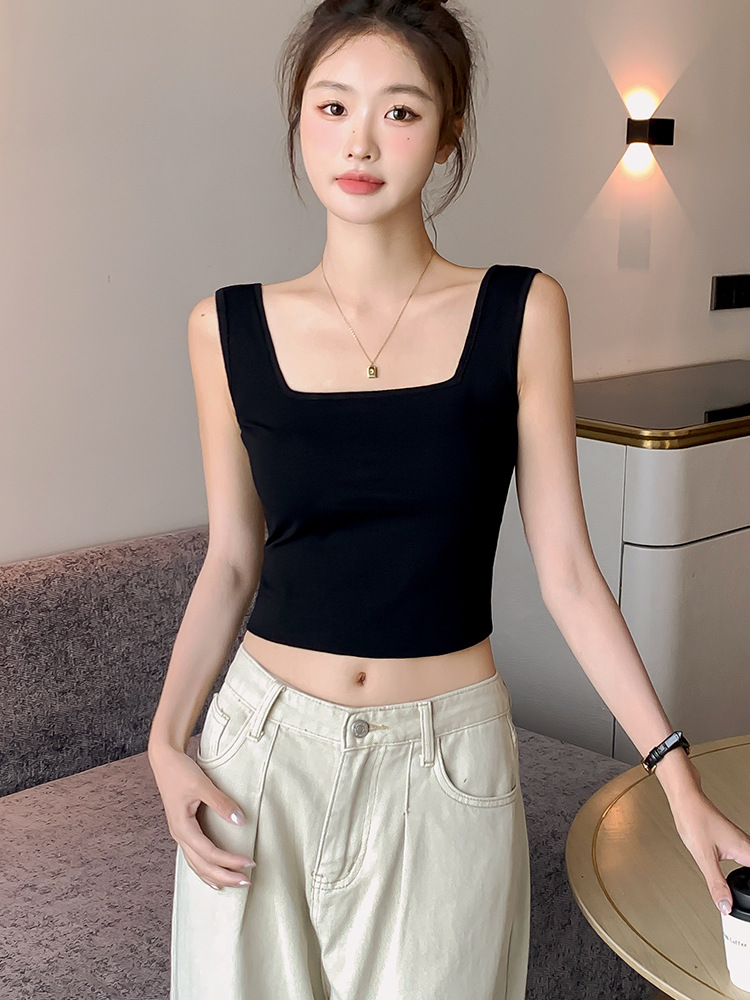纯棉方领露脐吊带女夏季修身设计感背心潮百搭外穿纯色打底衫