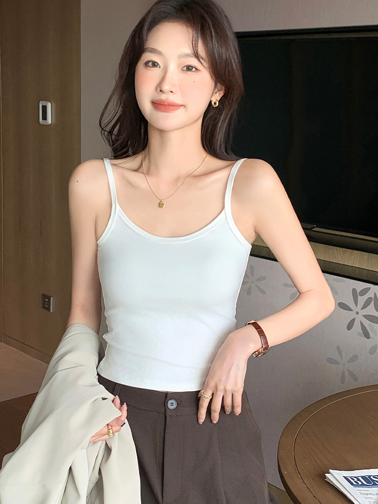 辣妹螺纹吊带女内搭春夏新款美背无袖外穿背心打底超短款上衣