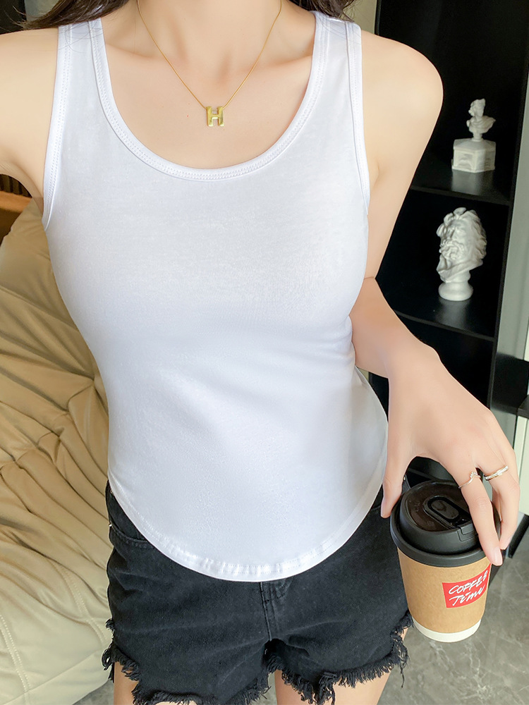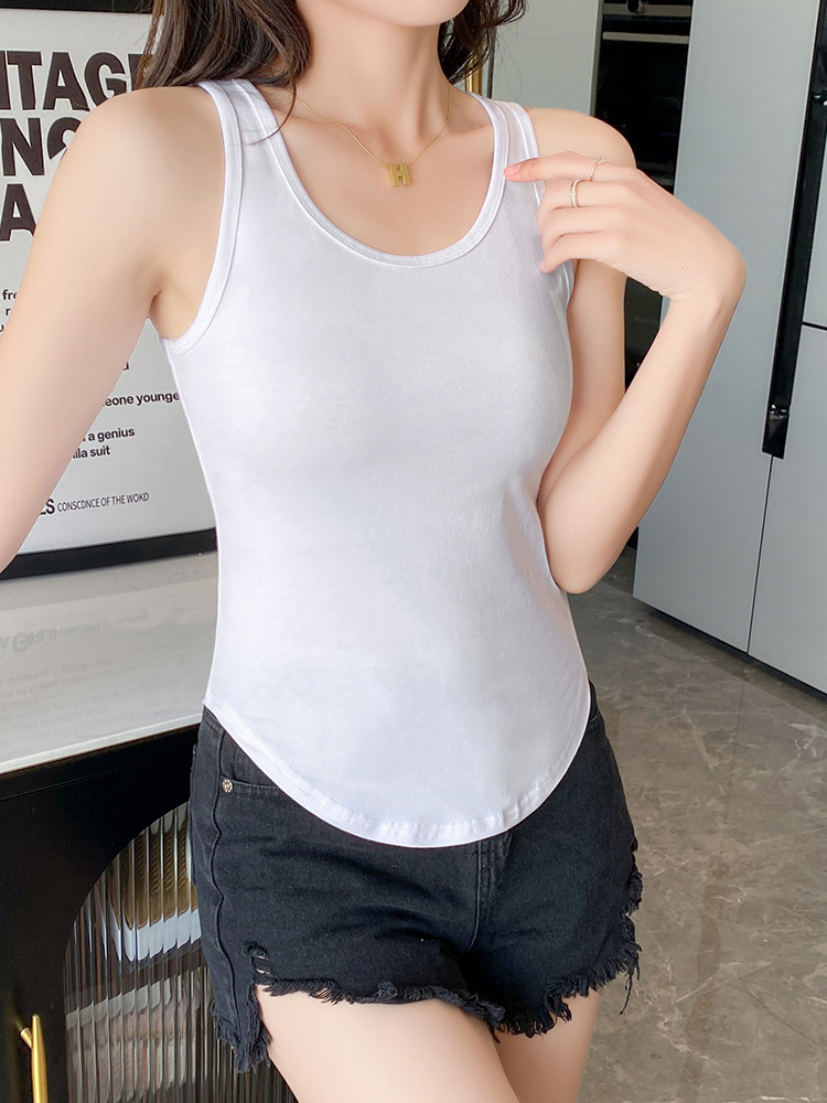 U领弧形下摆背心女春夏季新款纯色简约时尚修身纯棉无袖内搭背心