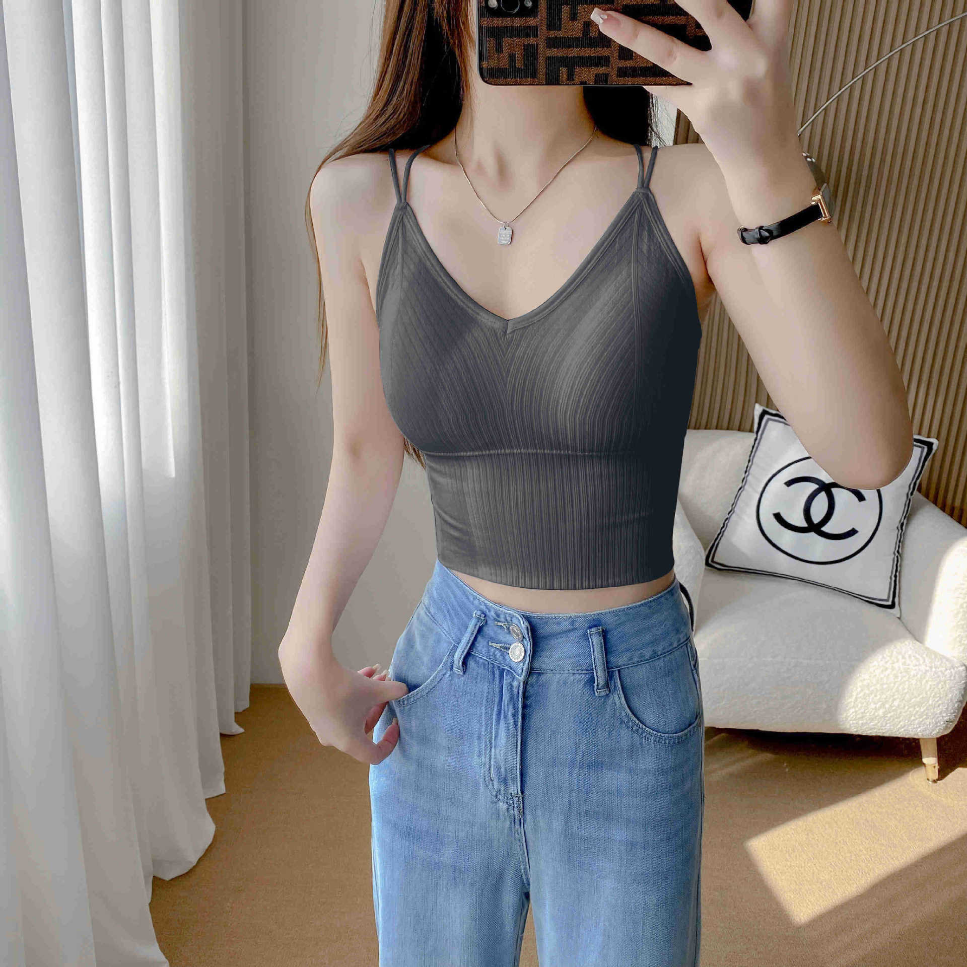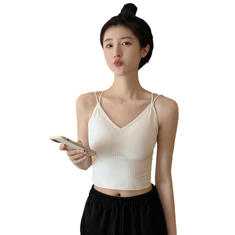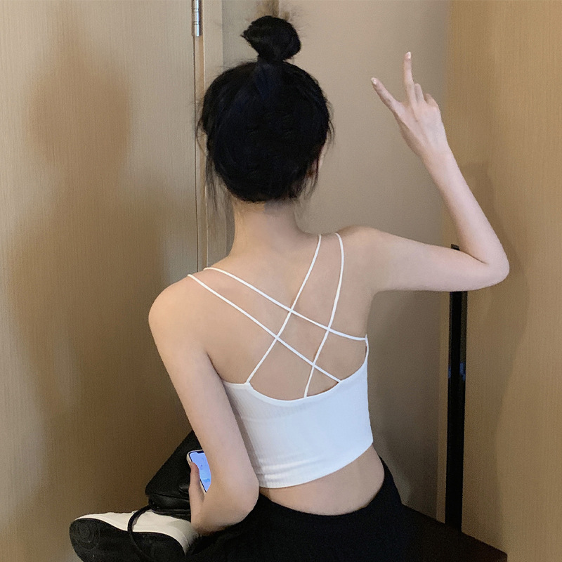 针织美背带胸垫可拆卸运动背心女内搭外穿打底超短款修身Y型背带