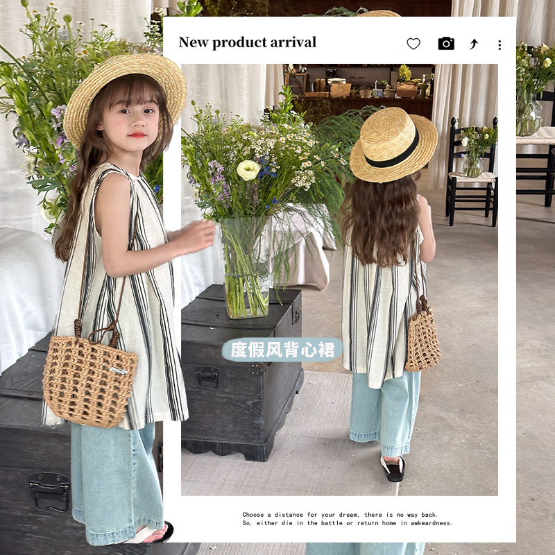 艾摩贝贝女童度假风背心裙夏新款儿童韩版洋气棉麻无袖连衣裙