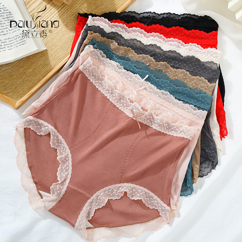 中高腰内裤女士蕾丝花边三角裤加高蚕丝裆部柔软舒适提臀收腹裤头
