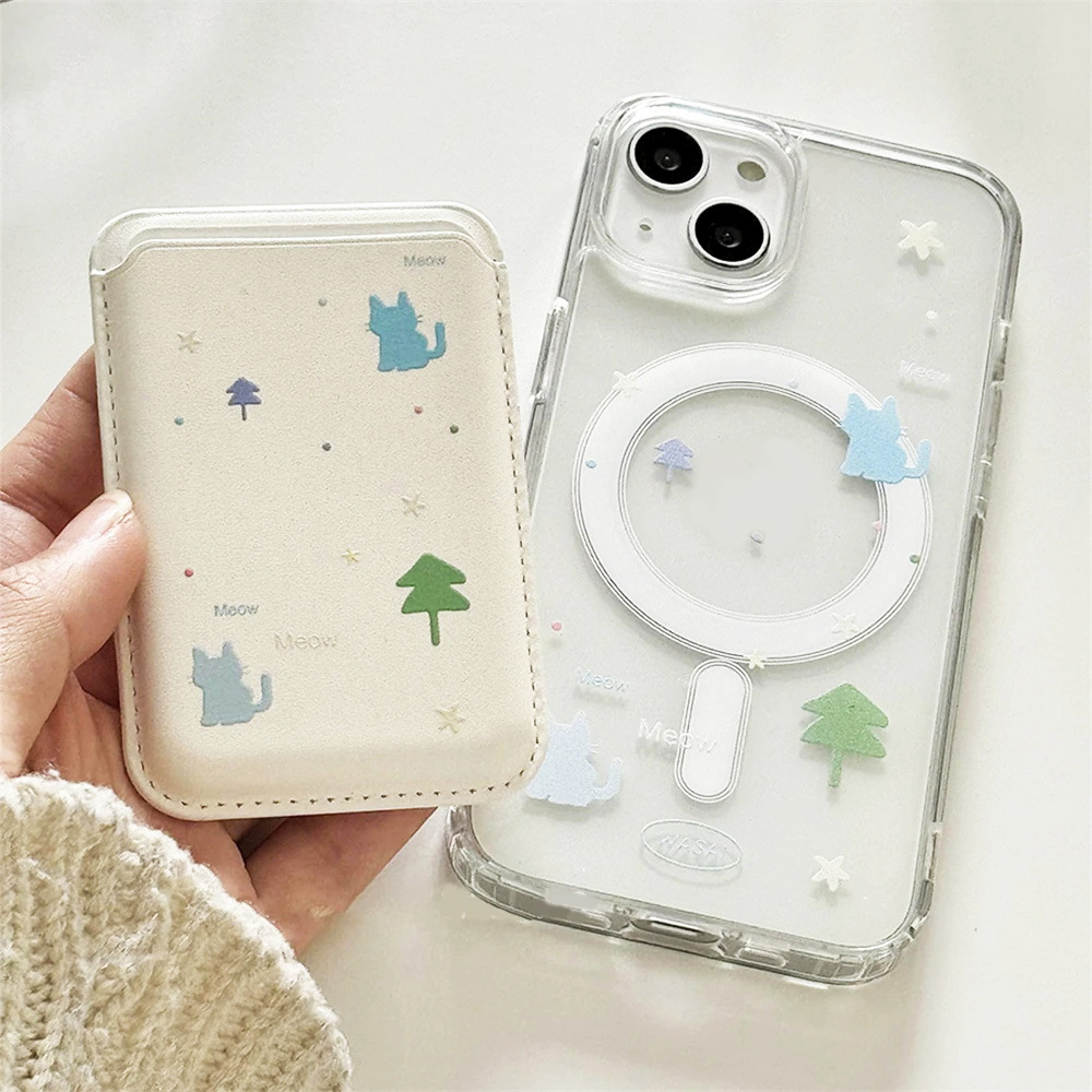 可爱猫咪磁吸卡包苹果14保护套适用iphone15手机壳7PLUS防摔XSMAX