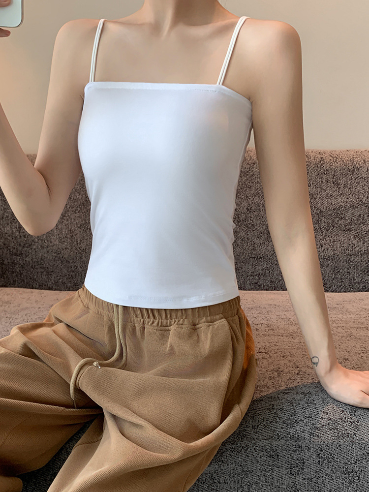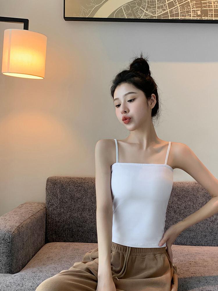 纯棉修身显瘦一字肩吊带夏季纯欲背心女薄款外穿打底衫
