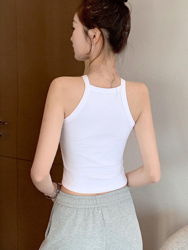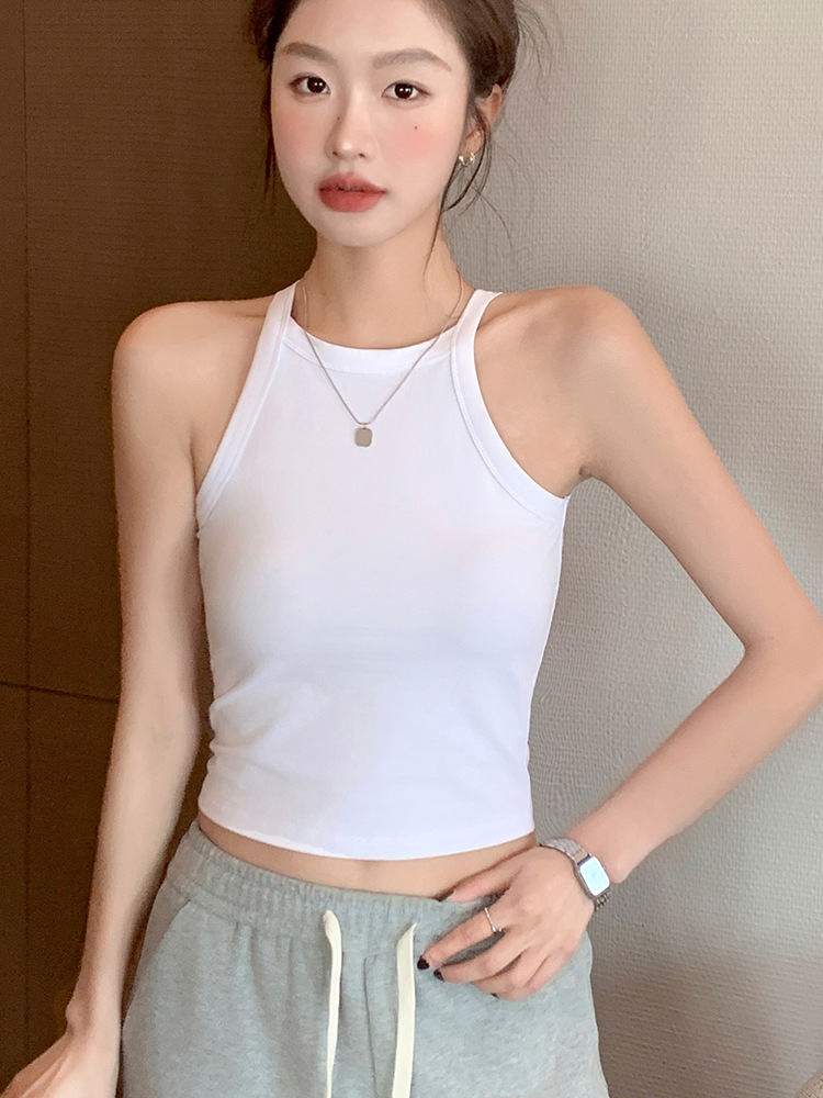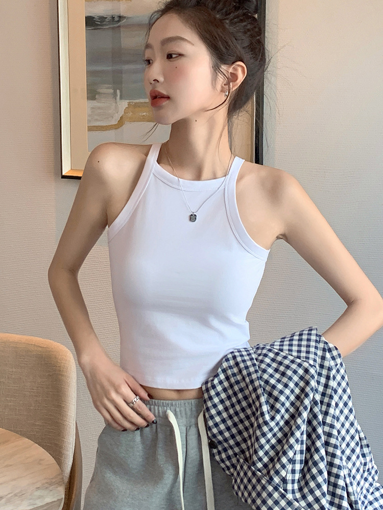 白色小吊带背心女内搭夏新款纯棉高腰短款挂脖上衣设计感外穿