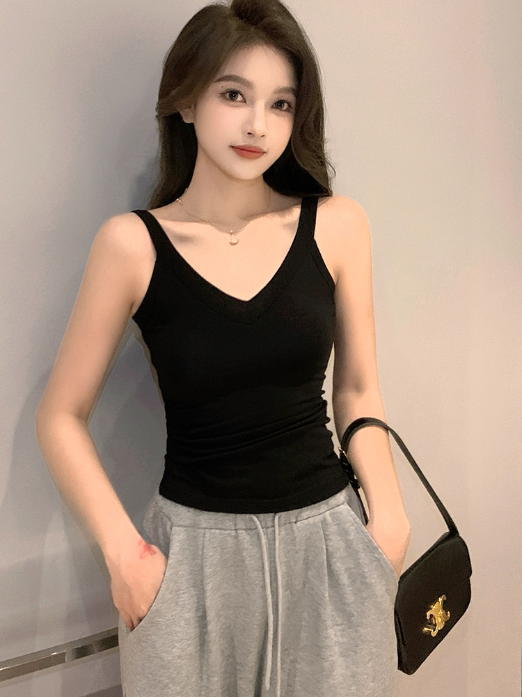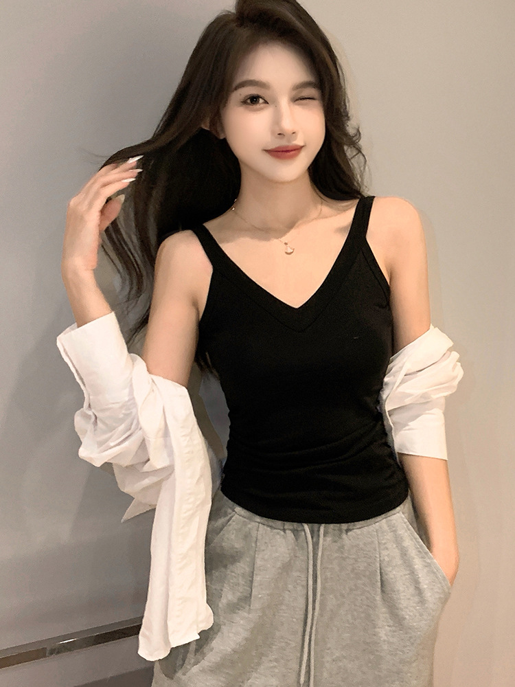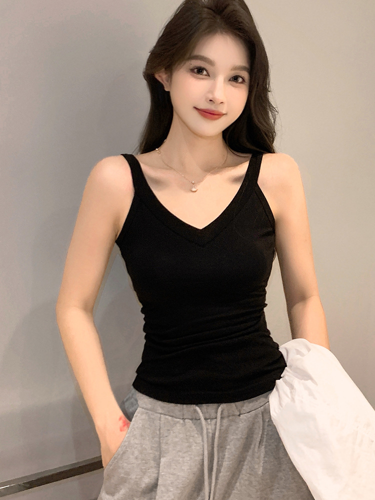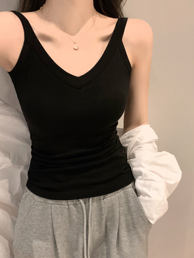 纯棉v领吊带女夏季基础款修身外穿美背无袖遮副乳打底上衣