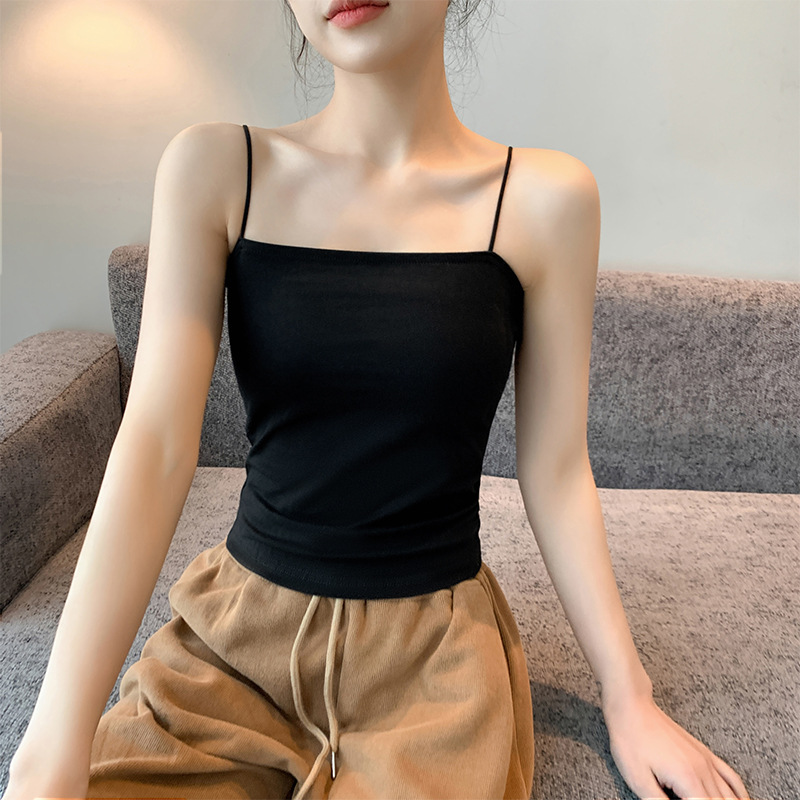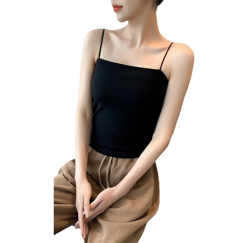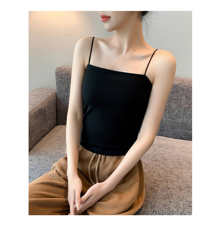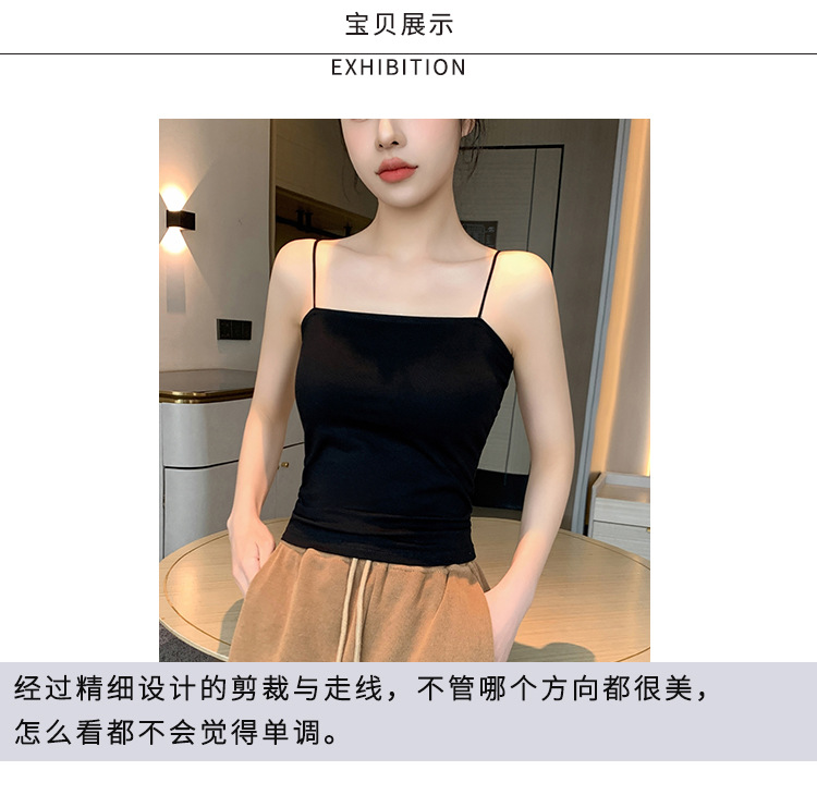 夏季性感女士吊带纯棉自带胸垫修身遮副乳外穿抹胸