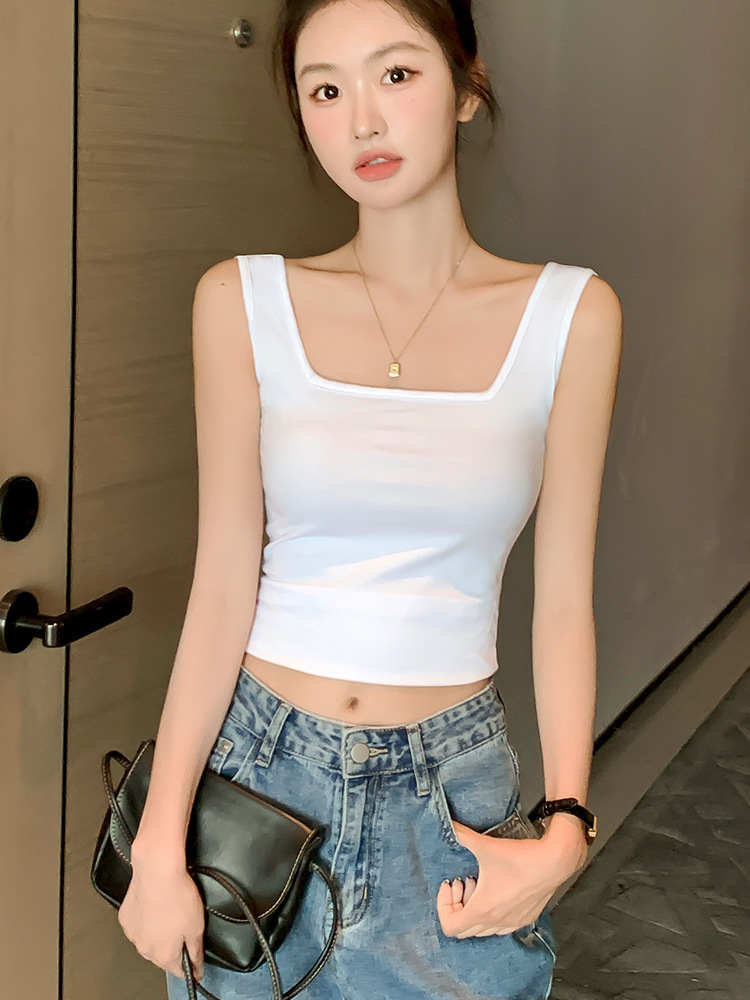 方领露脐纯棉背心女遮副乳法式甜美设计感美背装内搭网红爆款打底