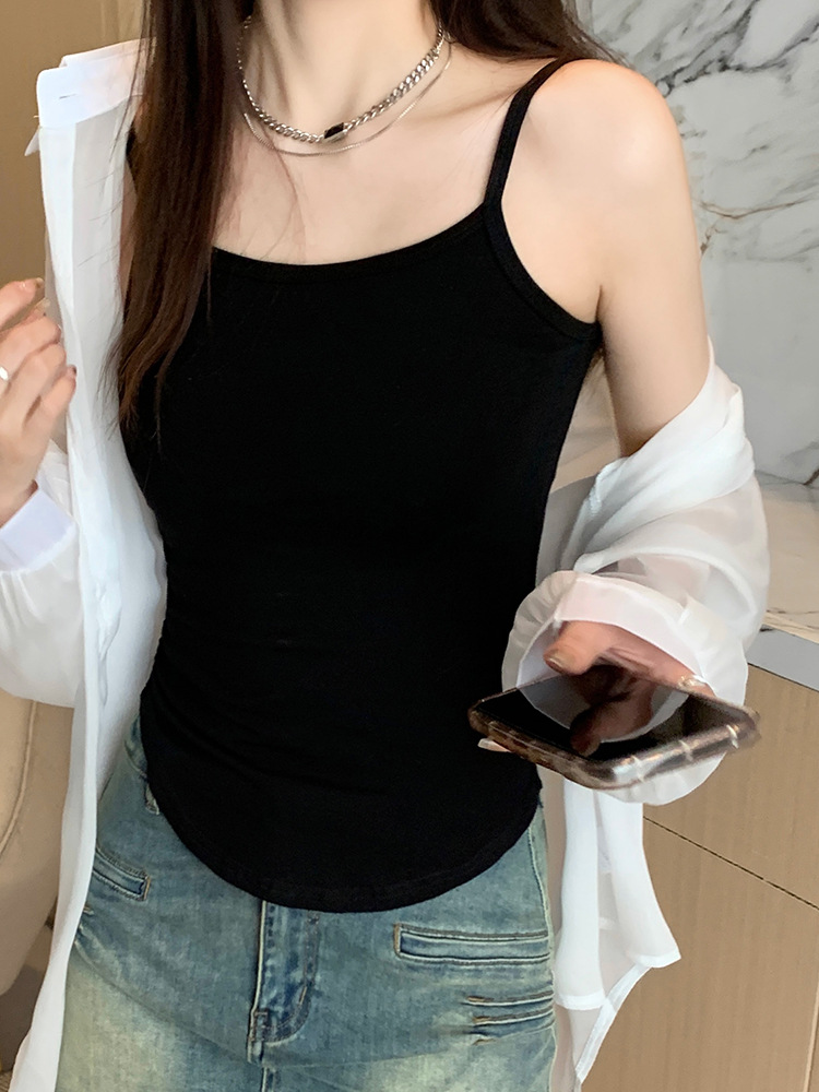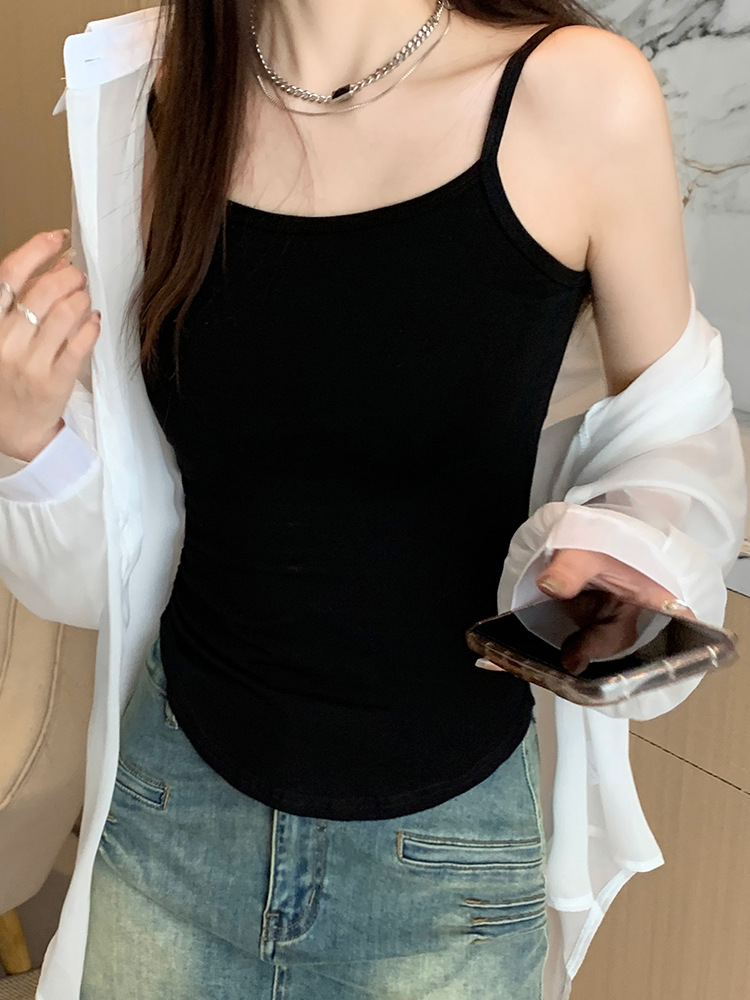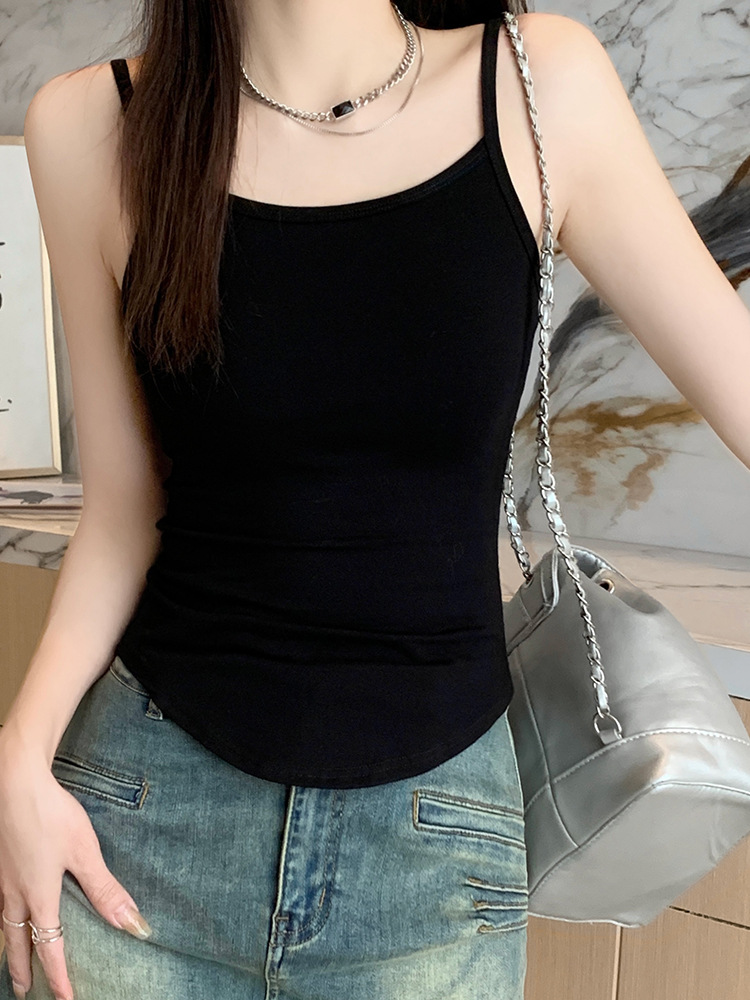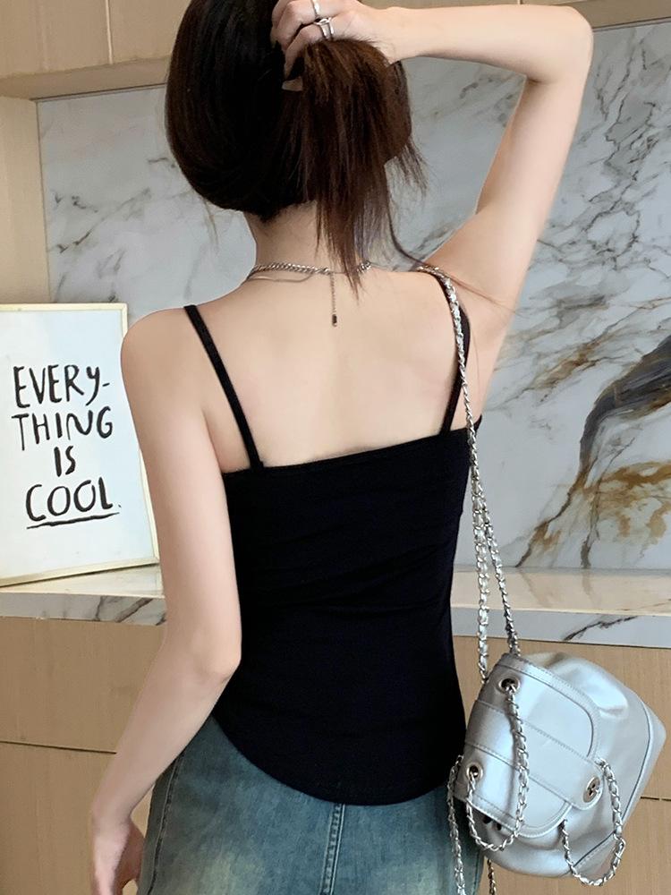 美式辣妹短款美背吊带女纯欲紧身无袖背心小个子带胸垫内搭上衣夏