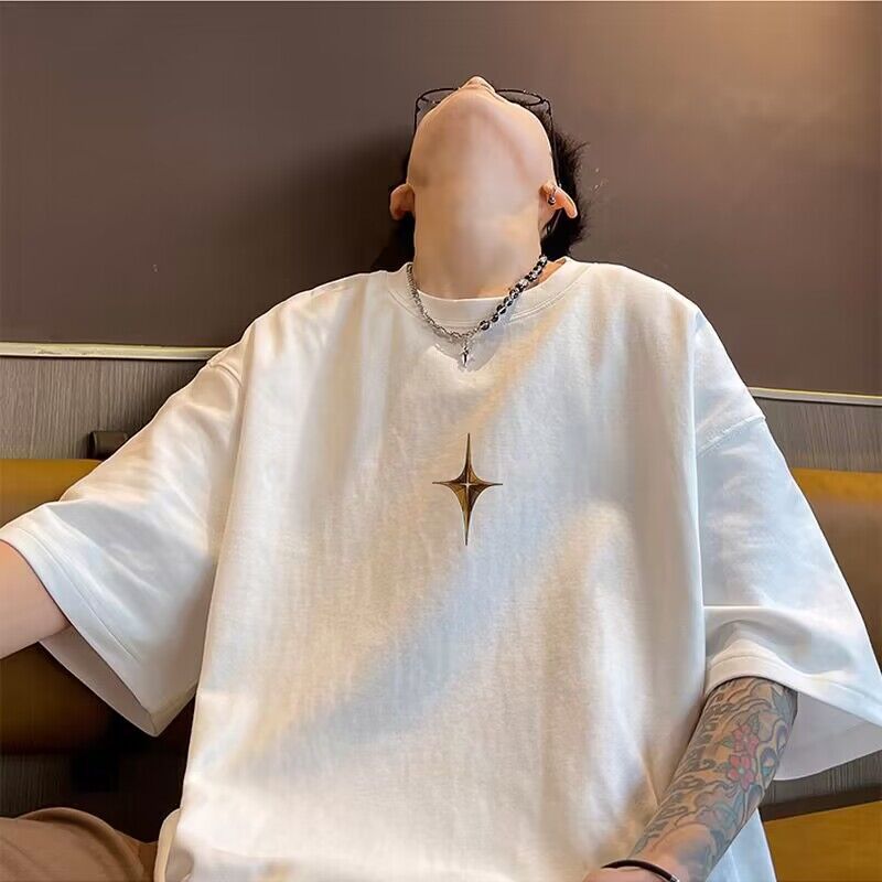 白色短袖T恤男款夏季潮牌美式高街宽松休闲潮流五分半袖纯棉衣服t