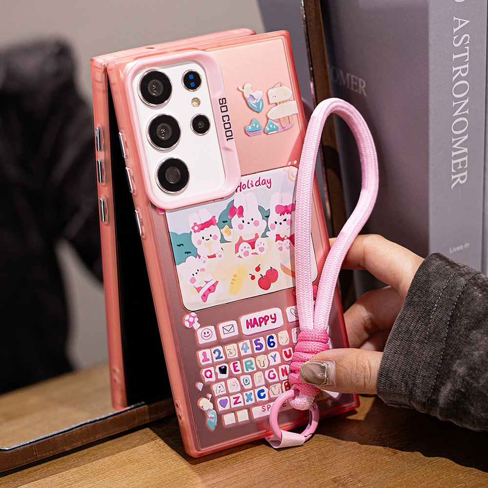 少女粉色兔兔按键机带挂绳S24Ultra手机壳防震S24Plus可爱S21卡通