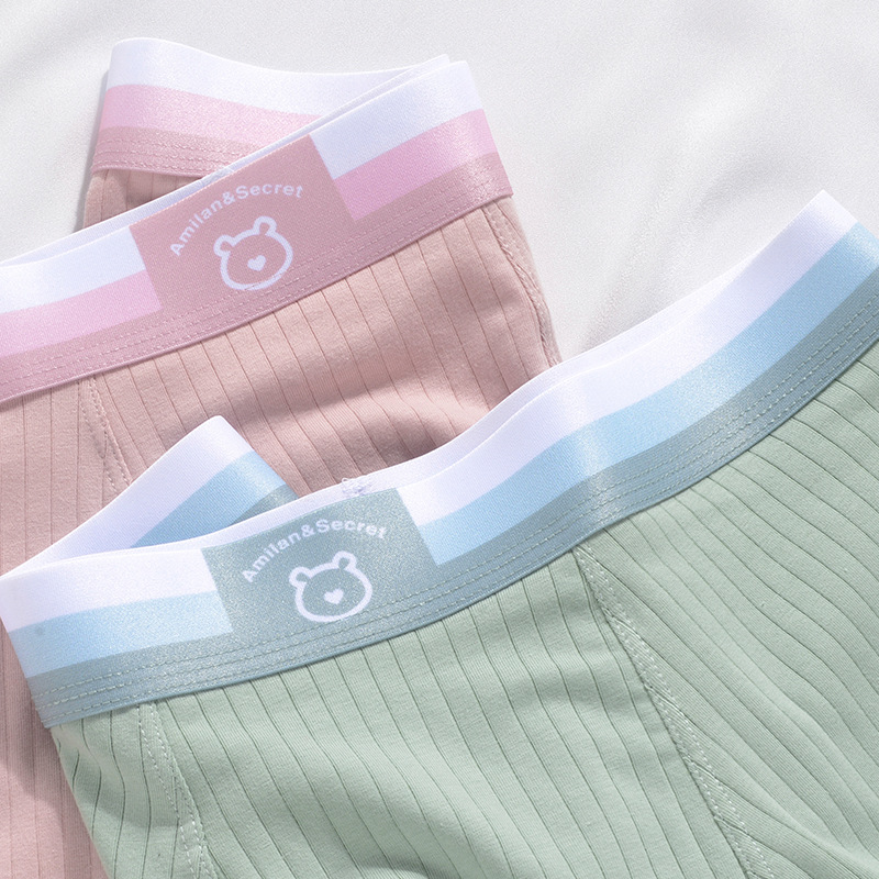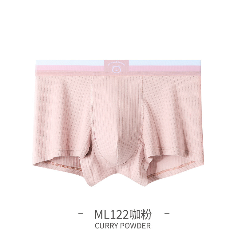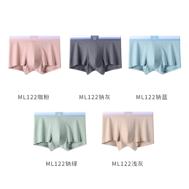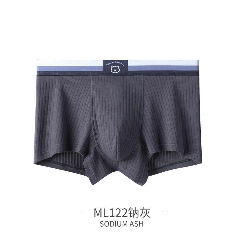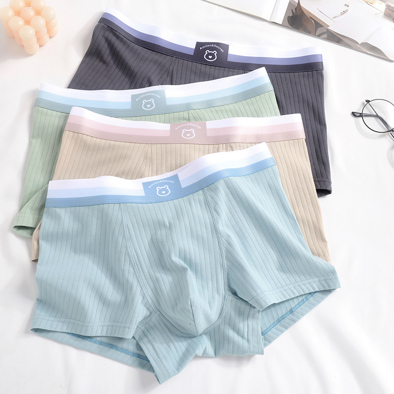 新款纯棉舒适条纹男士内裤渐变纯色潮流中腰男士平角内裤