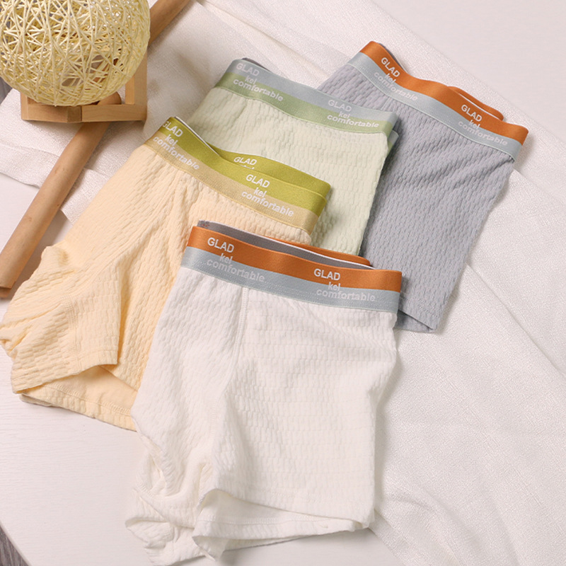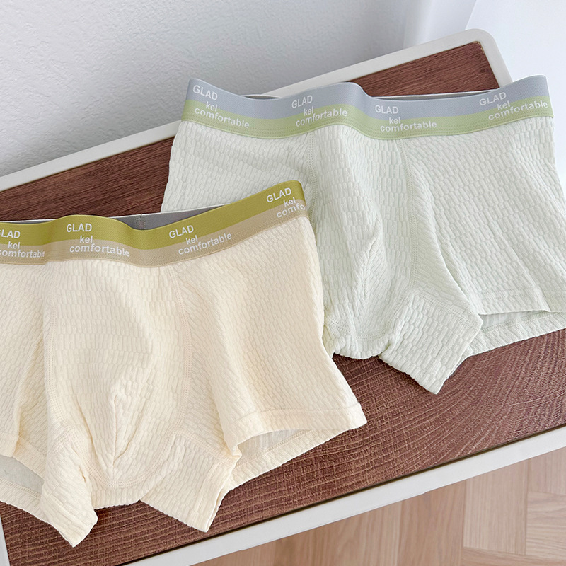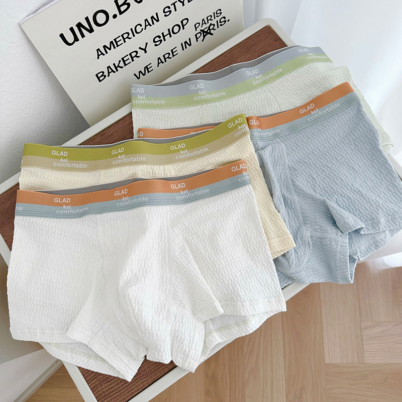 新款泡泡棉纯色男士内裤潮流可爱纯棉男士平角裤中山内裤