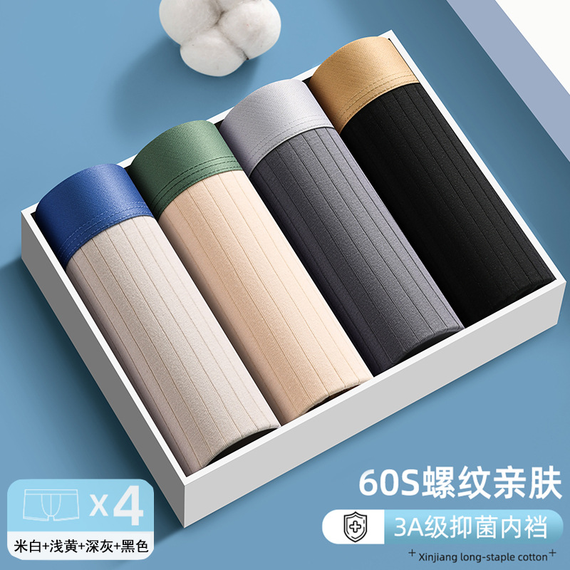 男士内裤纯棉春秋款男生透气四角裤衩青少年石墨烯抗菌平角短裤头
