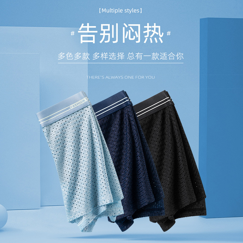 男士网孔内裤夏男款内裤舒适抗菌透气四角裤青少年平角短裤头