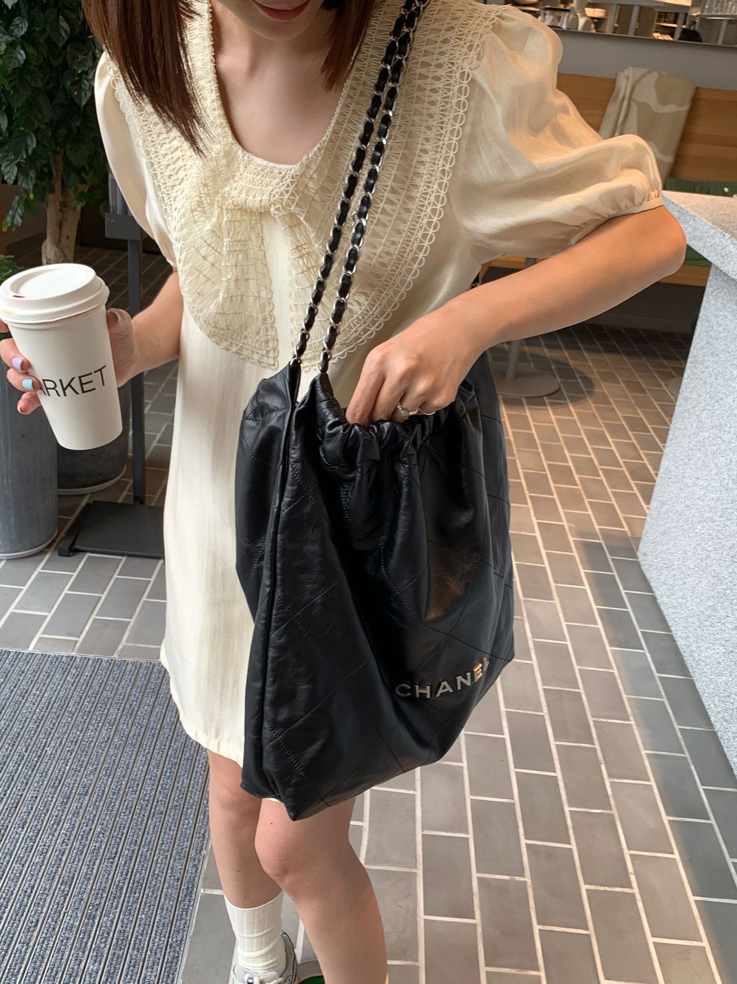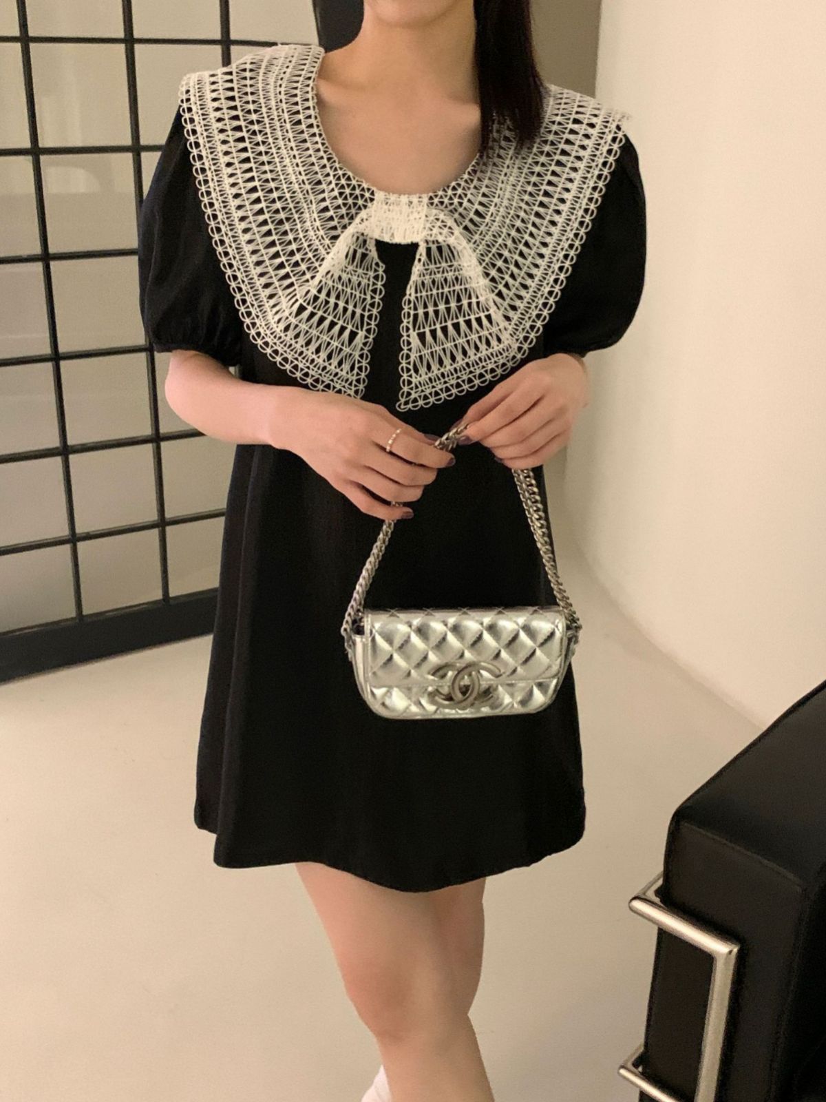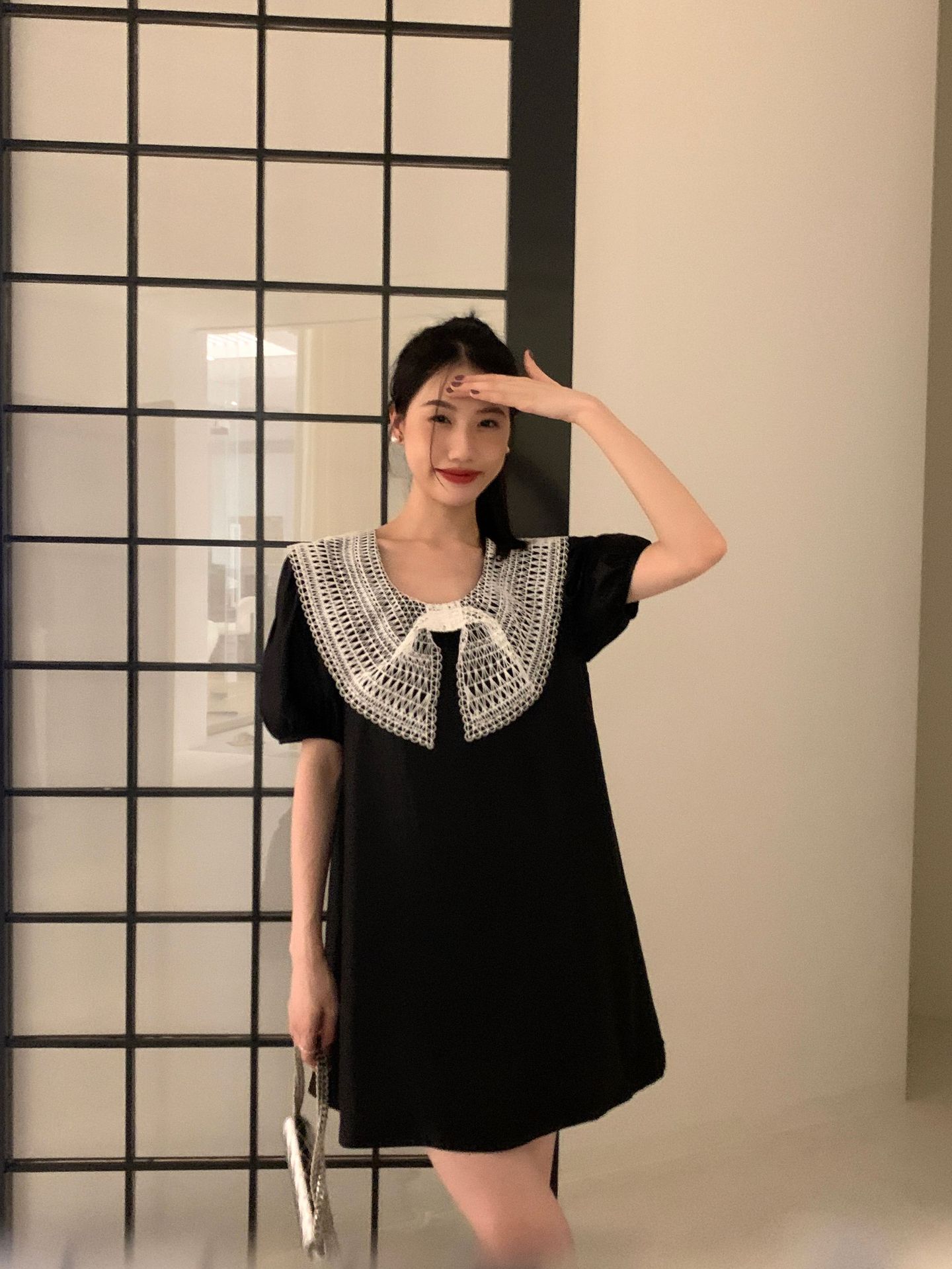 诠释美 NEW OPEN法式减龄荷叶领连衣裙女夏季黑色中长裙82721