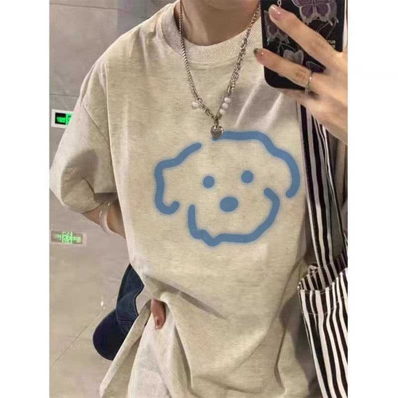 纯棉小狗印花短袖t恤女新款爆款夏季宽松设计感小众半袖上衣
