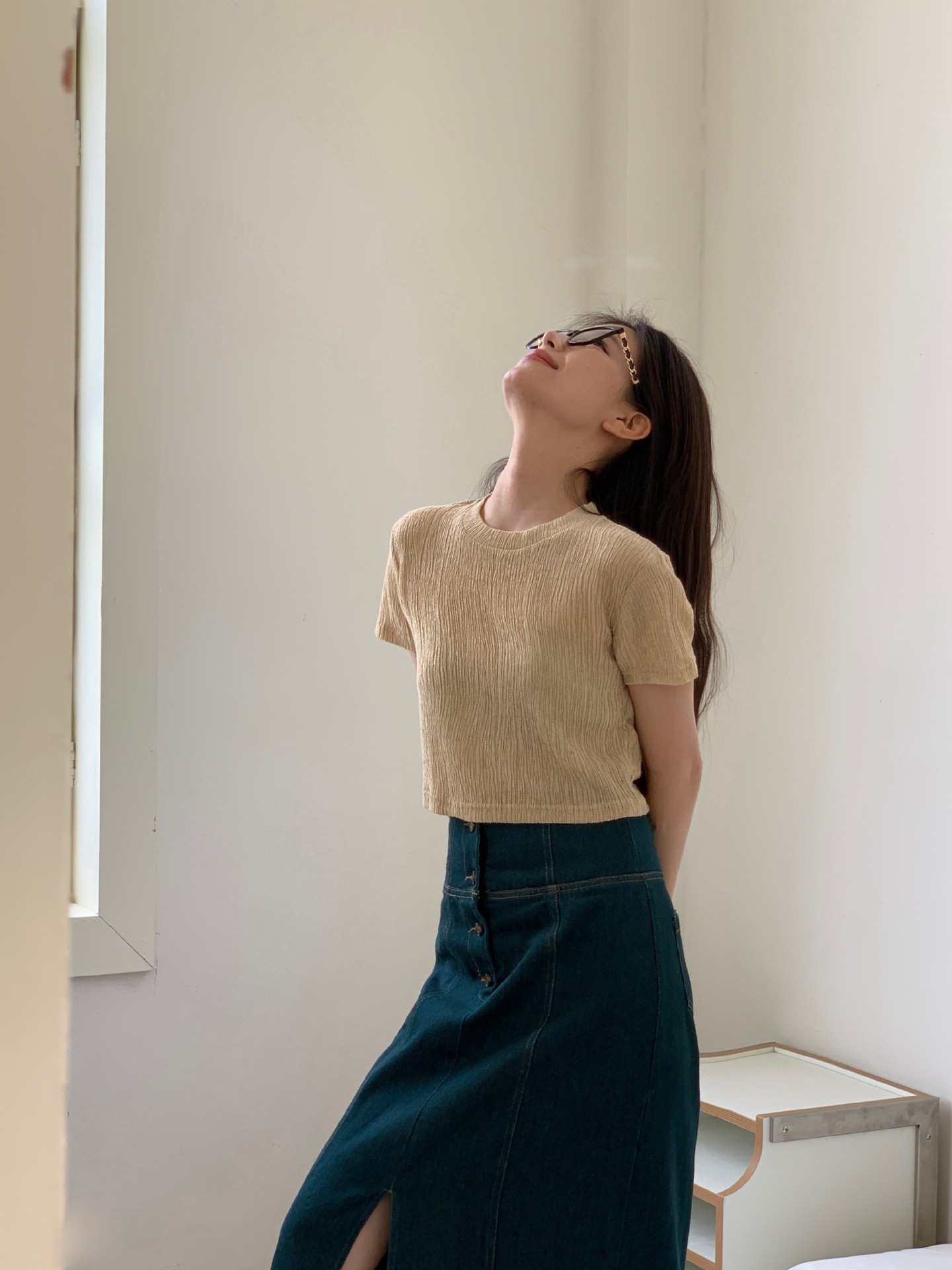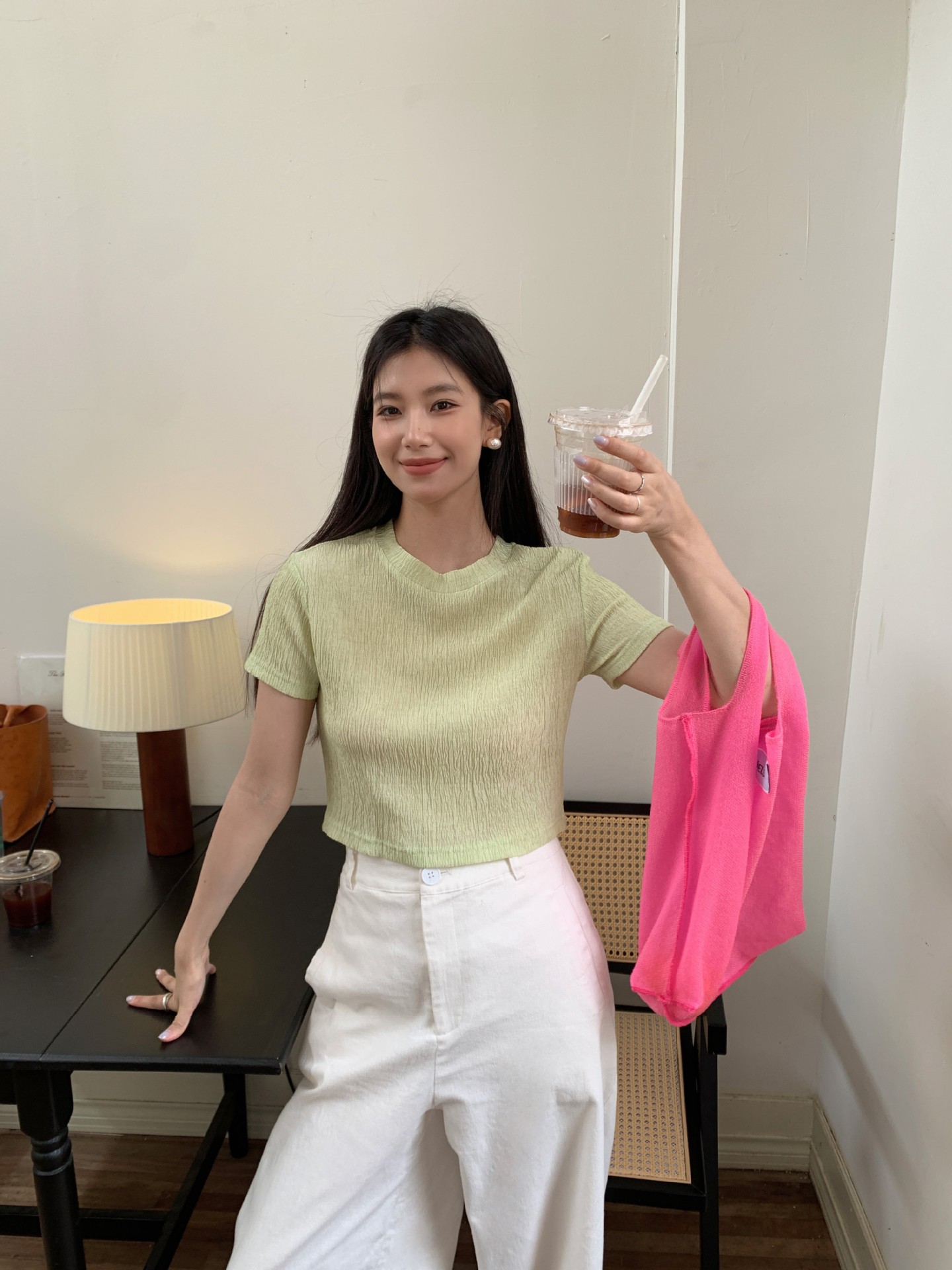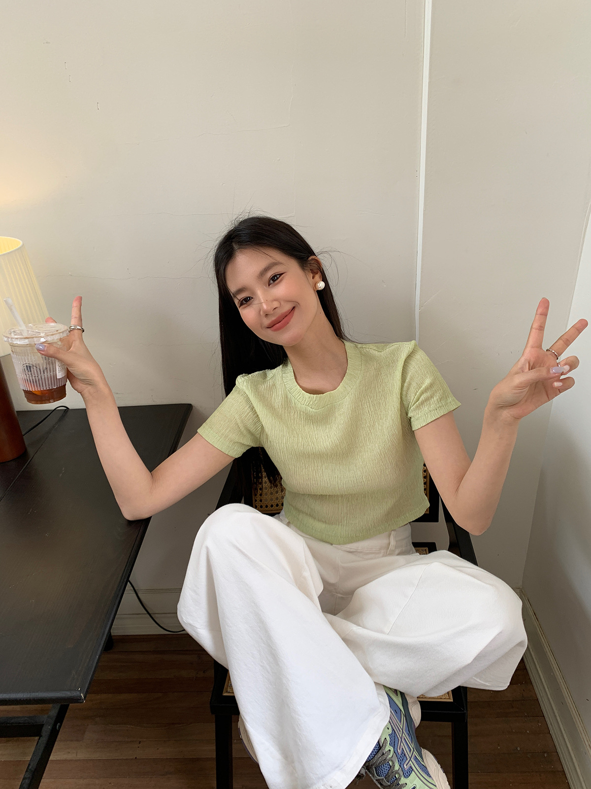 诠释美 NEW OPEN夏正肩短袖t恤女休闲百搭纯色圆领上衣82385
