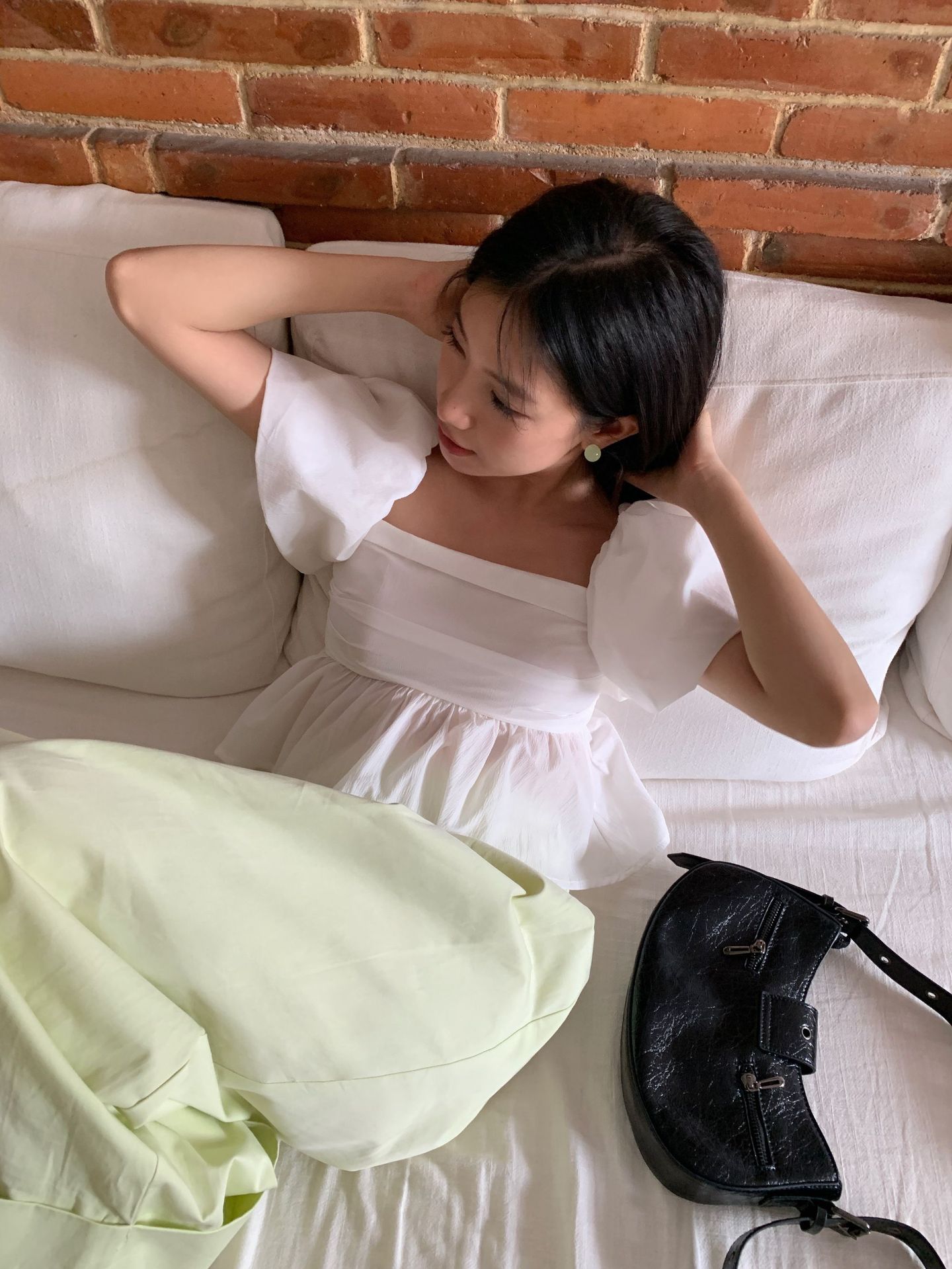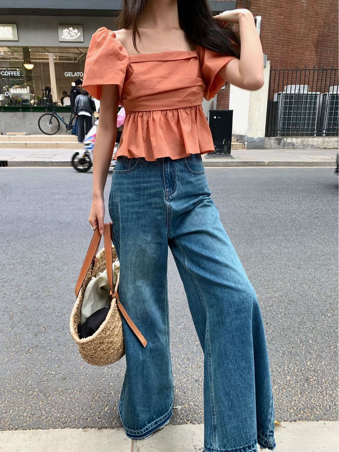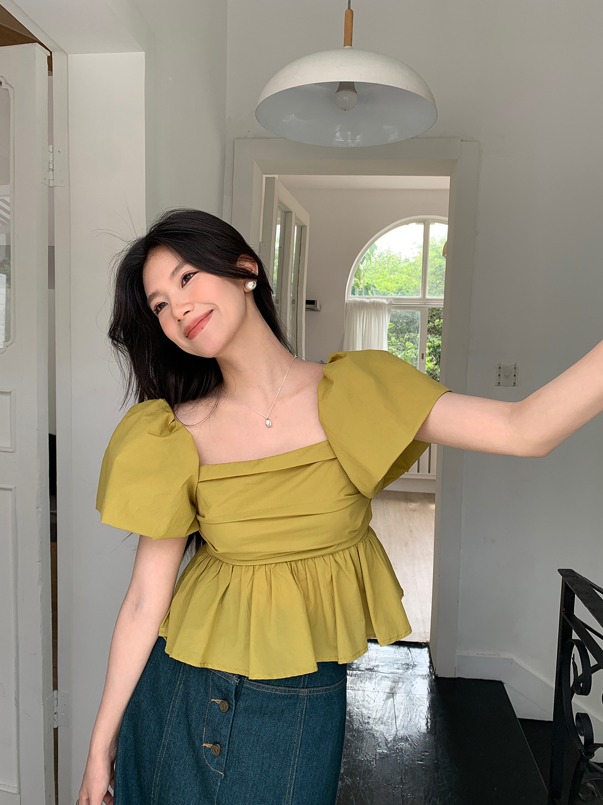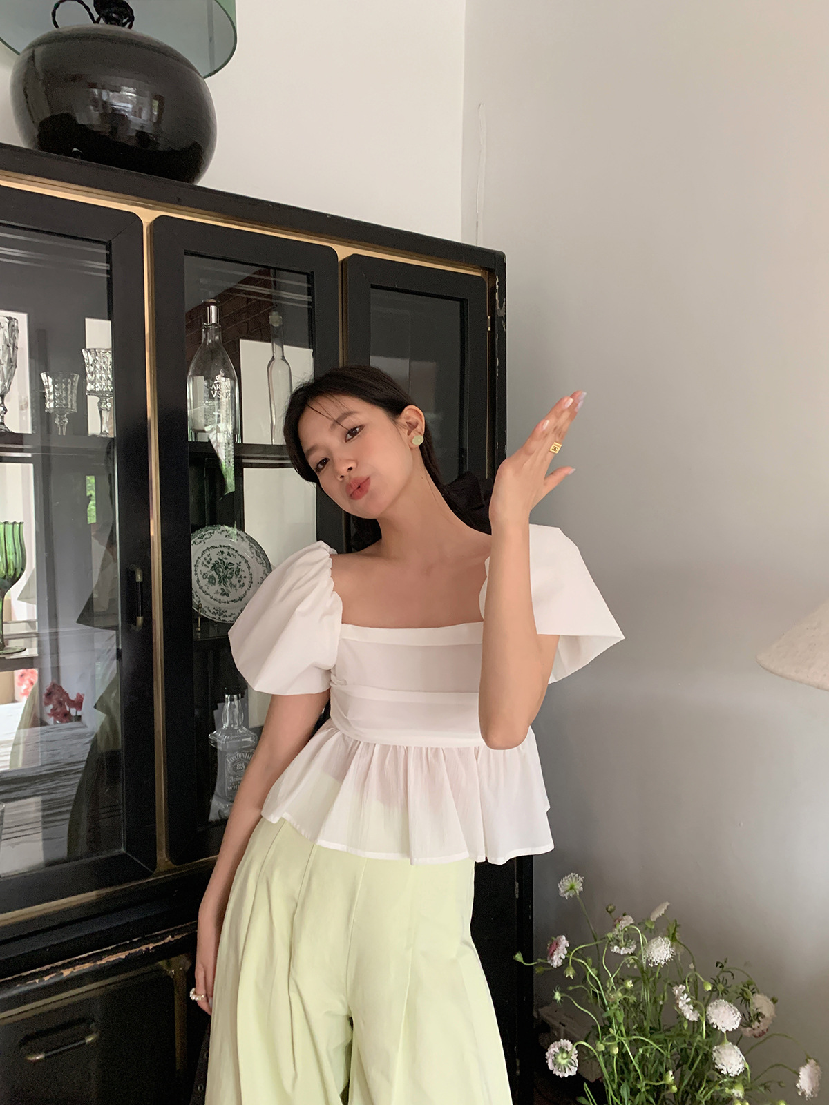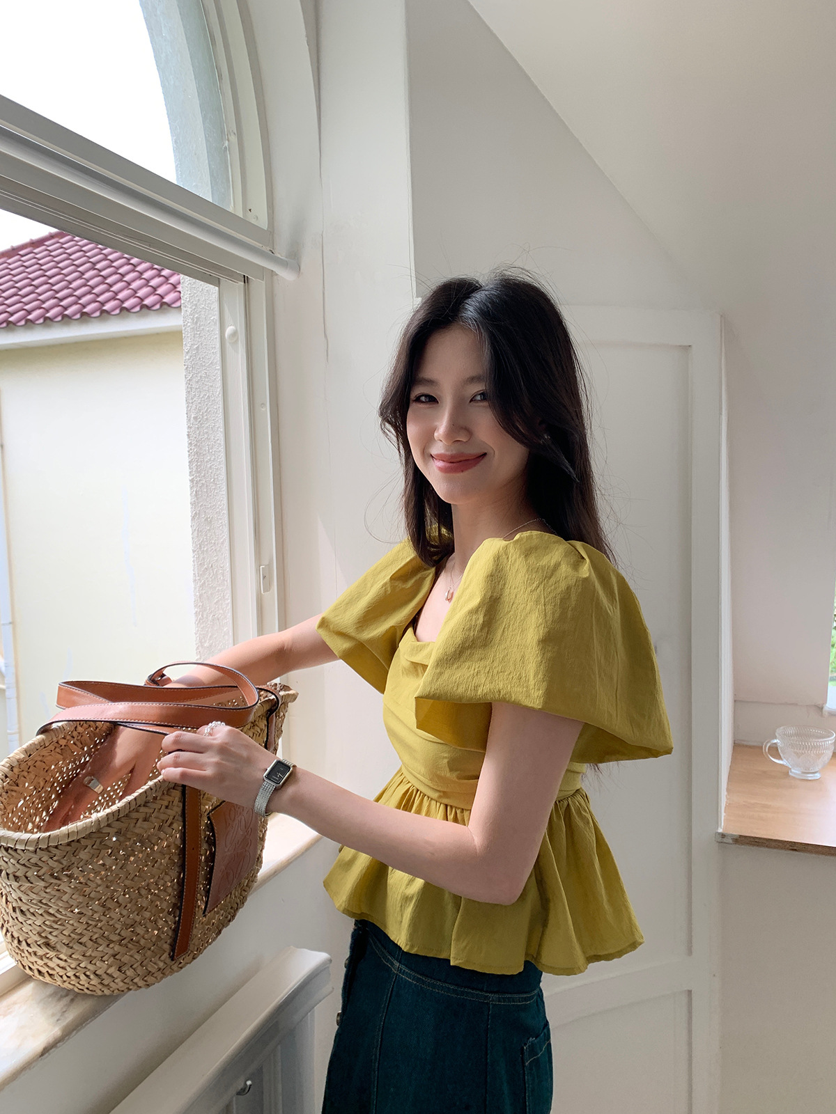 诠释美 NEW OPEN夏衬衫女法式甜美设计小众高腰方领上衣82520