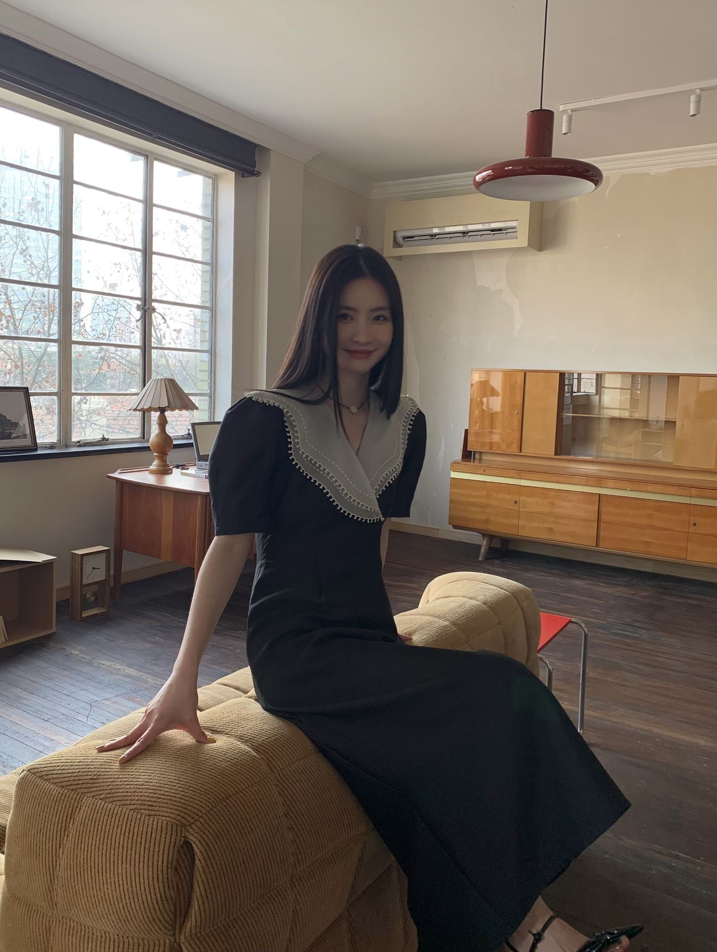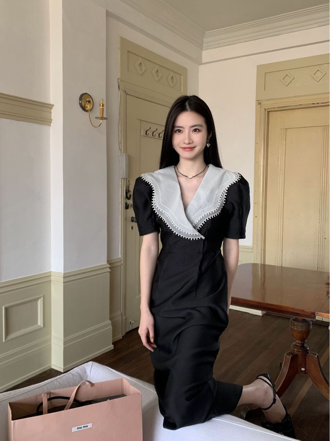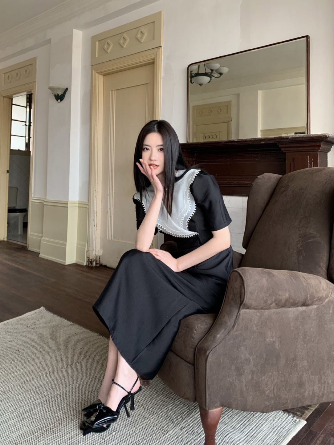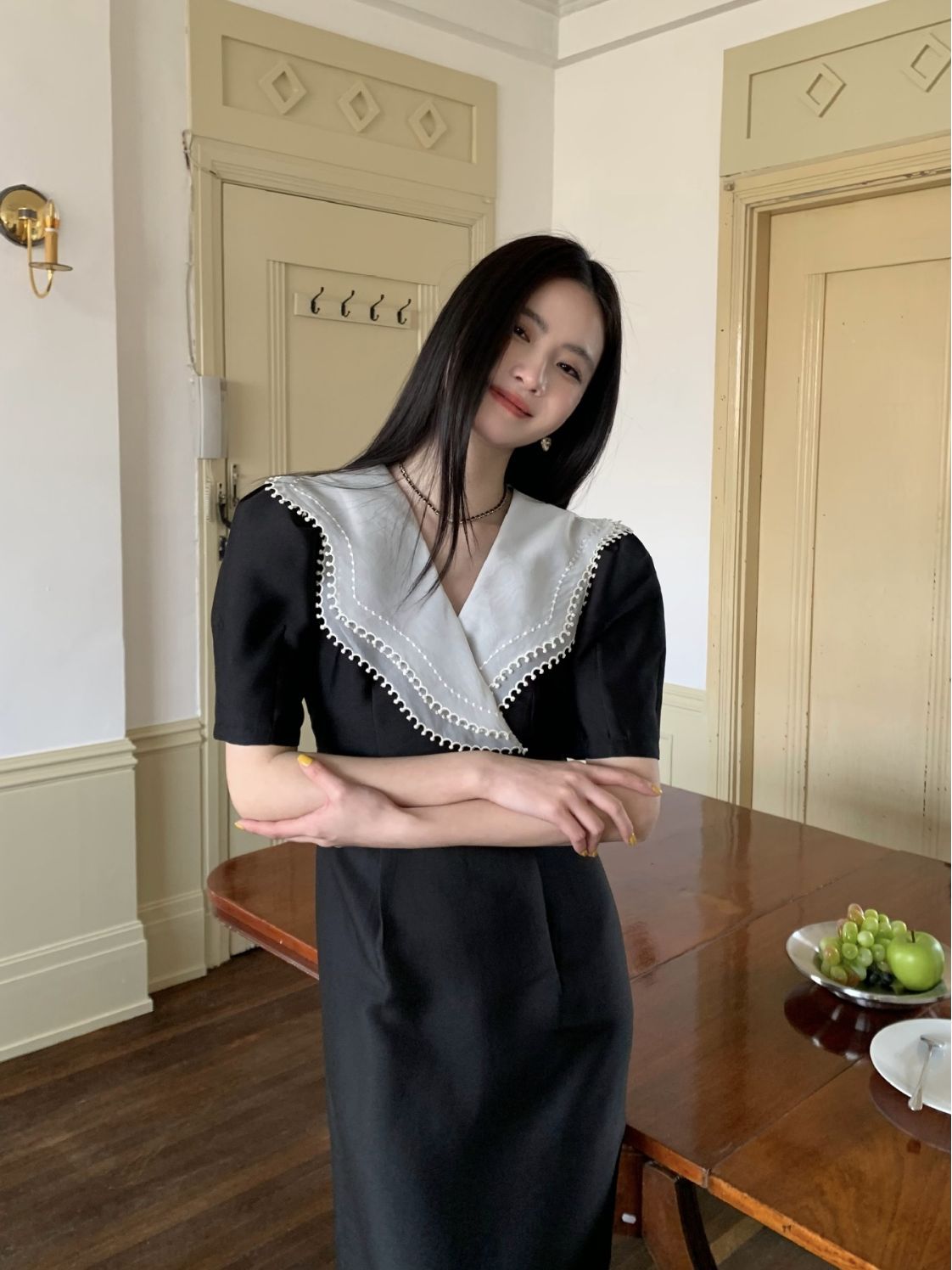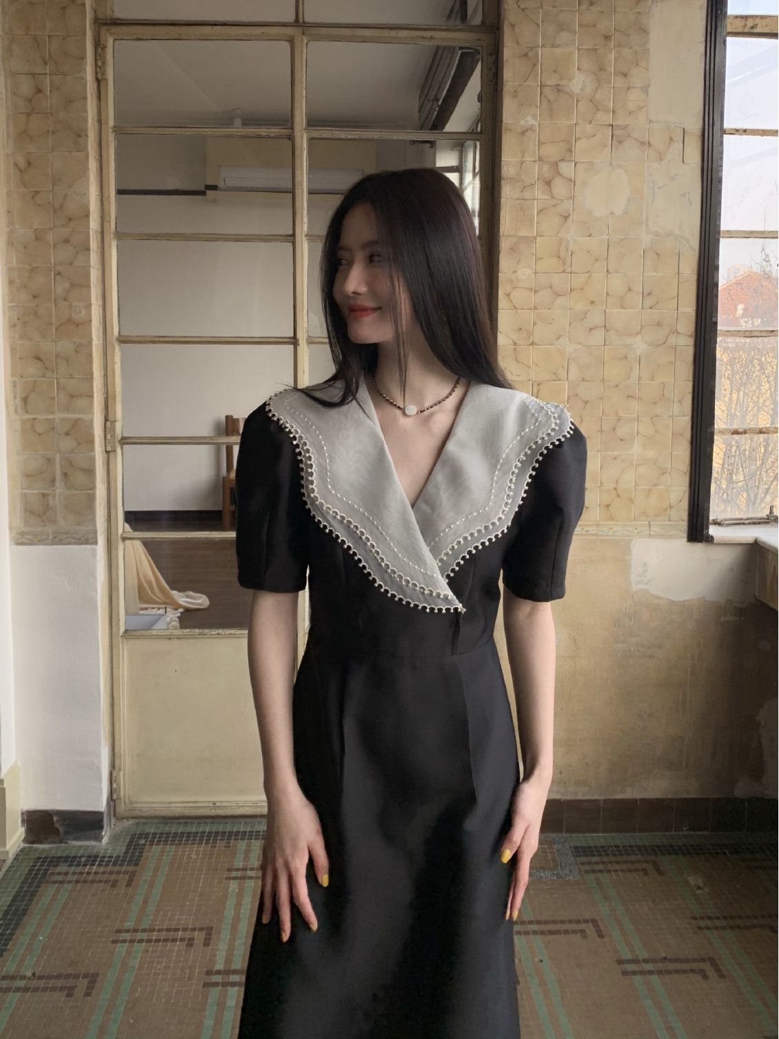 诠释美 NEW OPEN夏季翻领连衣裙女高级感收腰荷叶领裙子81277