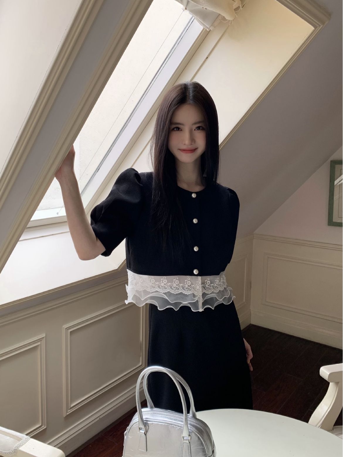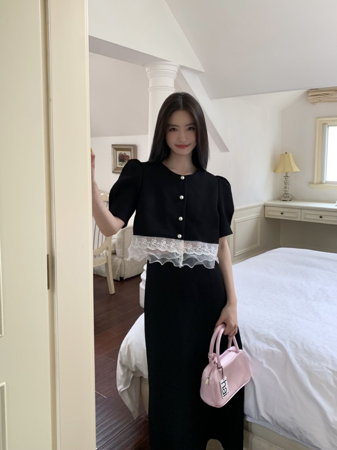 诠释美 NEW OPEN网红爆款夏季法式蕾丝花边上衣女泡泡袖开衫82007