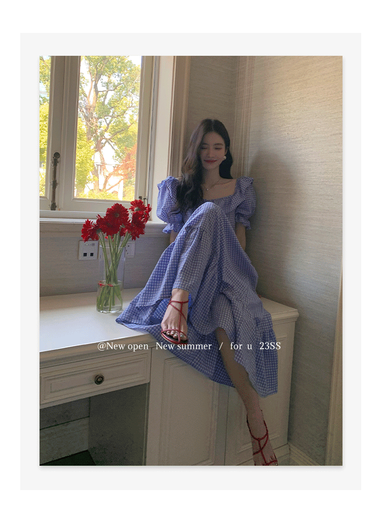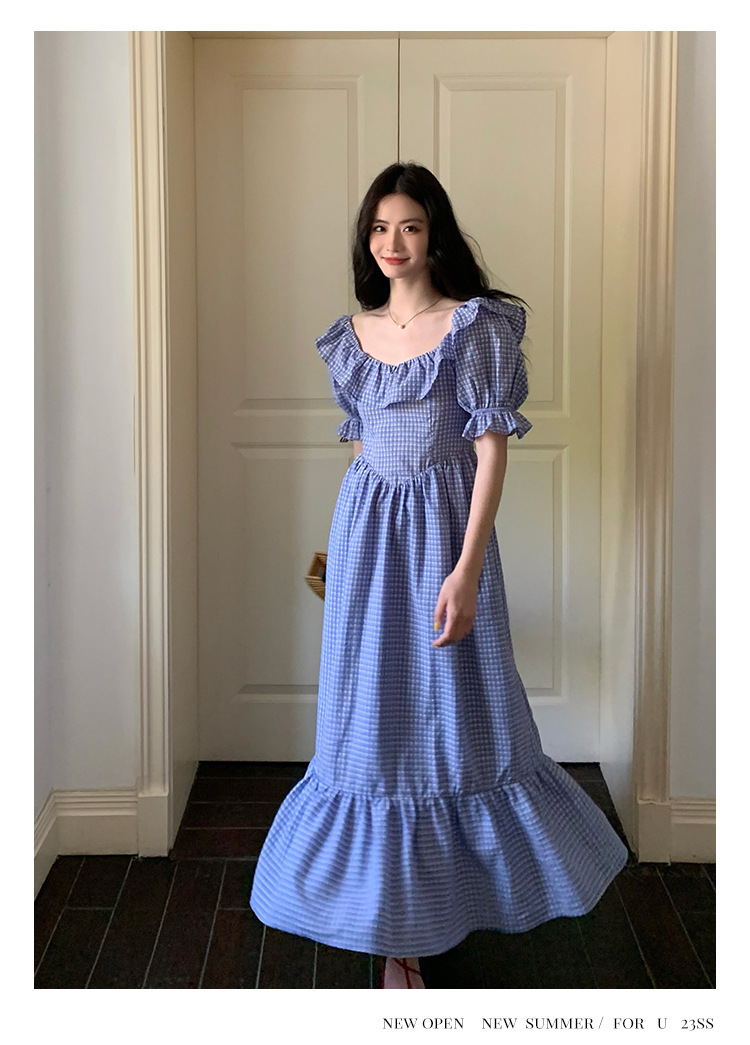 诠释美 NEW OPEN夏季气质荷叶边连衣裙收腰褶皱拼接长裙81272
