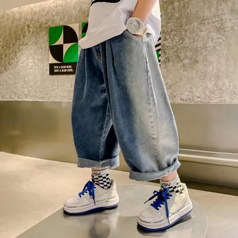 男童裤子春秋童装牛仔裤韩版宝宝渐变色裤子中大童直筒休闲裤
