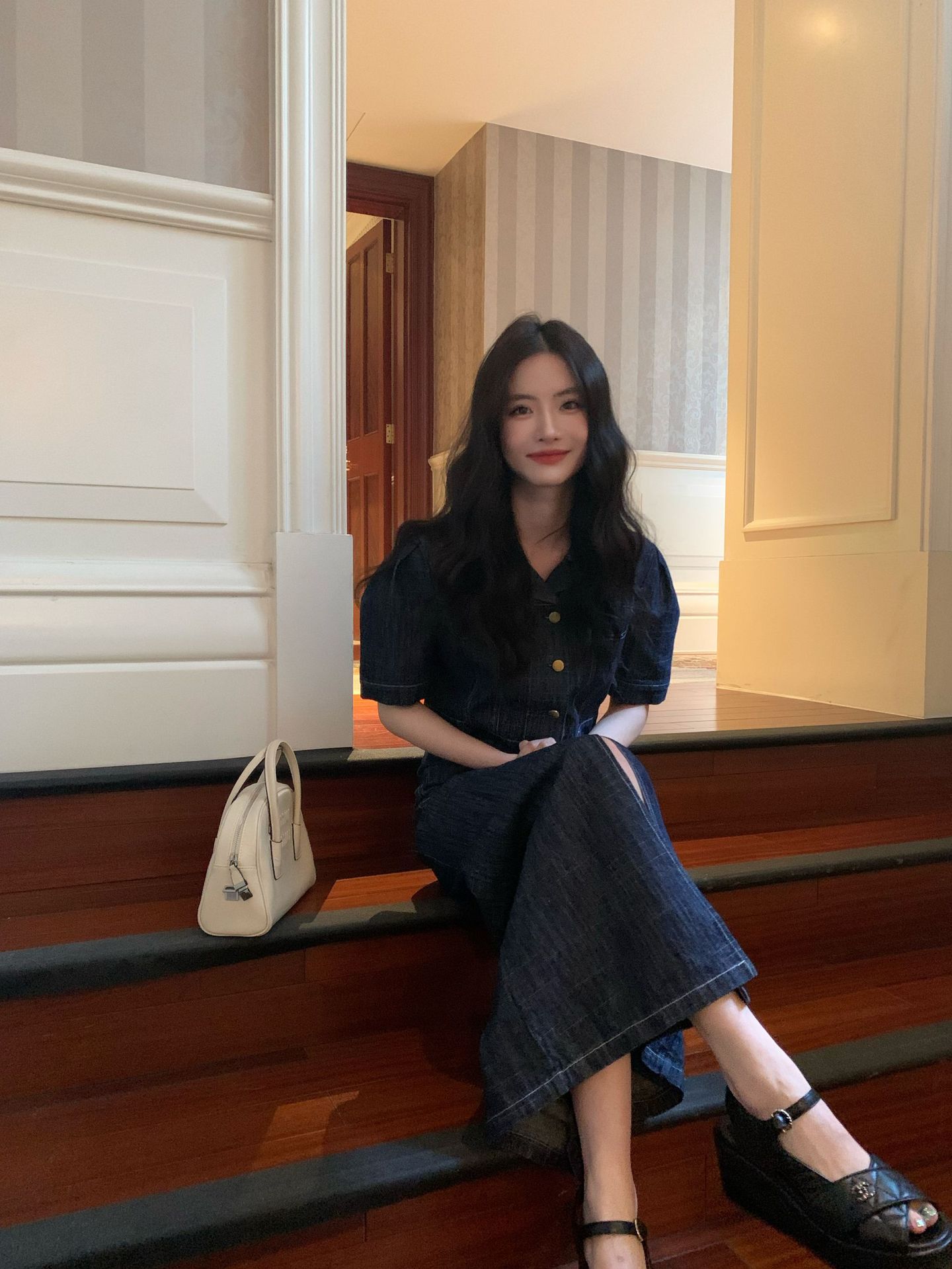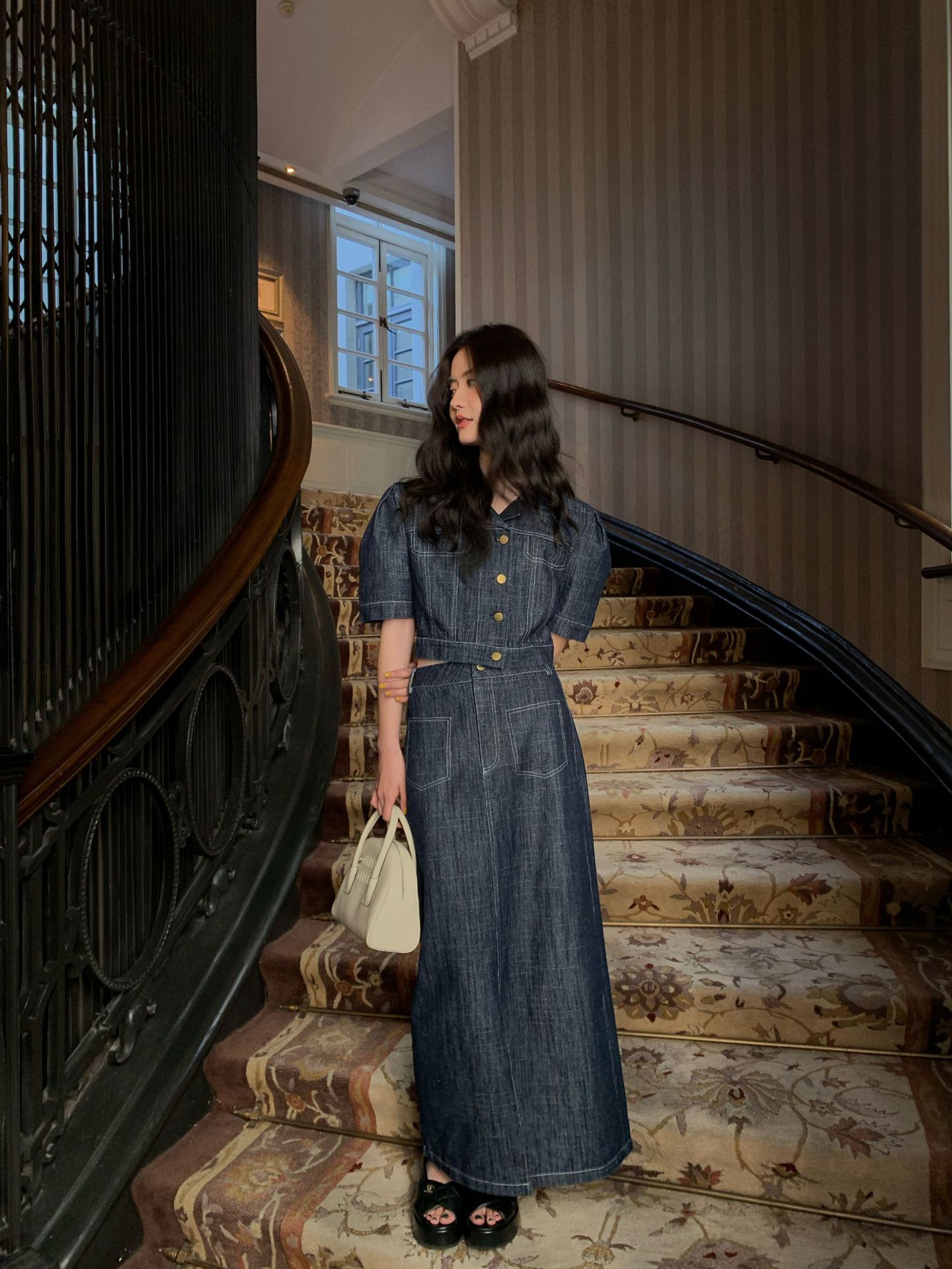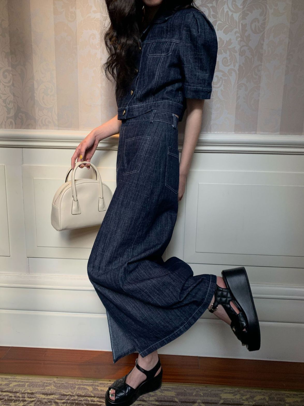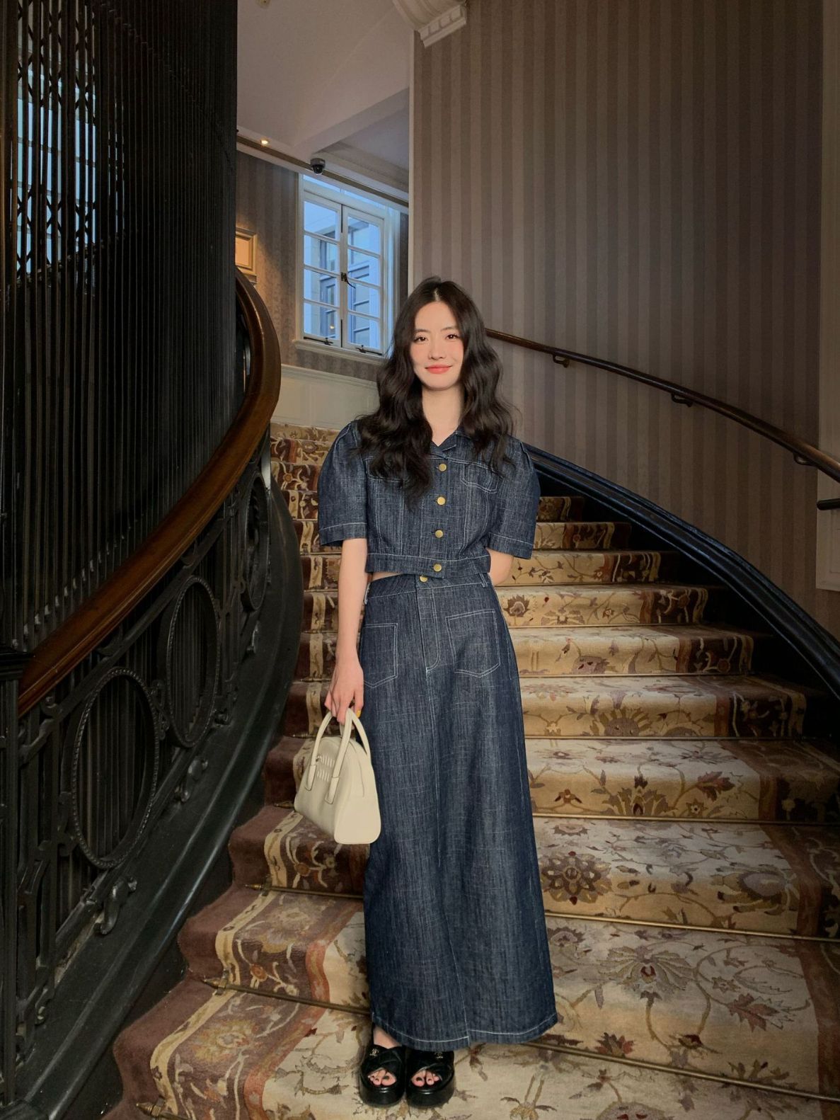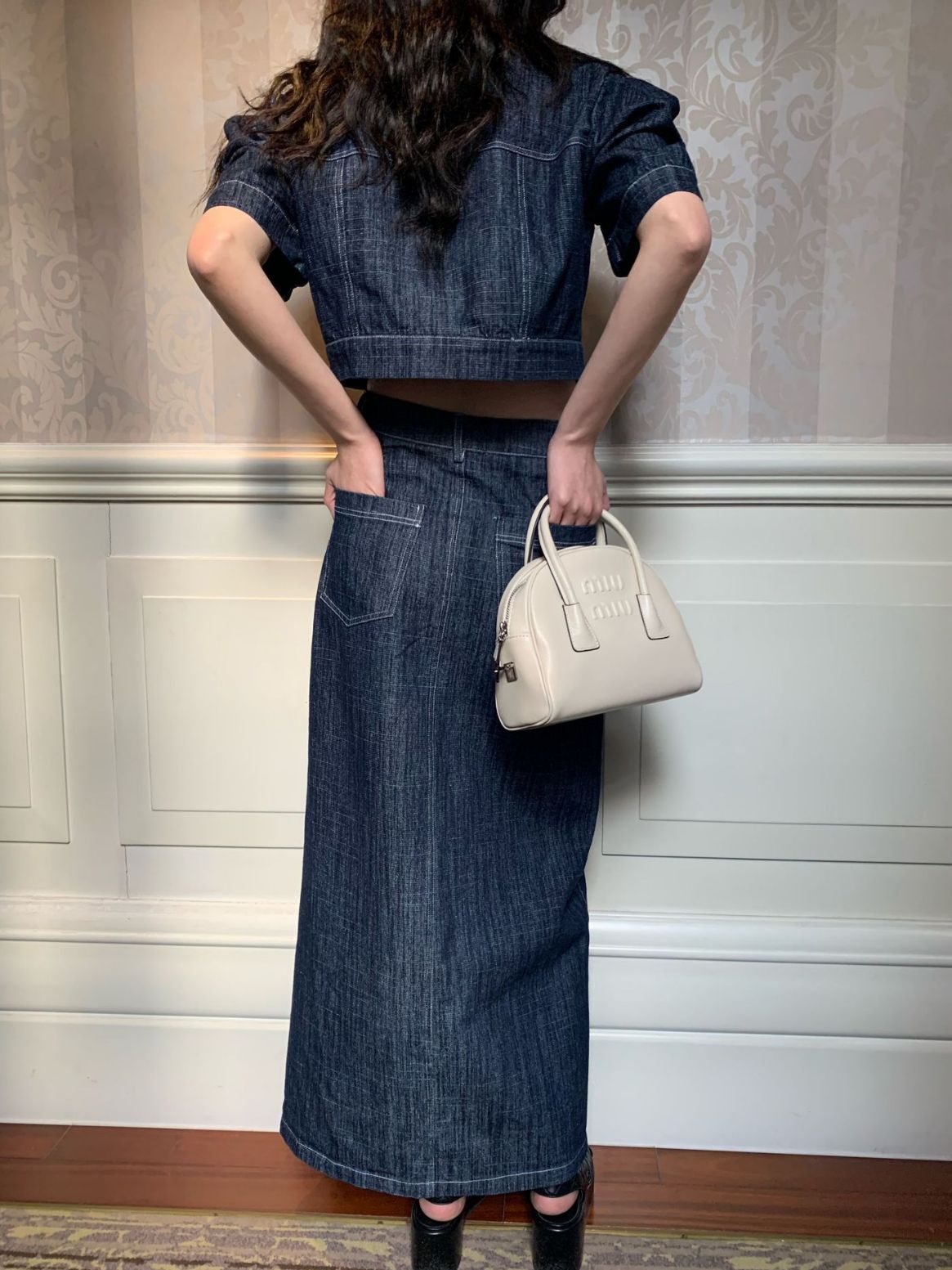 诠释美 NEW OPEN夏季港风牛仔裙套装女款半裙衬衫两件套81269