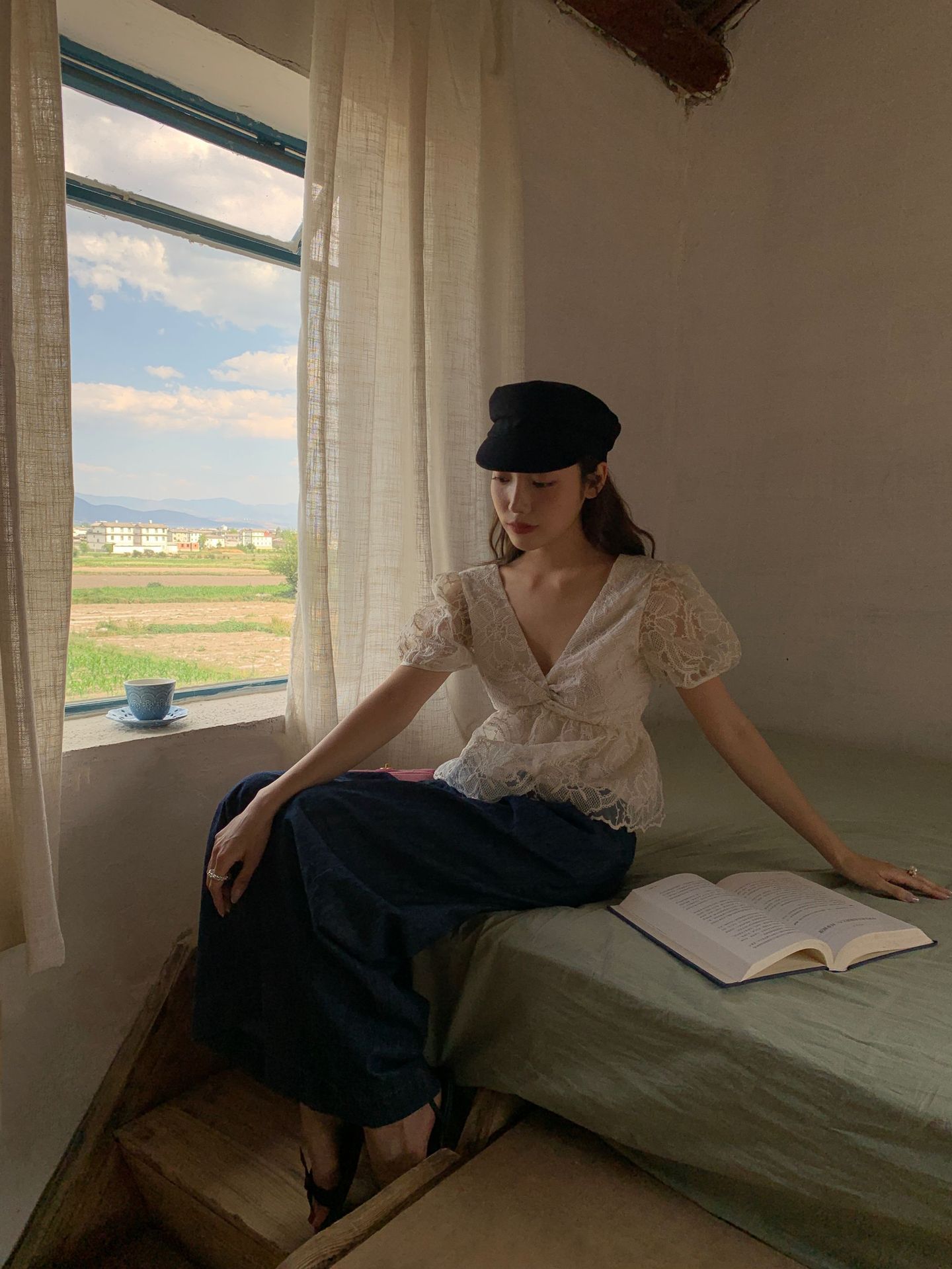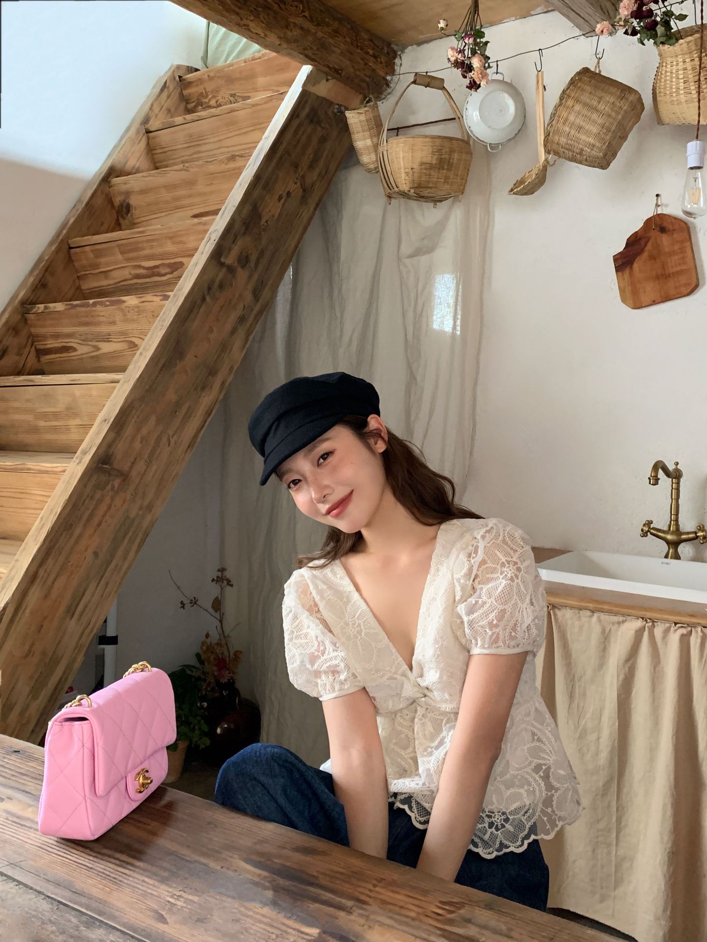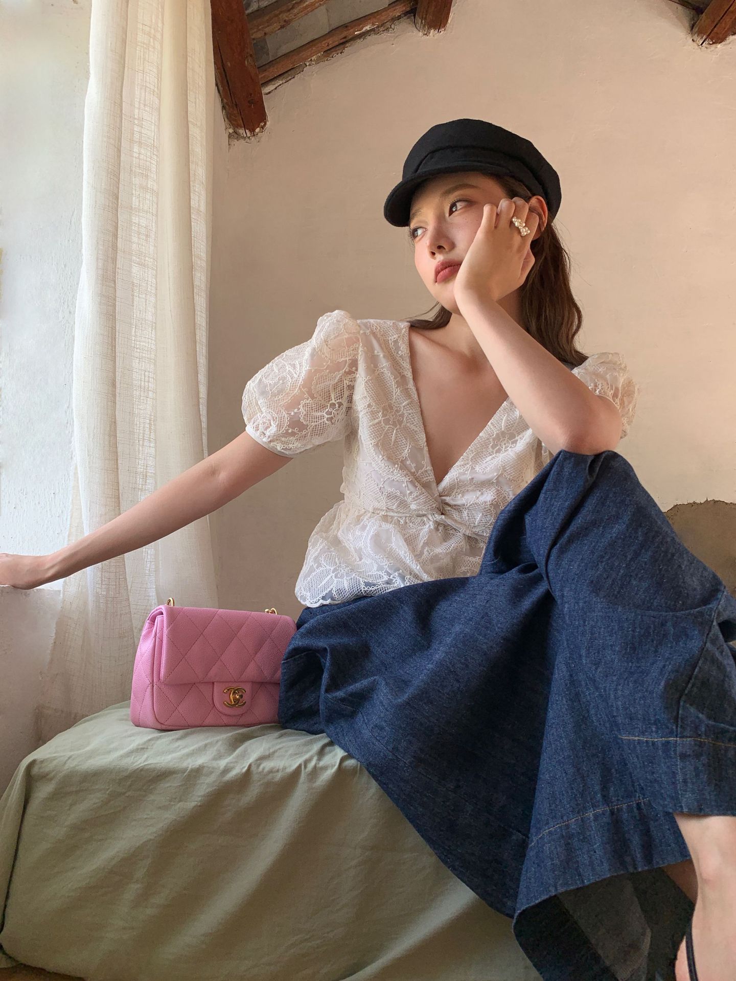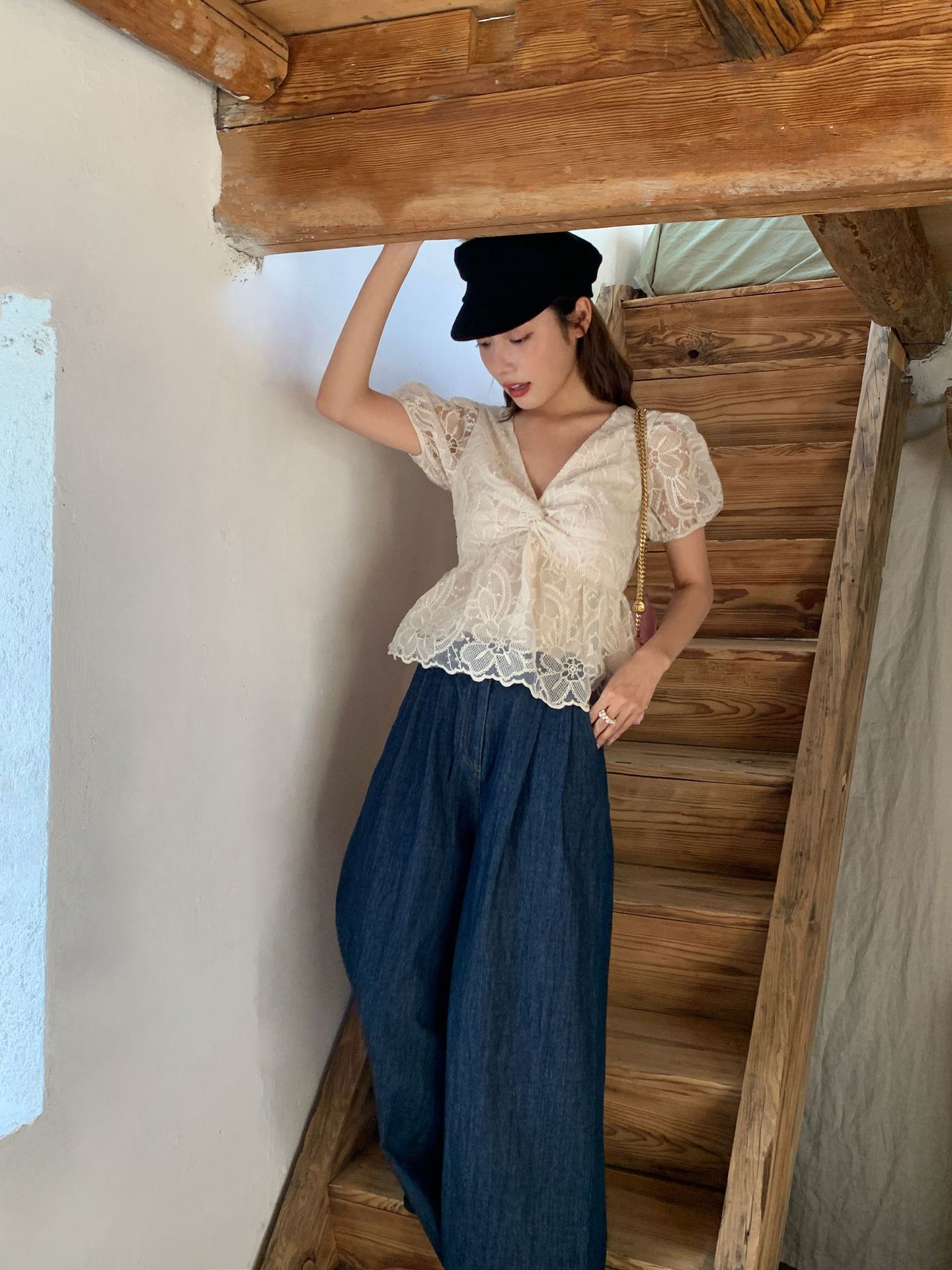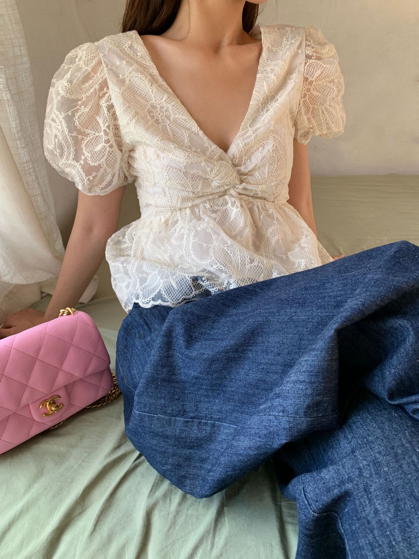 诠释美 NEW OPEN温柔韩风蕾丝小衫女夏法式洋气时尚上衣82693