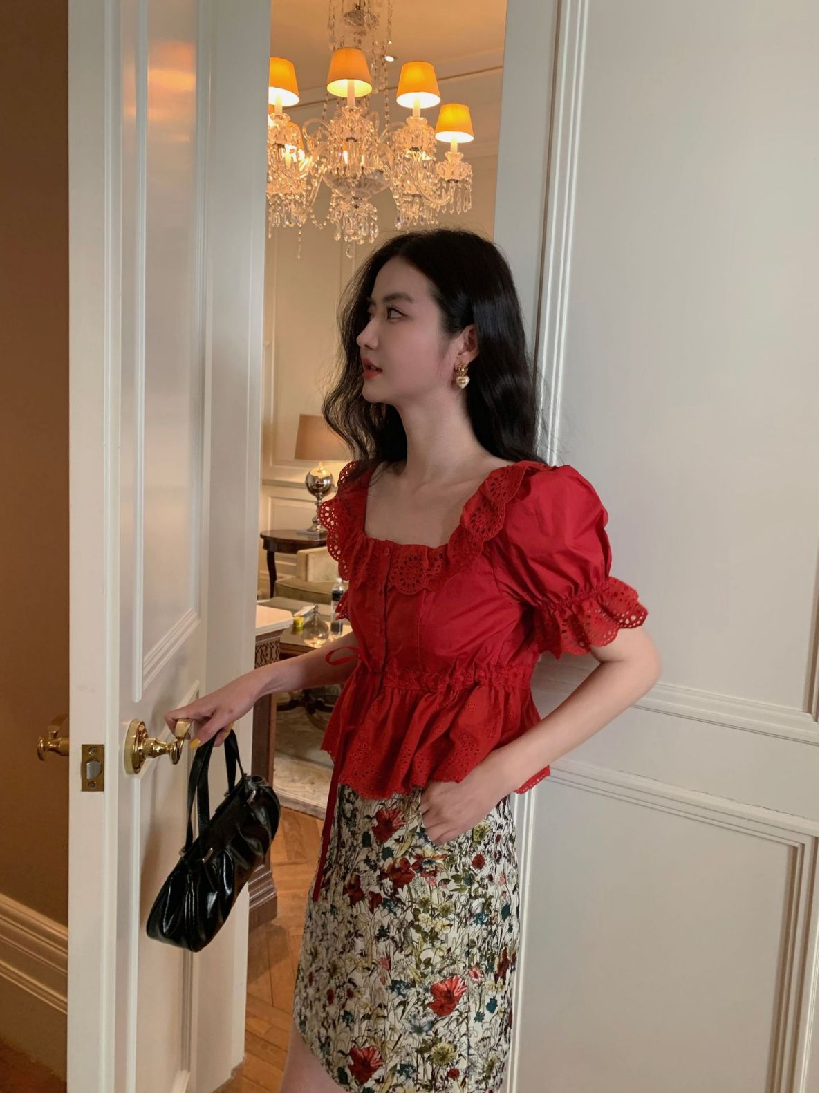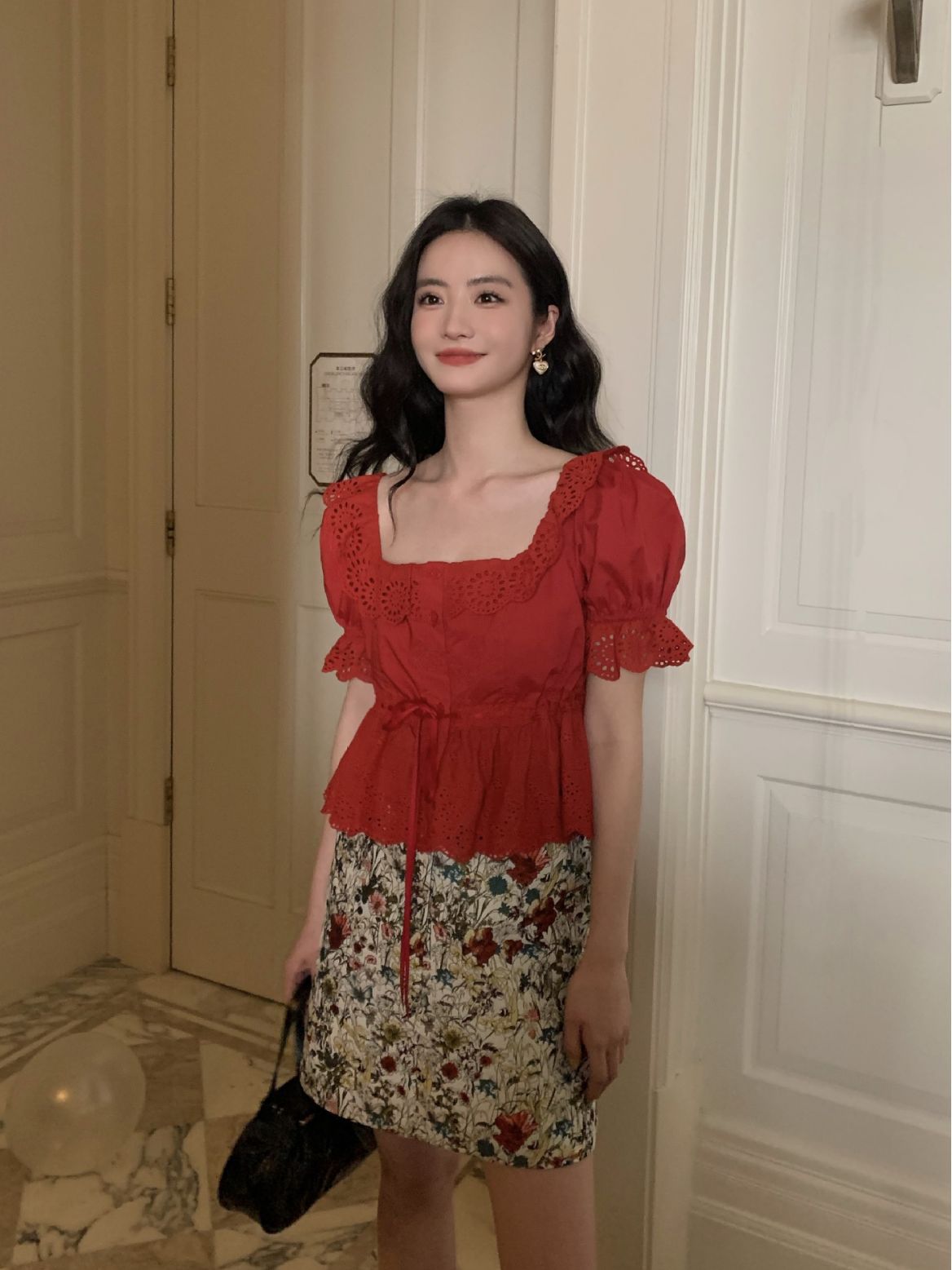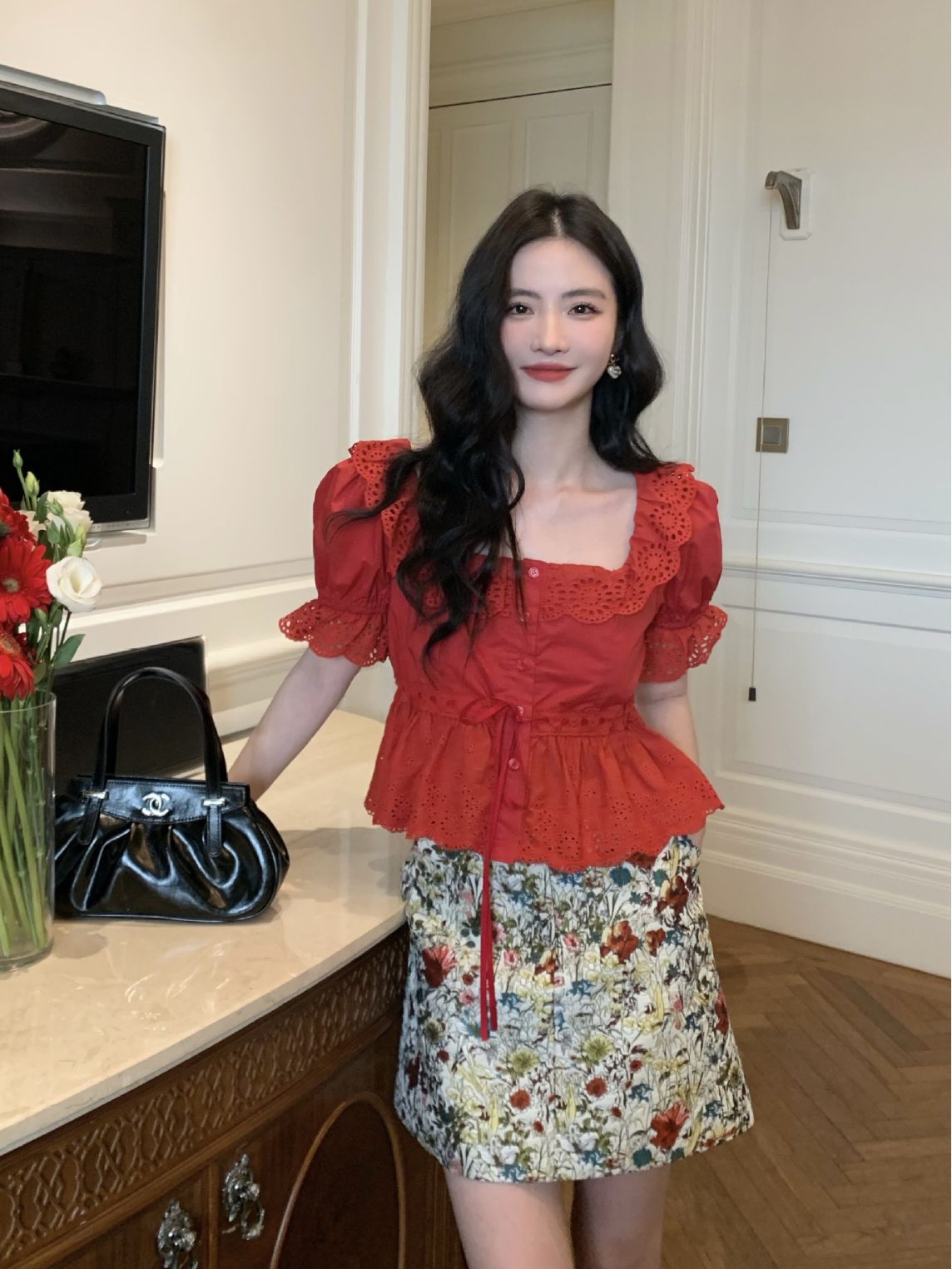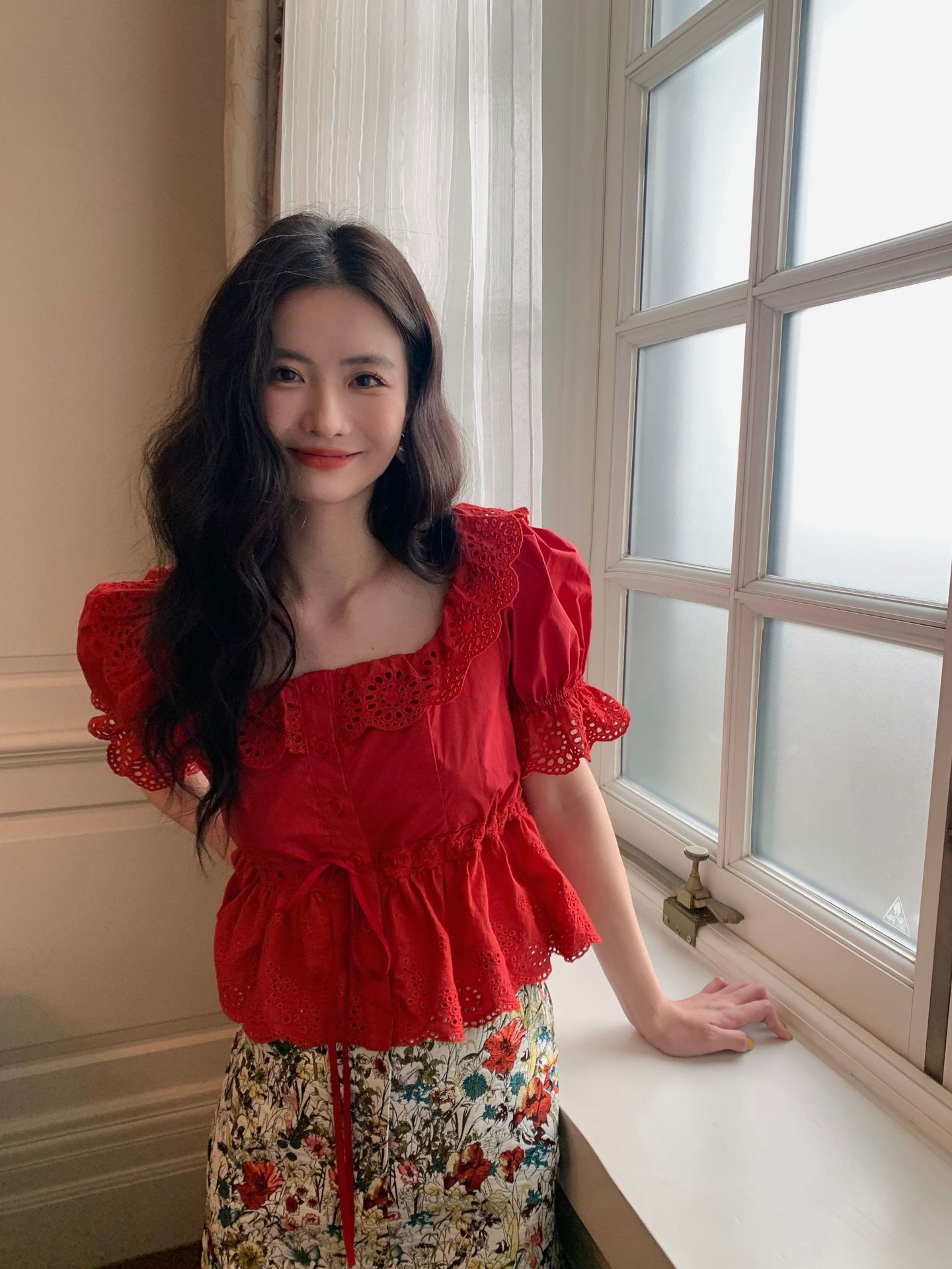诠释美 NEW OPEN夏法式蕾丝花边系带上衣女气质显白显瘦81288