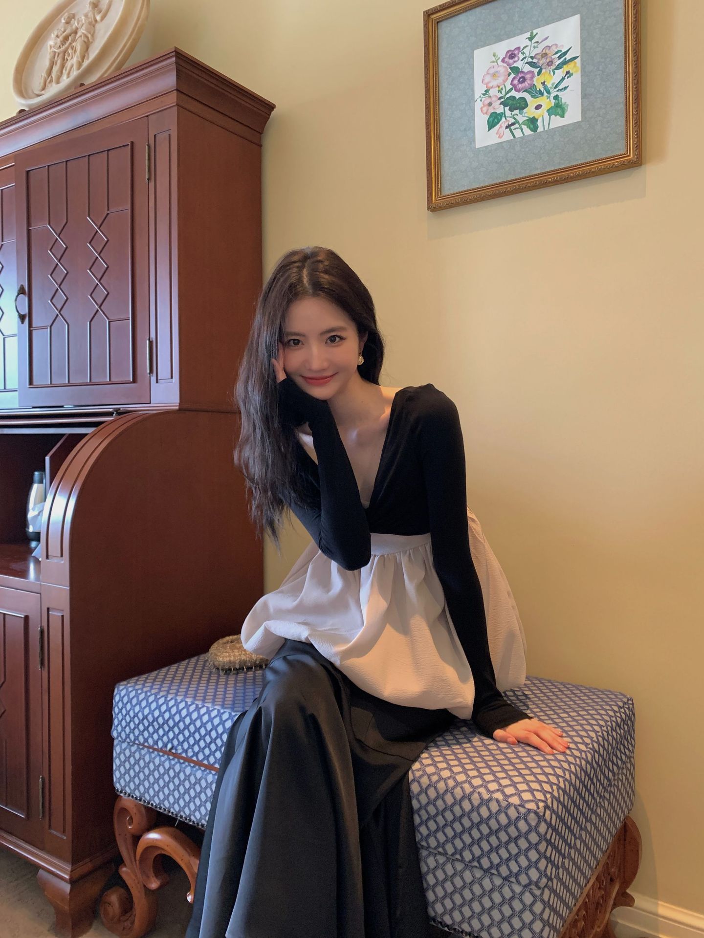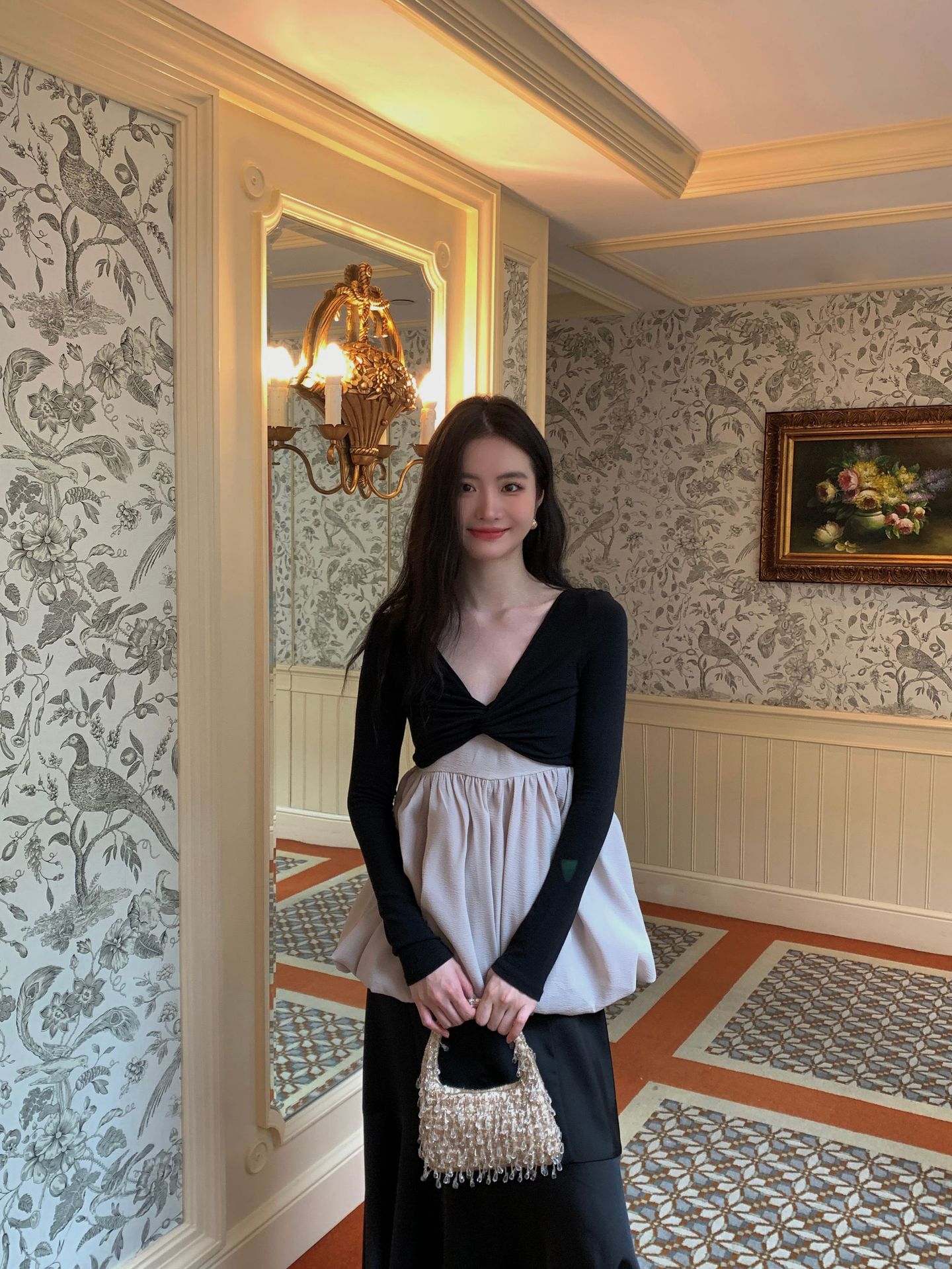 诠释美NEW OPEN甜辣风薄款深V性感小衫女夏外搭长袖针织82317