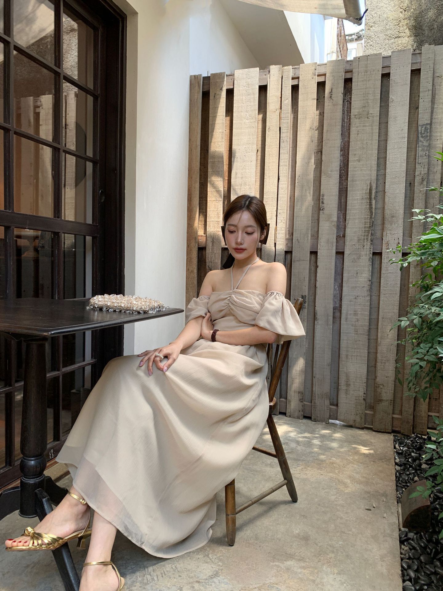 诠释美 NEW OPEN夏法式温柔挂脖连衣裙女名媛气质中长裙82686