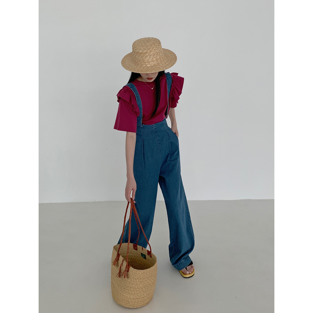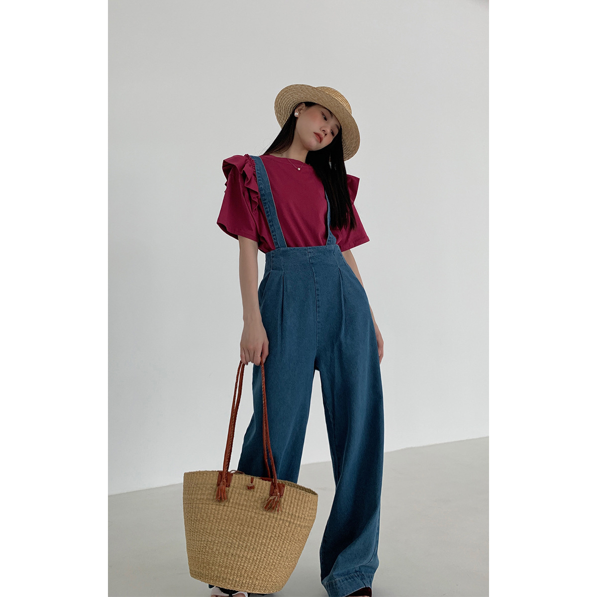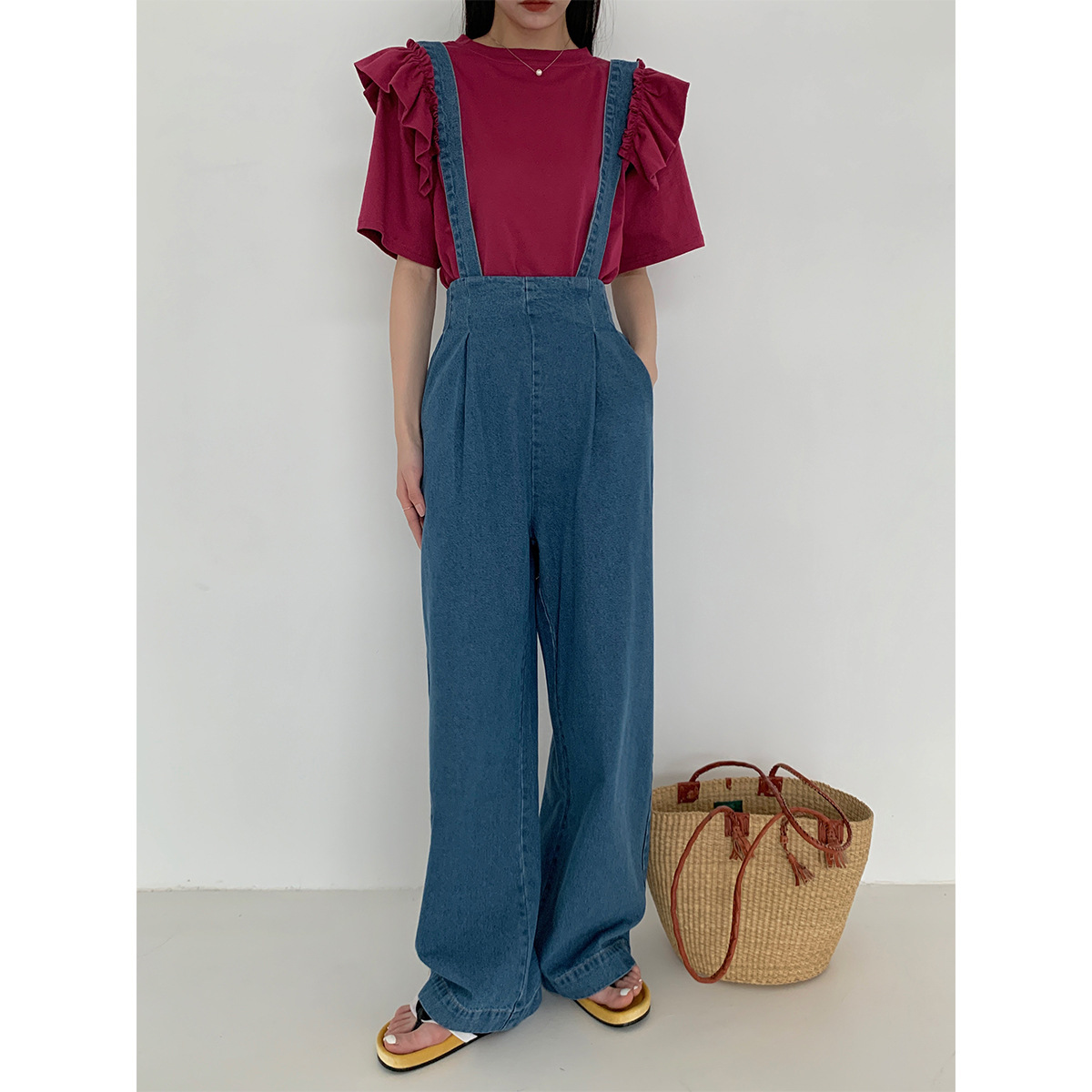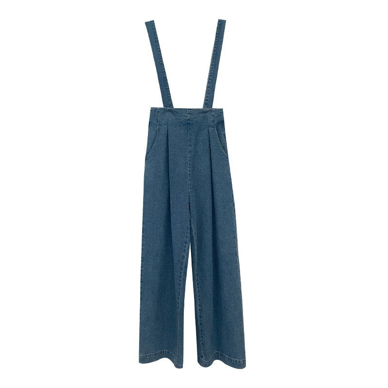 诠释美 NEW OPEN夏季韩版百搭高腰直筒拖地背带牛仔裤女22089