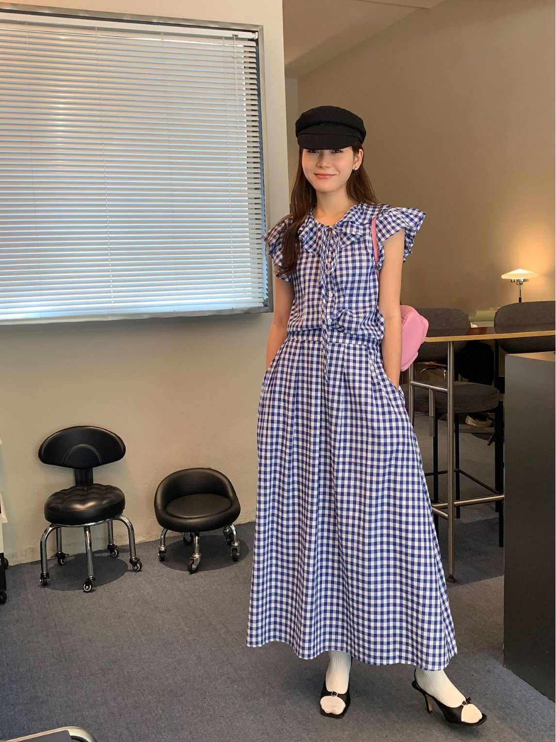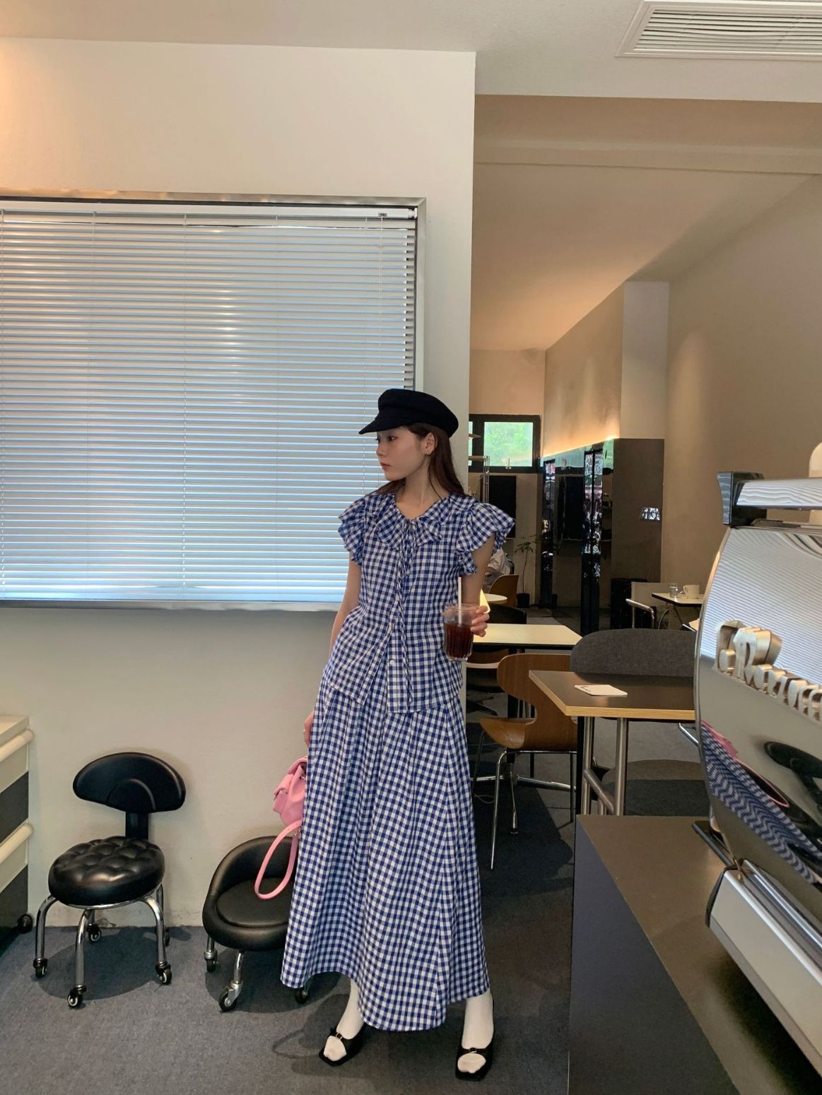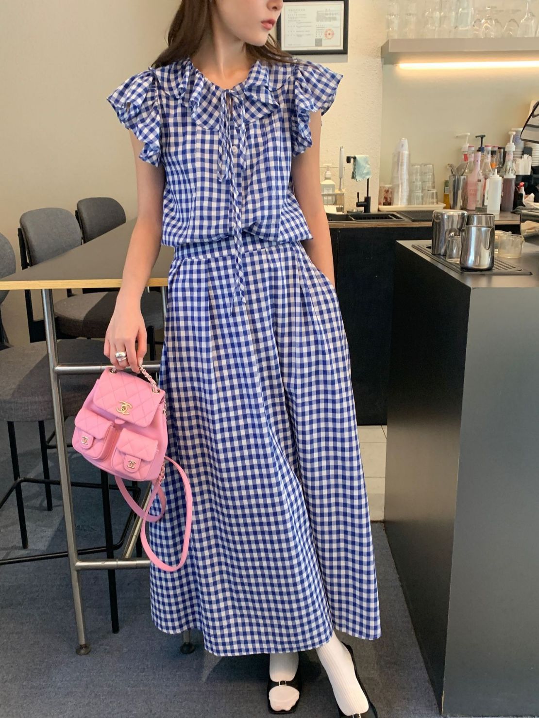 诠释美 NEW OPEN气质通勤高腰格子半身裙女夏长款a字裙82709