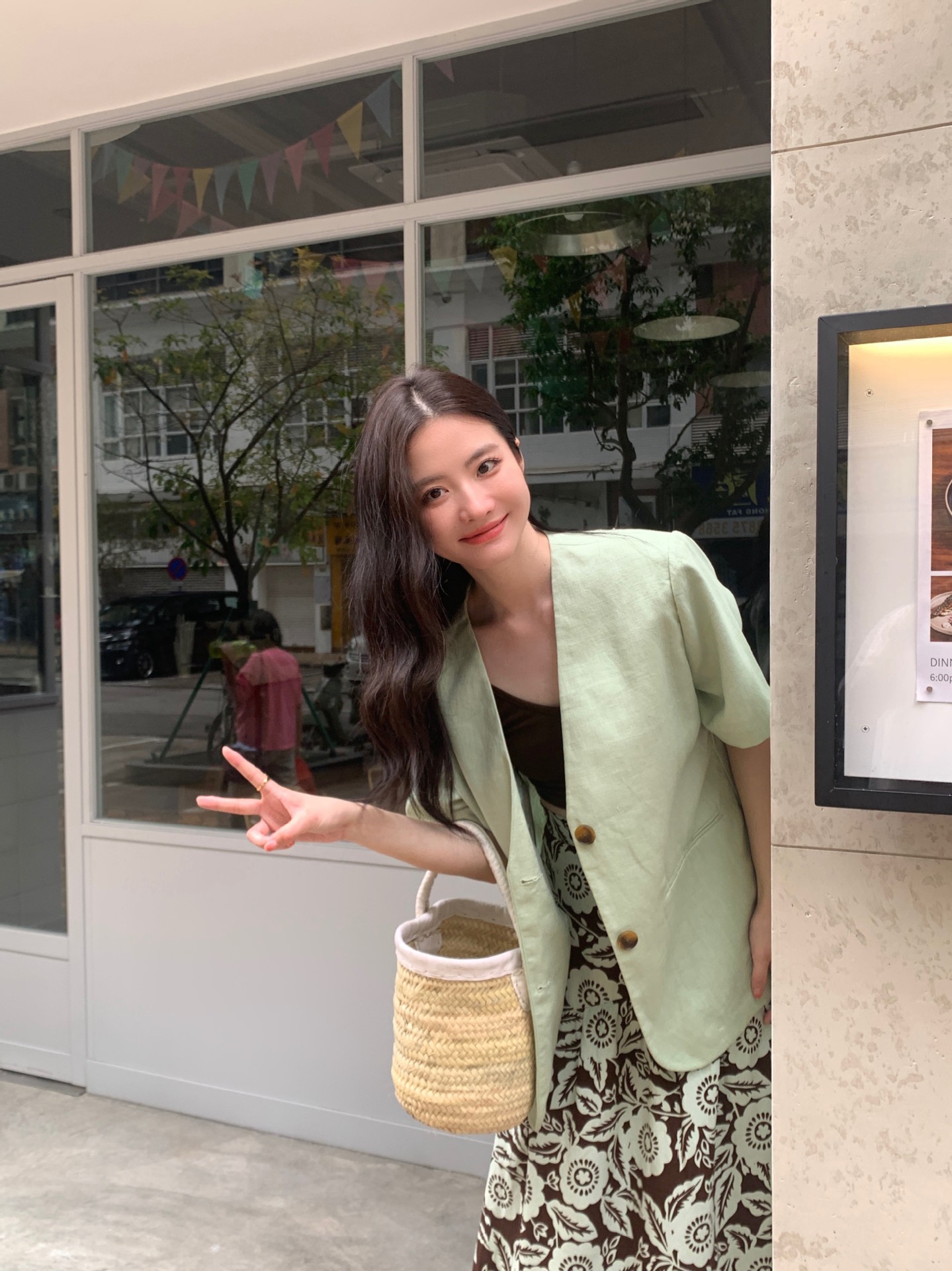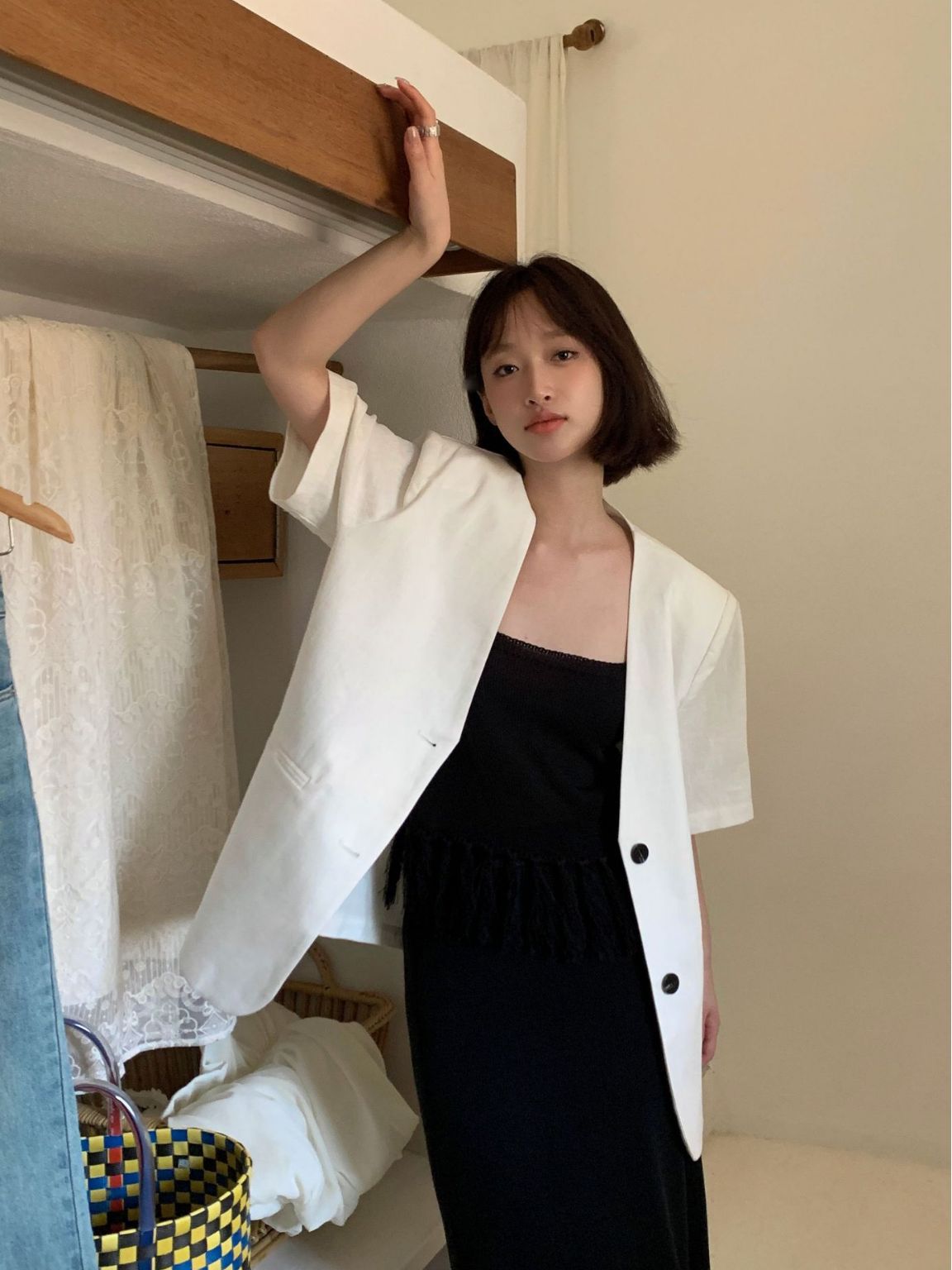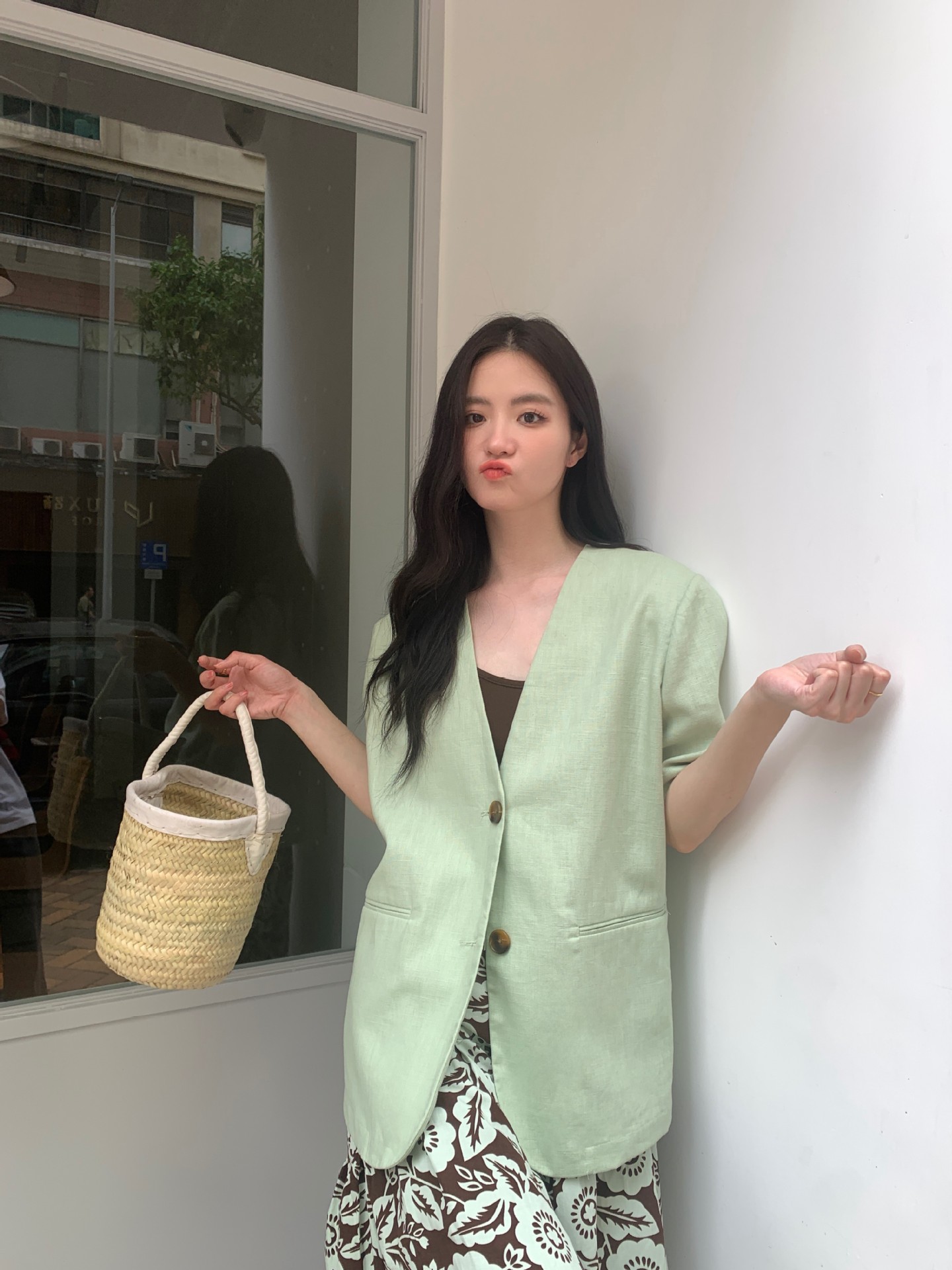 诠释美NEW OPEN西装外套女士夏季时尚v领气质百搭上衣82250