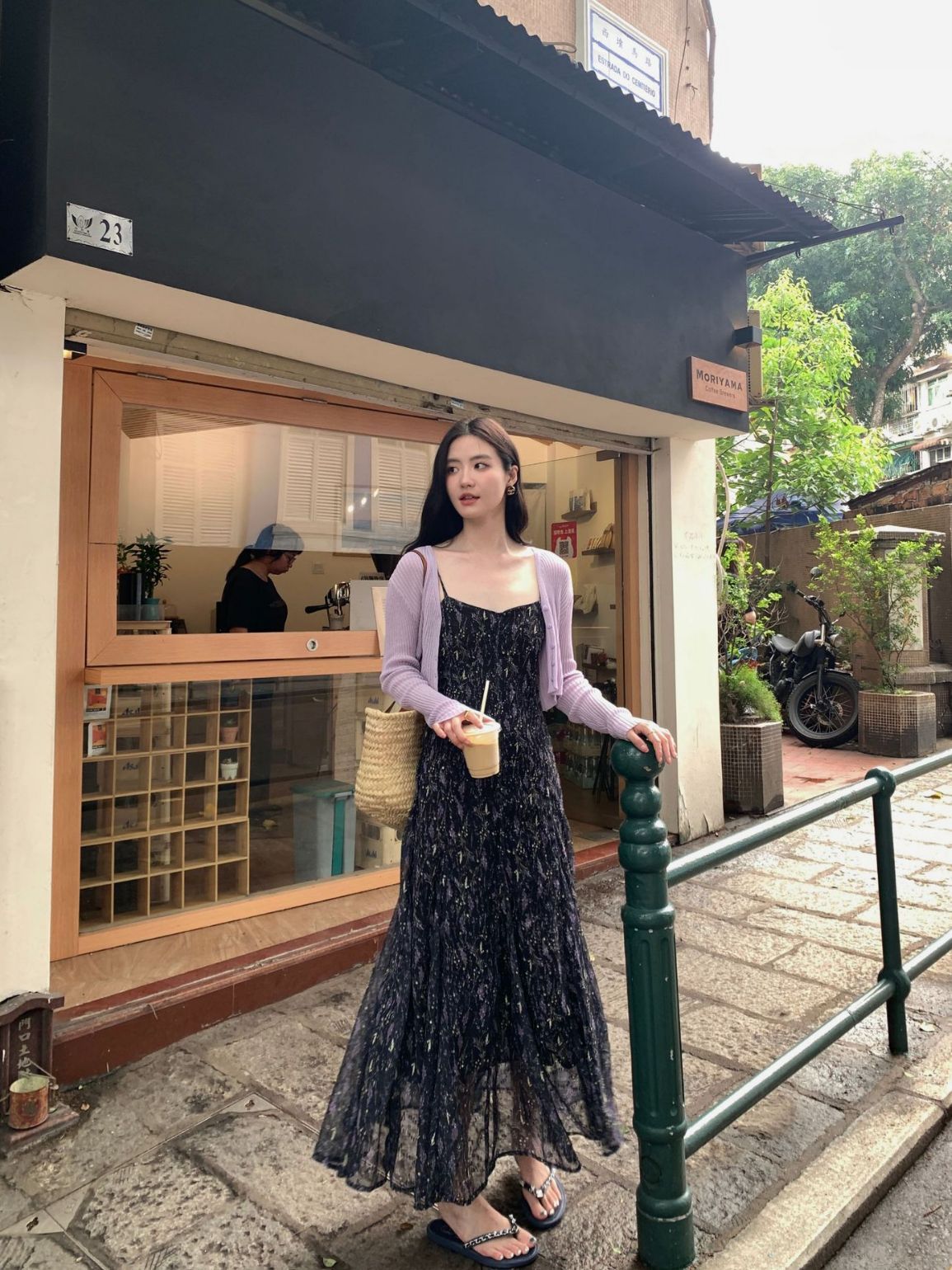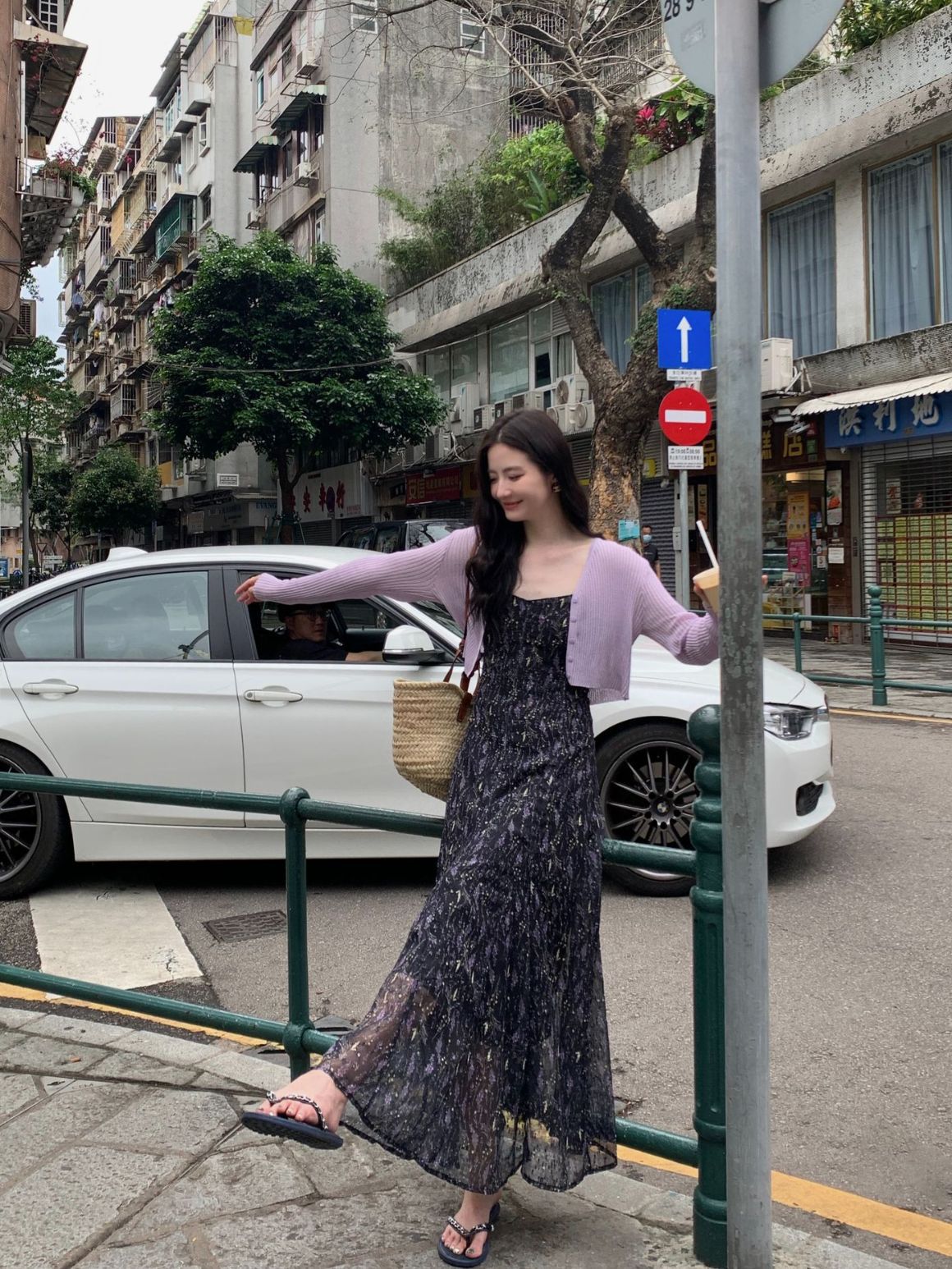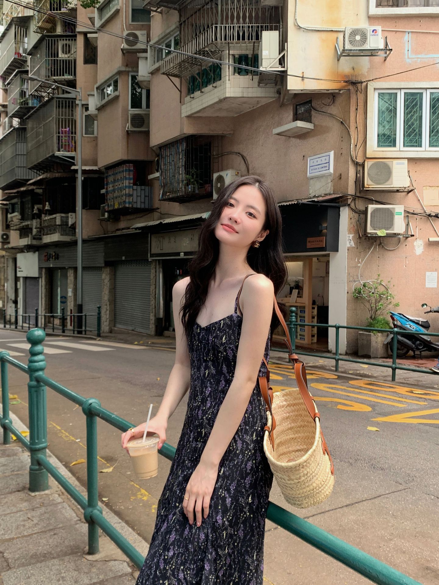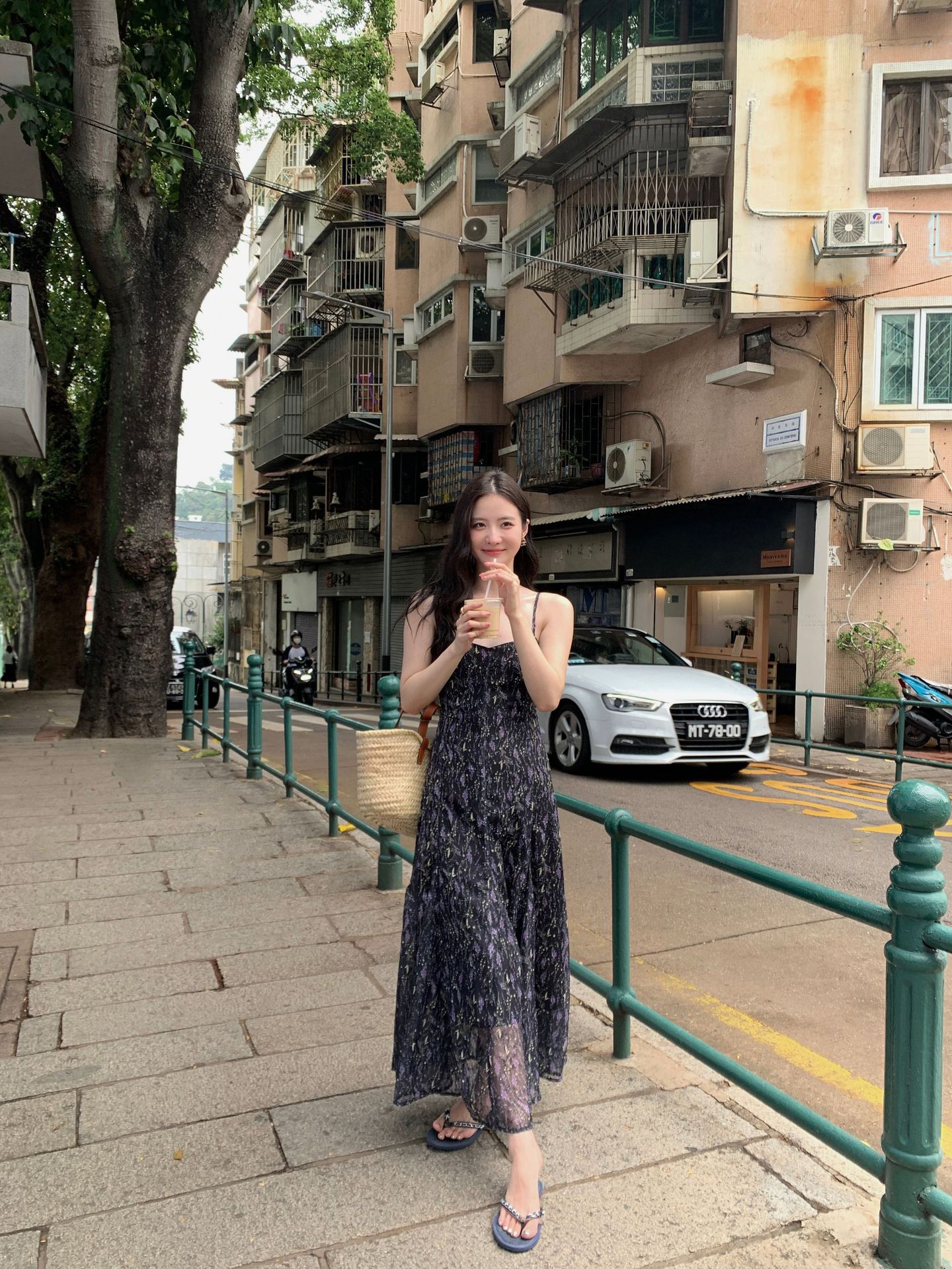 诠释美NEW OPEN碎花连衣裙女夏法式纱网收腰气质吊带裙82360