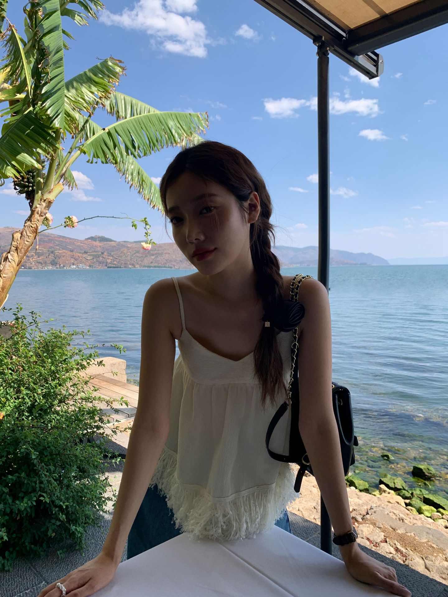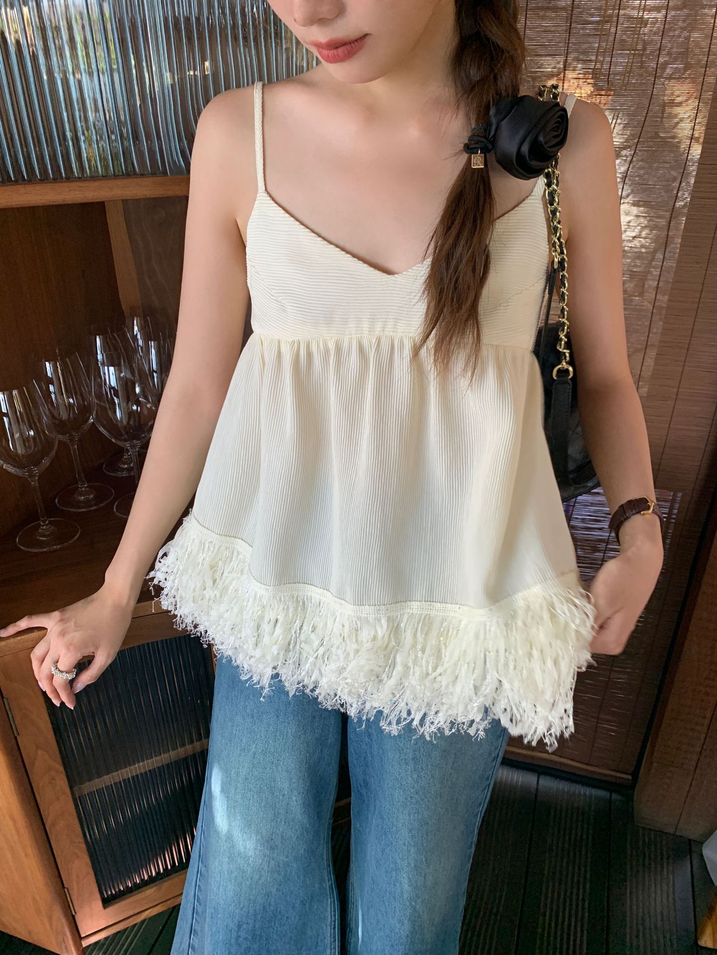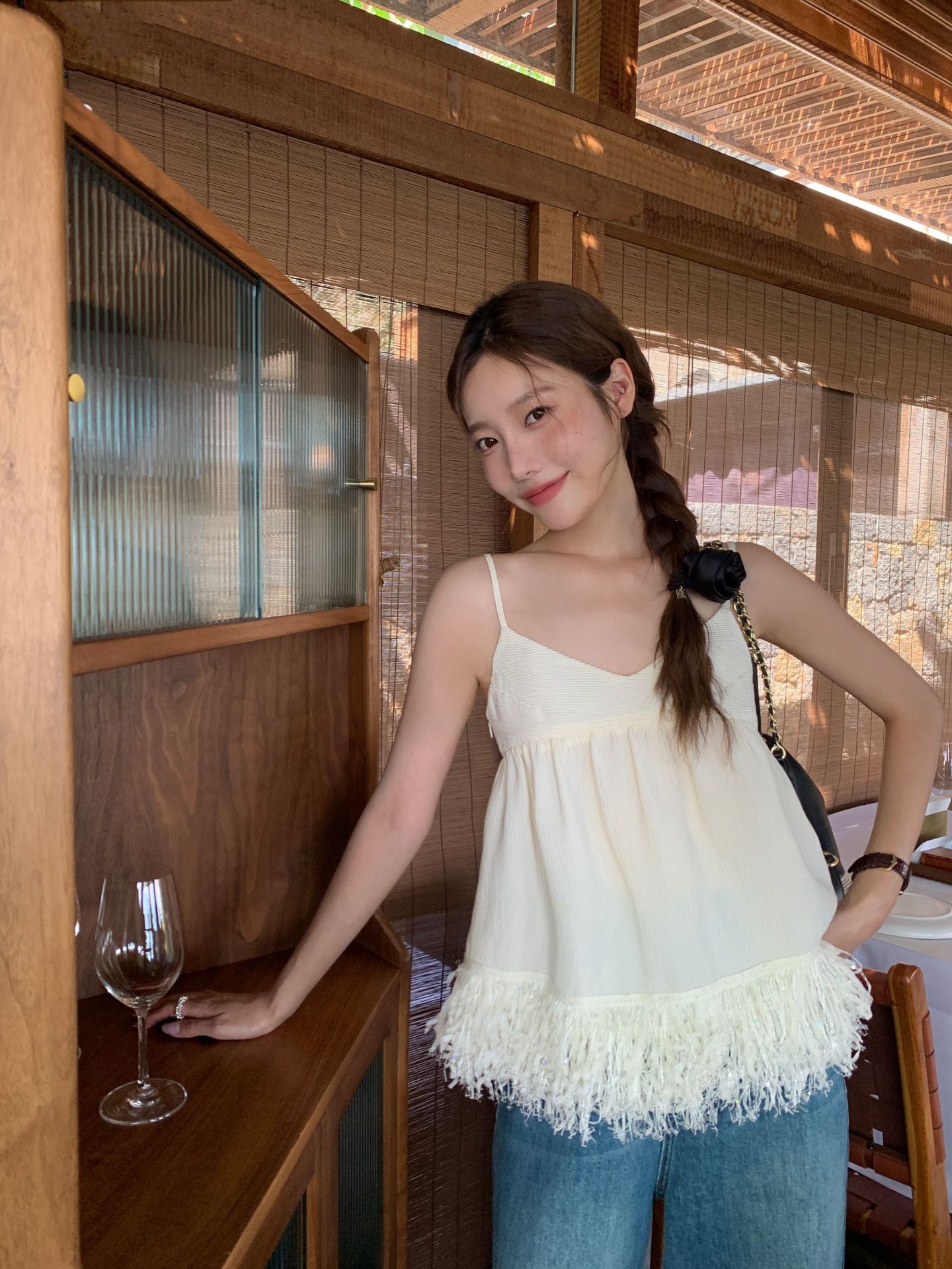诠释美 NEW OPEN法式名媛性感吊带衫女夏款纯欲流苏上衣82529