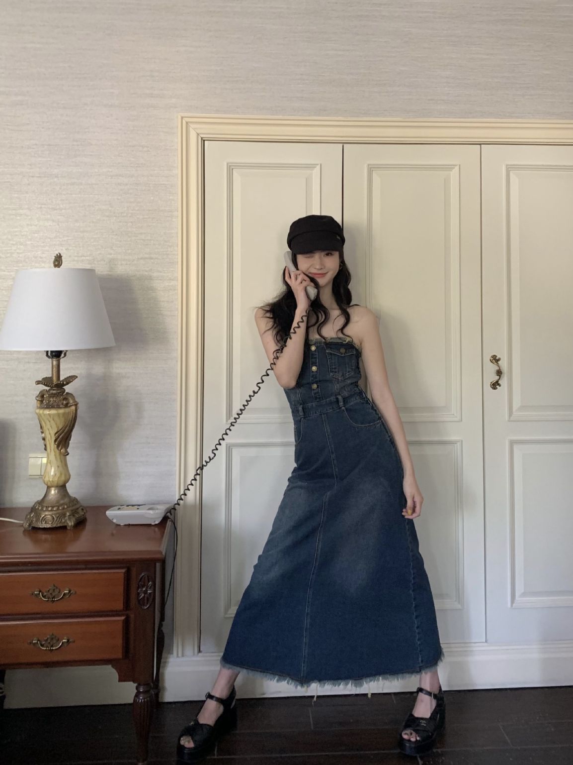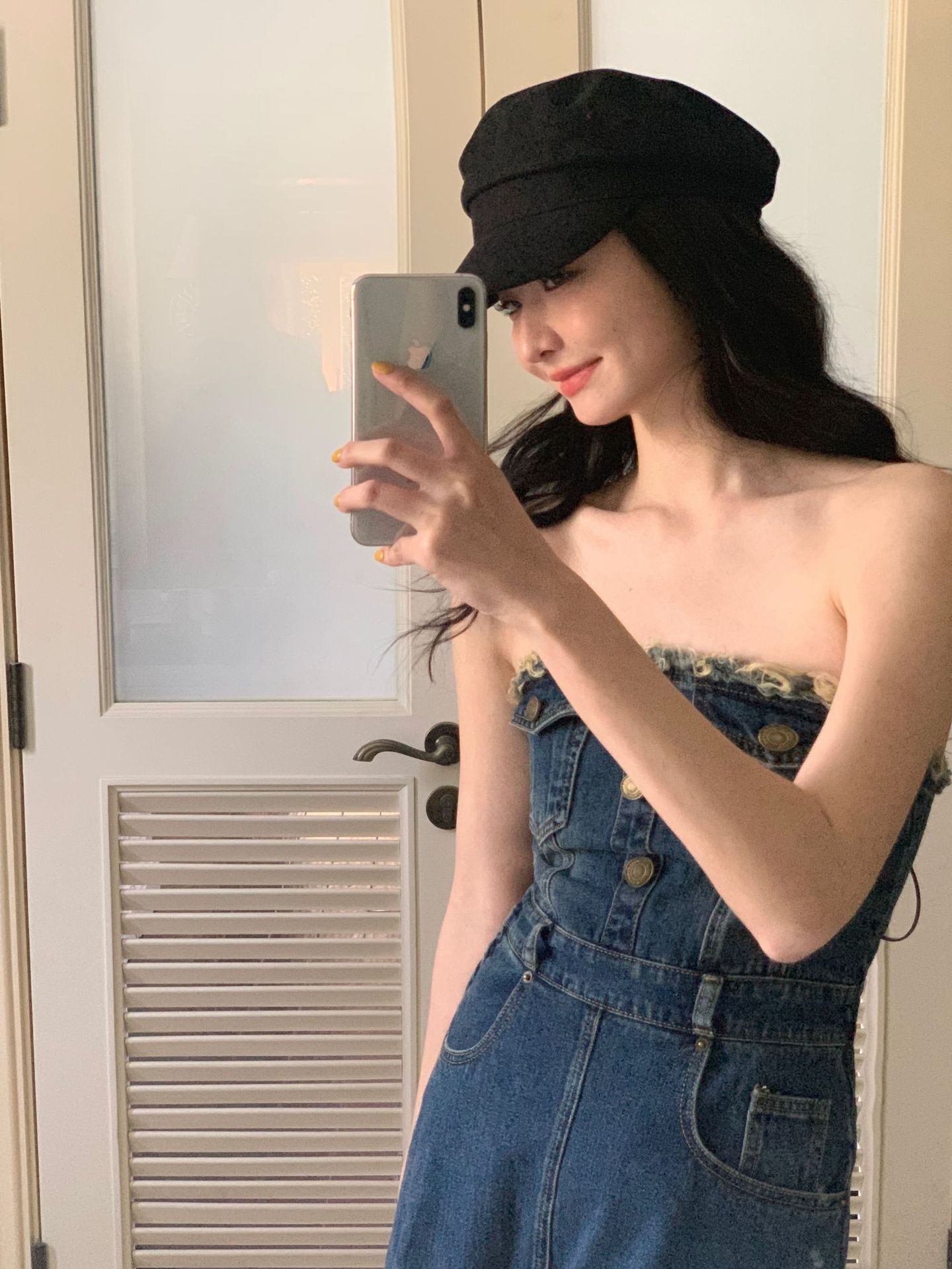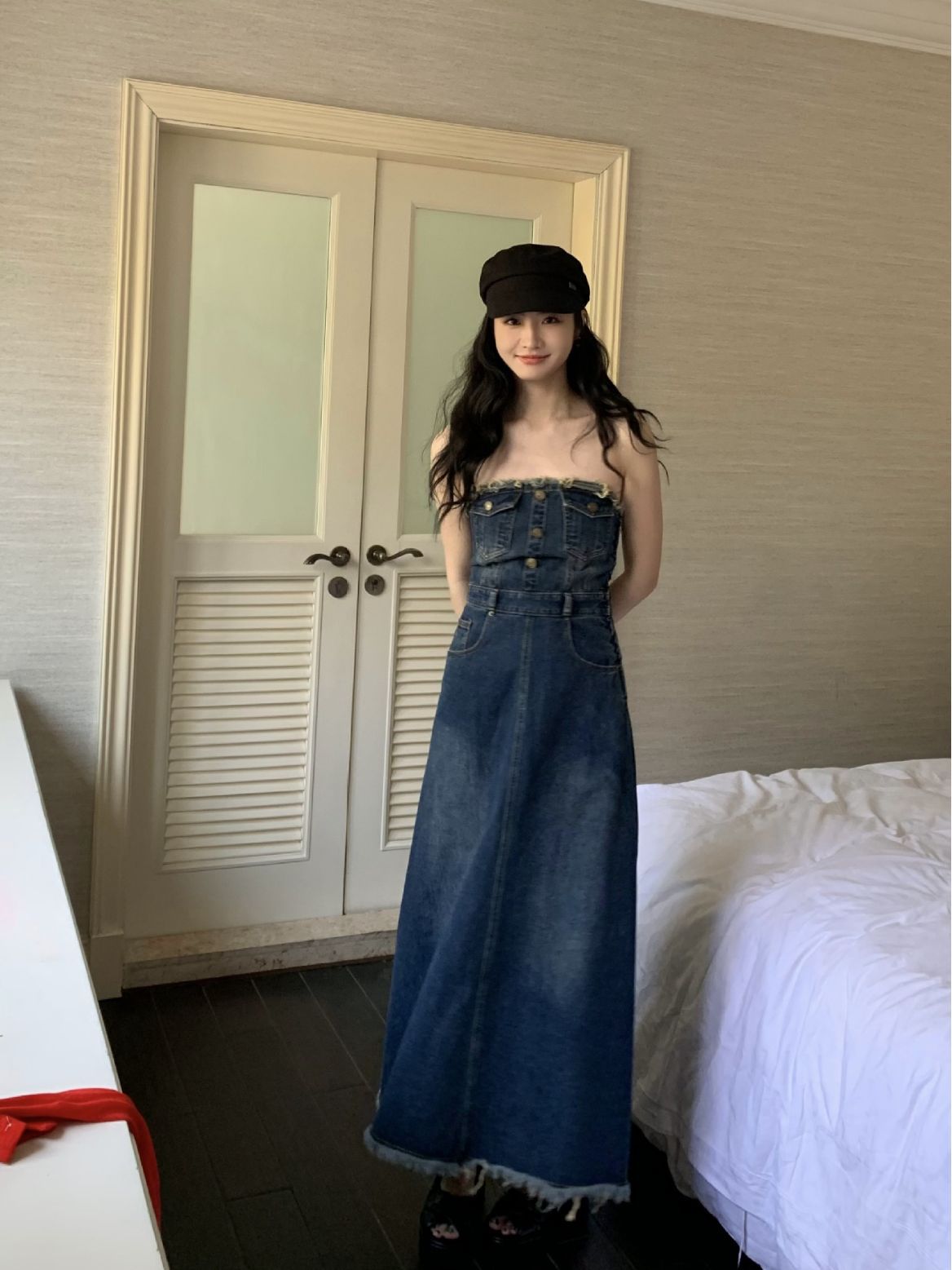诠释美 NEWOPEN 网红爆款法式抹胸连衣裙女收腰气质牛仔裙子81012