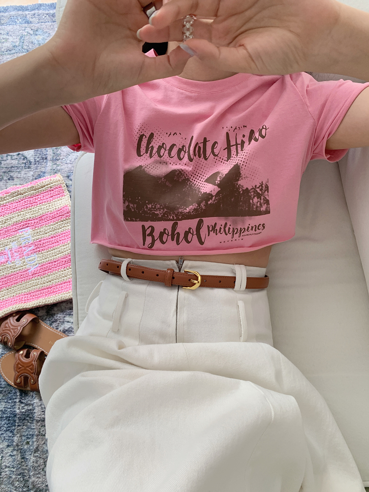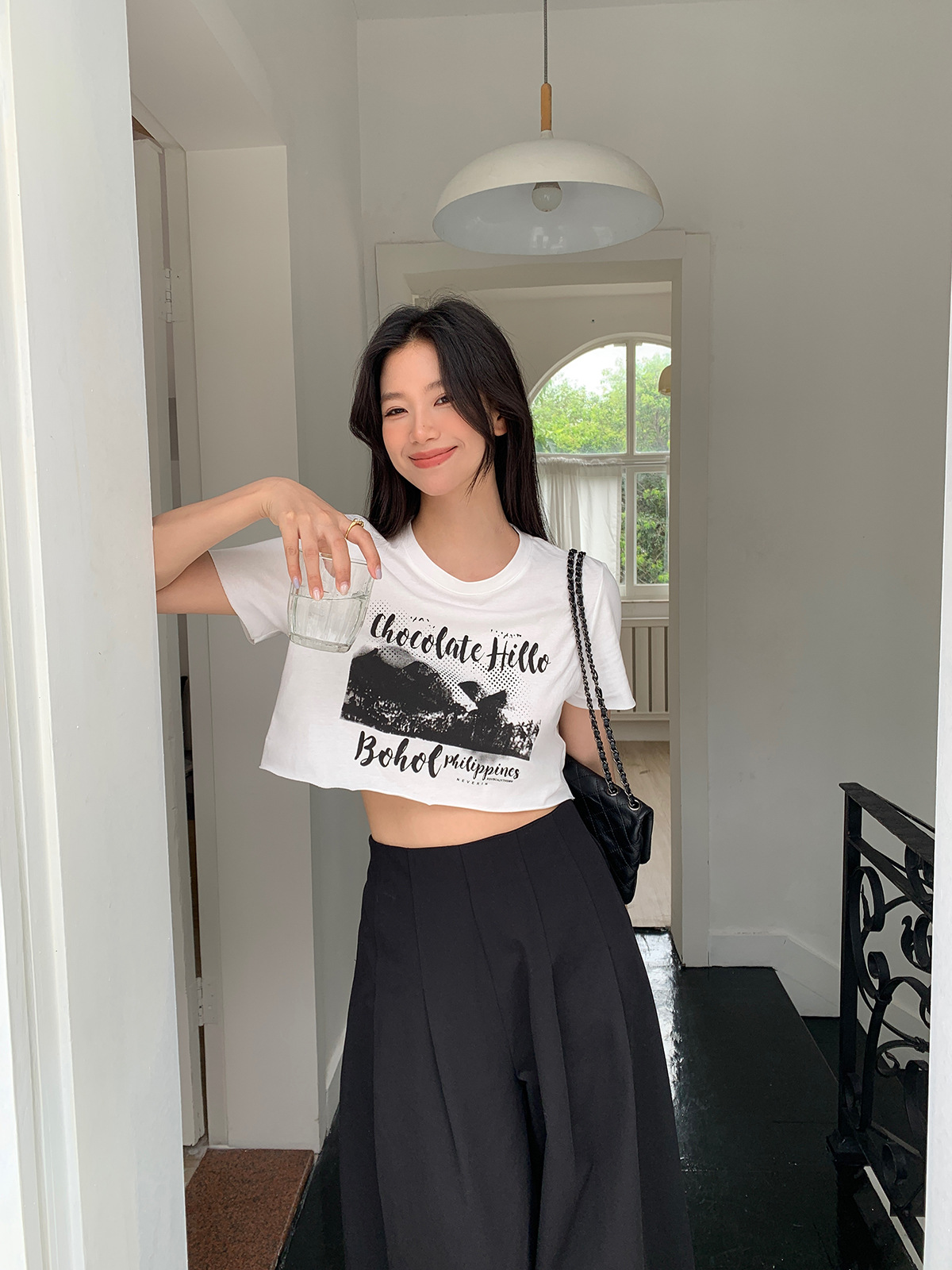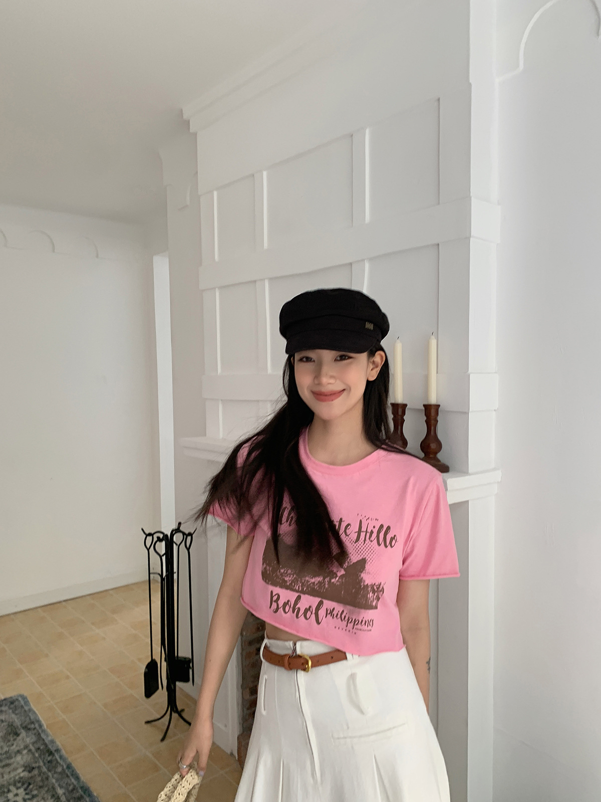 诠释美 NEW OPEN夏短袖t恤女辣妹正肩短款印花白色上衣82526
