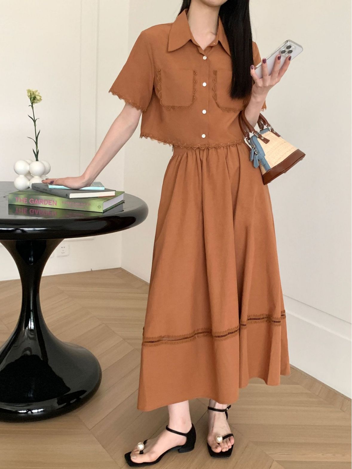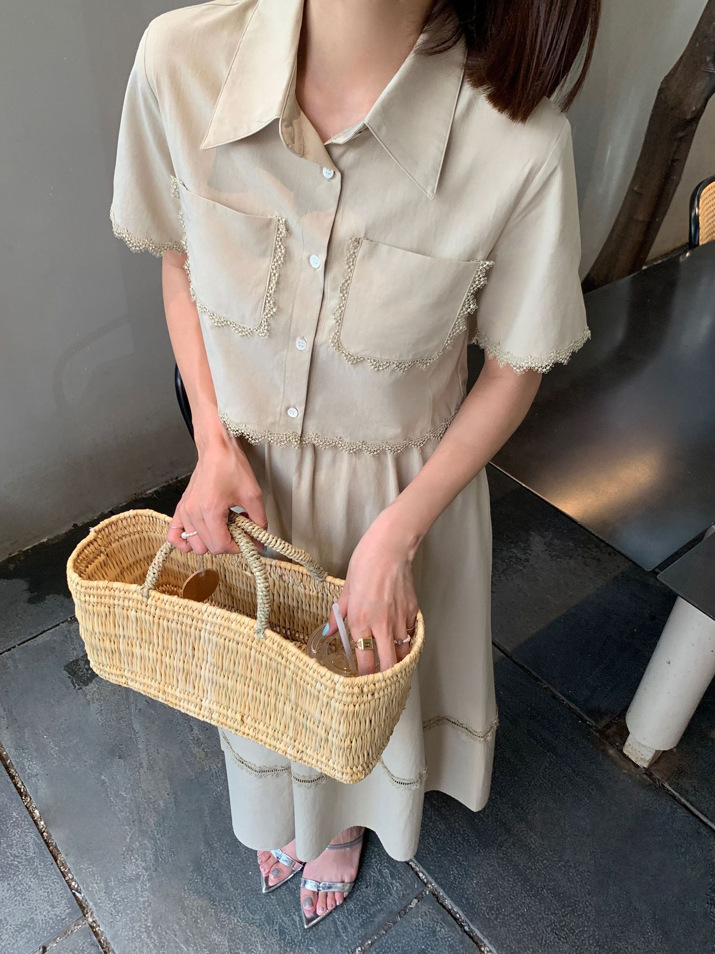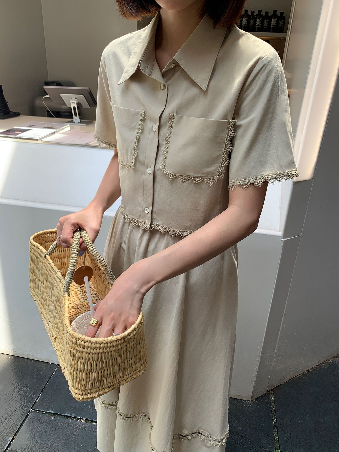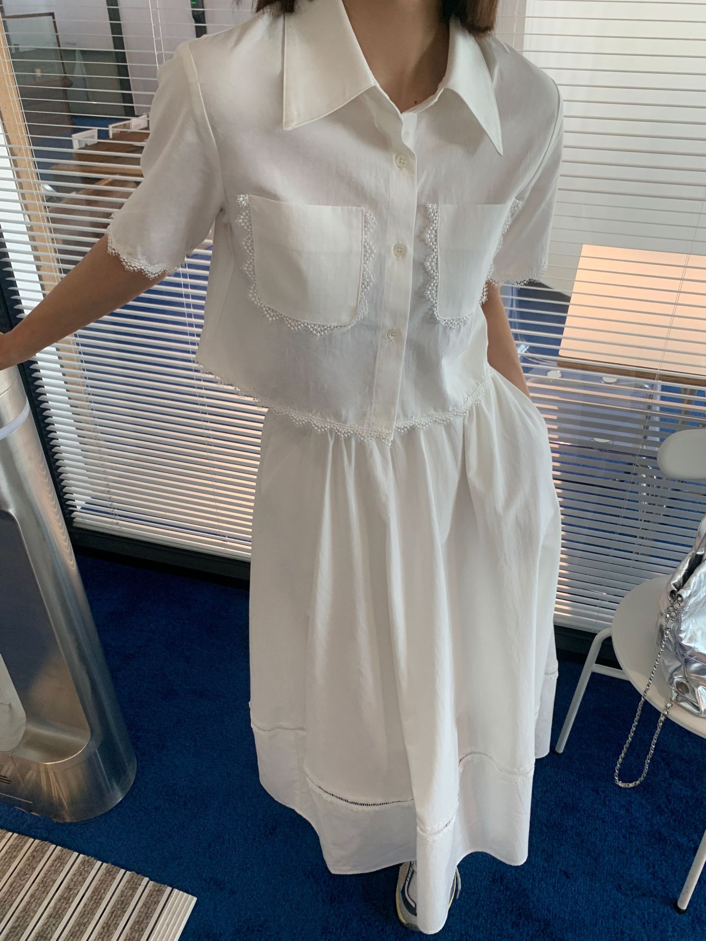 诠释美 NEW OPEN韩版休闲高级感花边短袖衬衫夏短款上衣82731