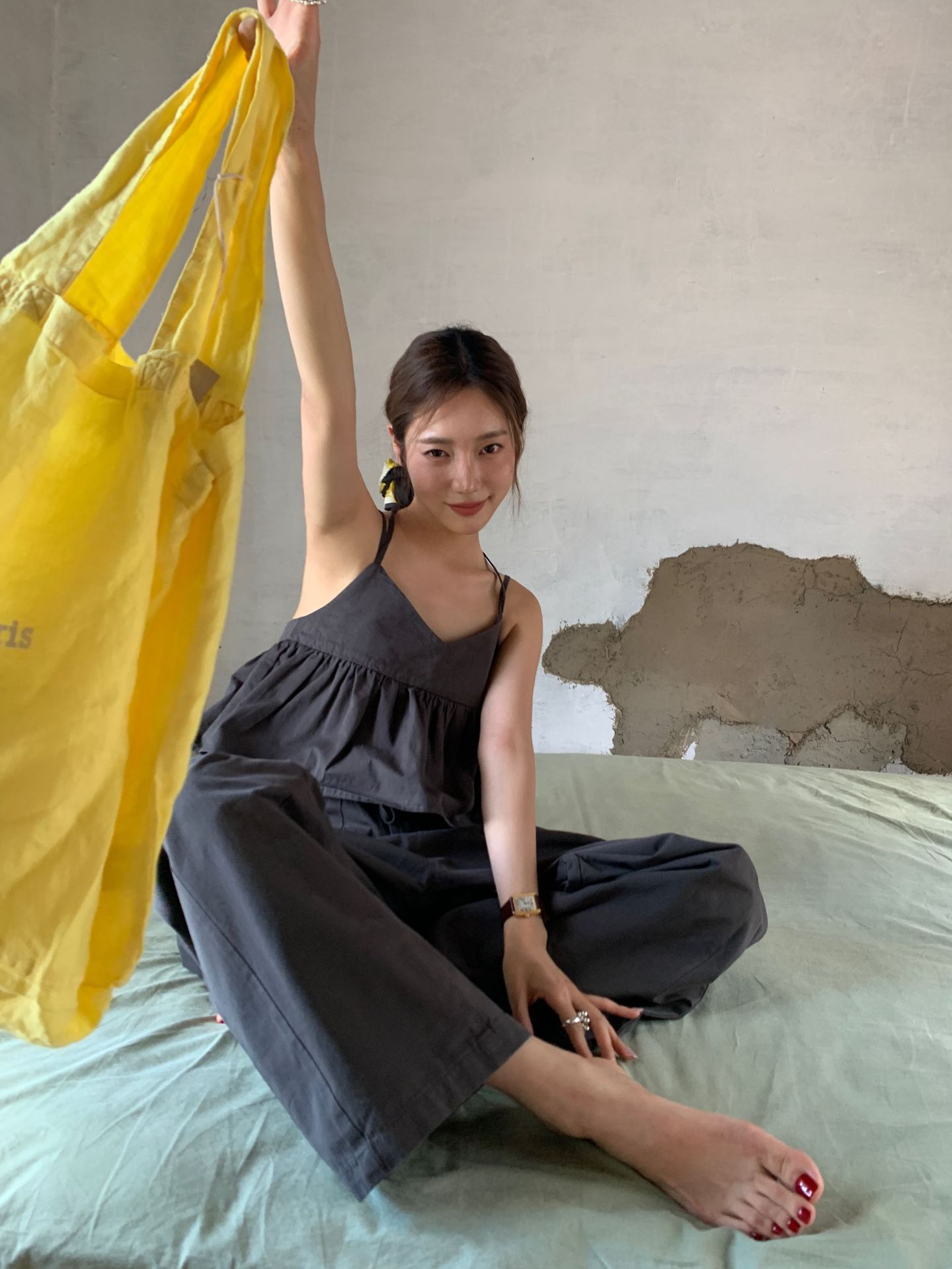 韩系小众设计感高腰松紧腰休闲短裤女褶皱大口袋宽松显瘦显高热裤