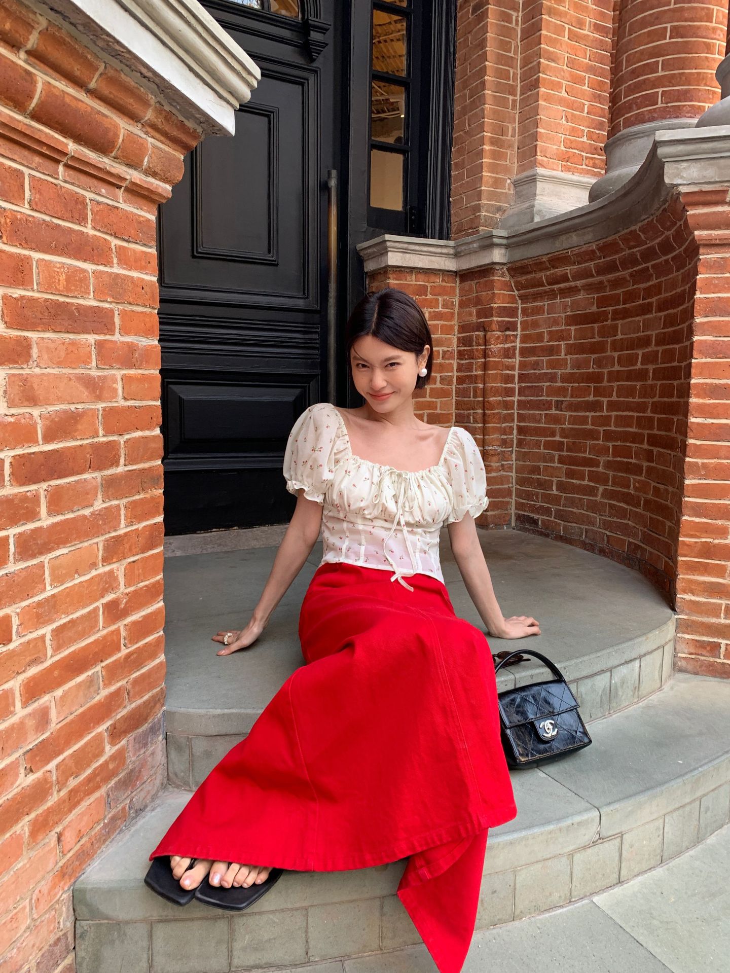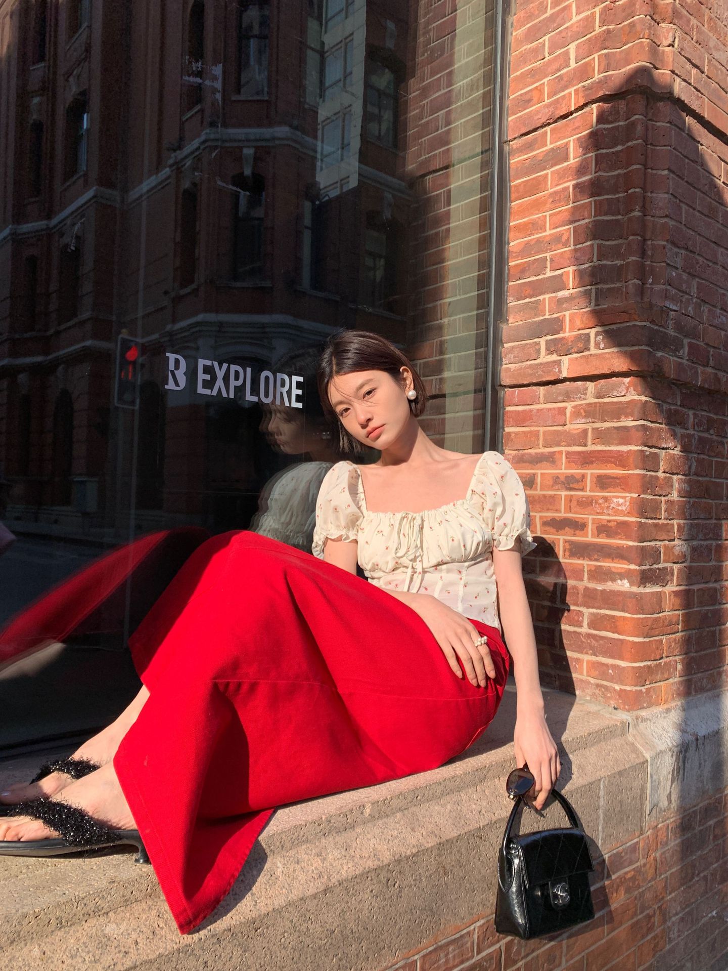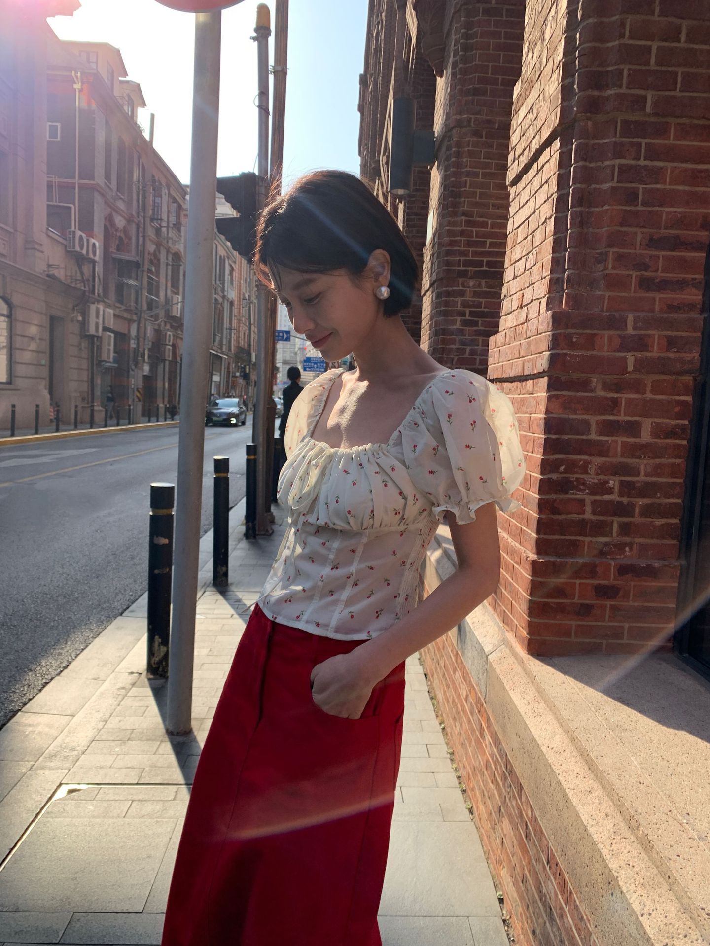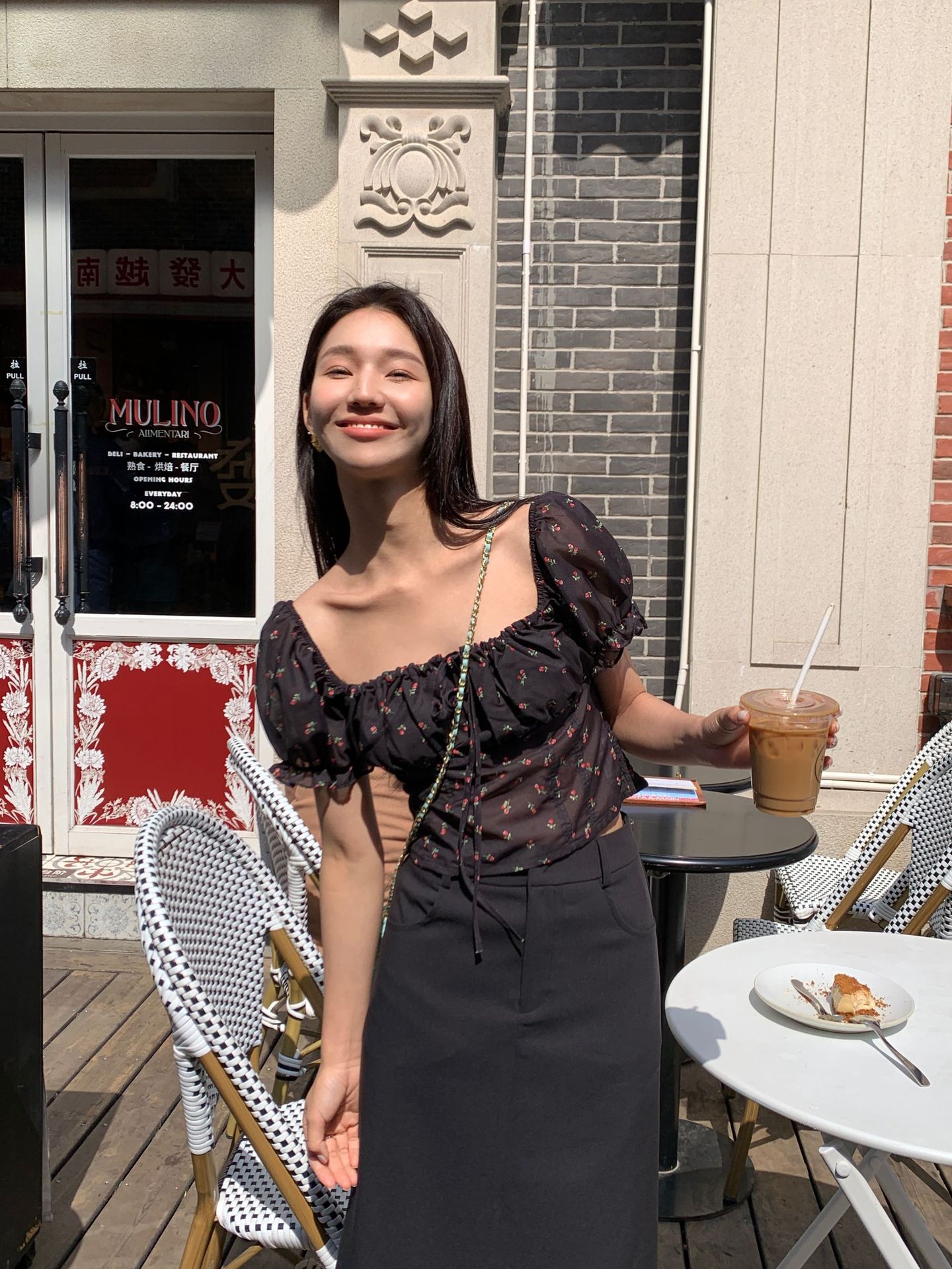 诠释美NEW OPEN夏法式洋气上衣女碎花系带套头显瘦小衫82136