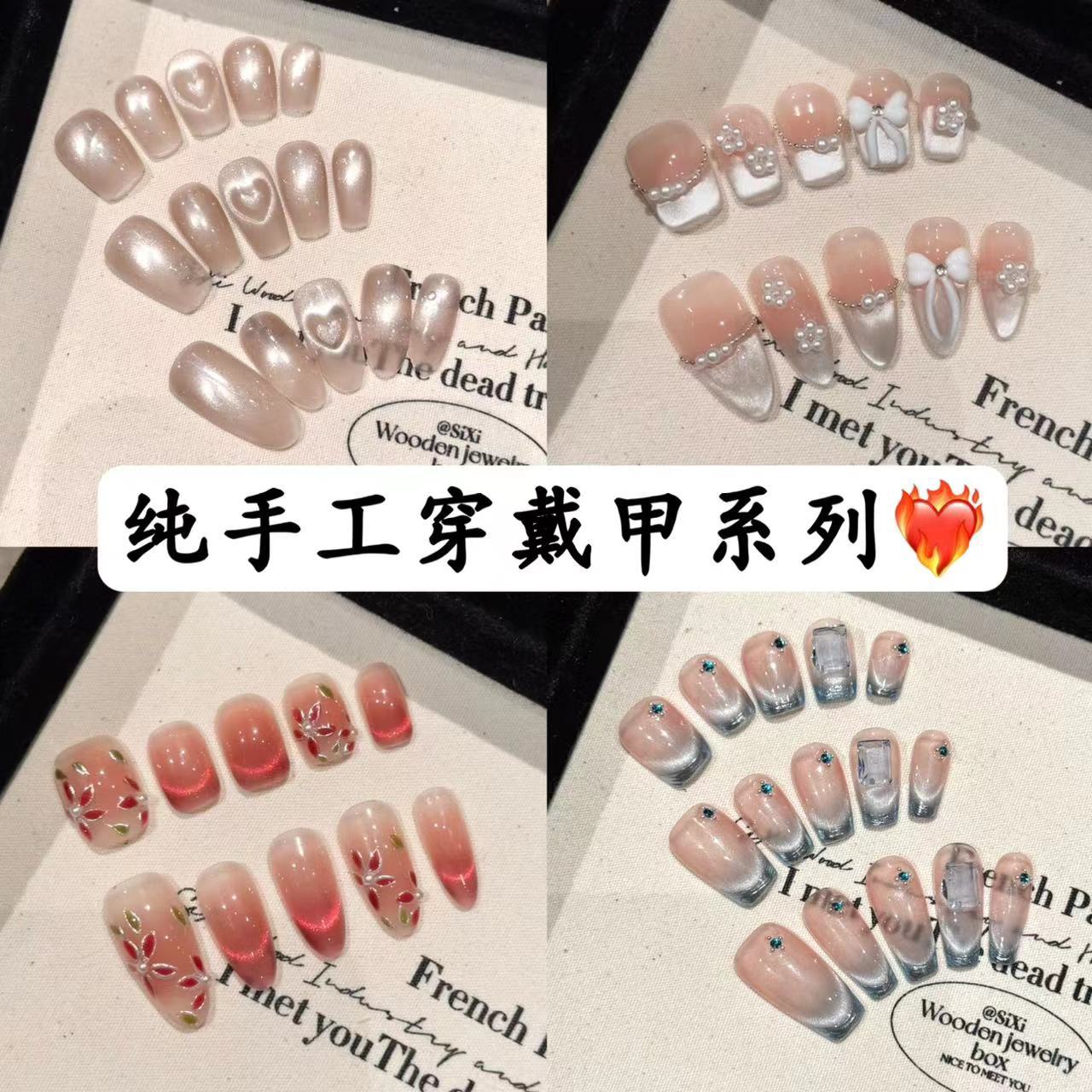 艺禾新品穿戴甲纯手工假指甲贴片长短款可拆卸批发成品工厂直发